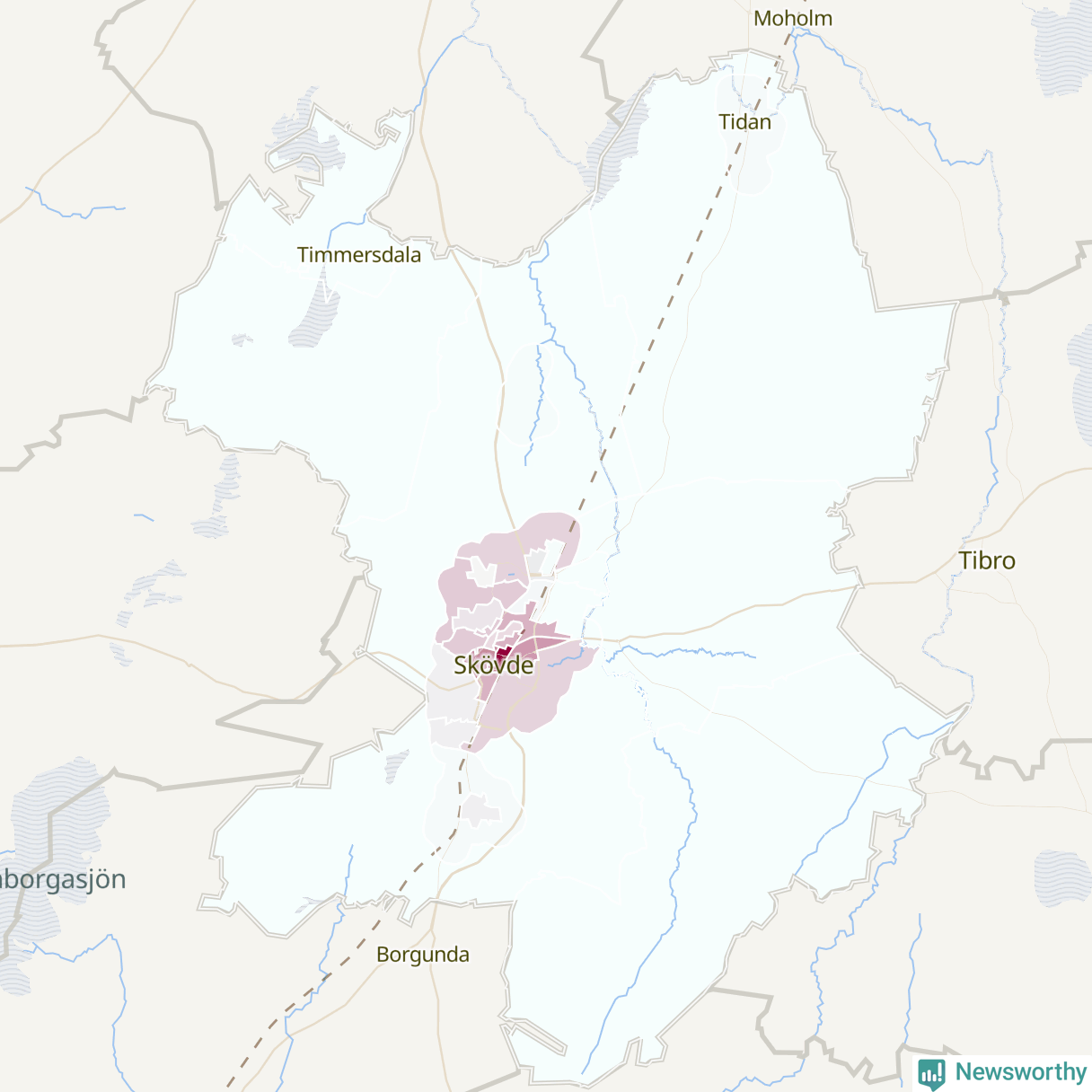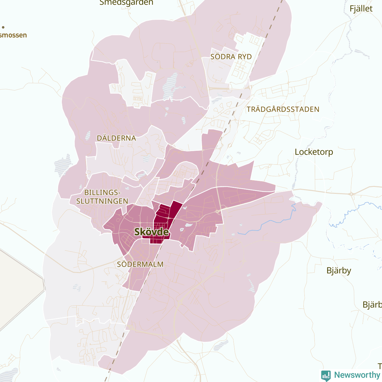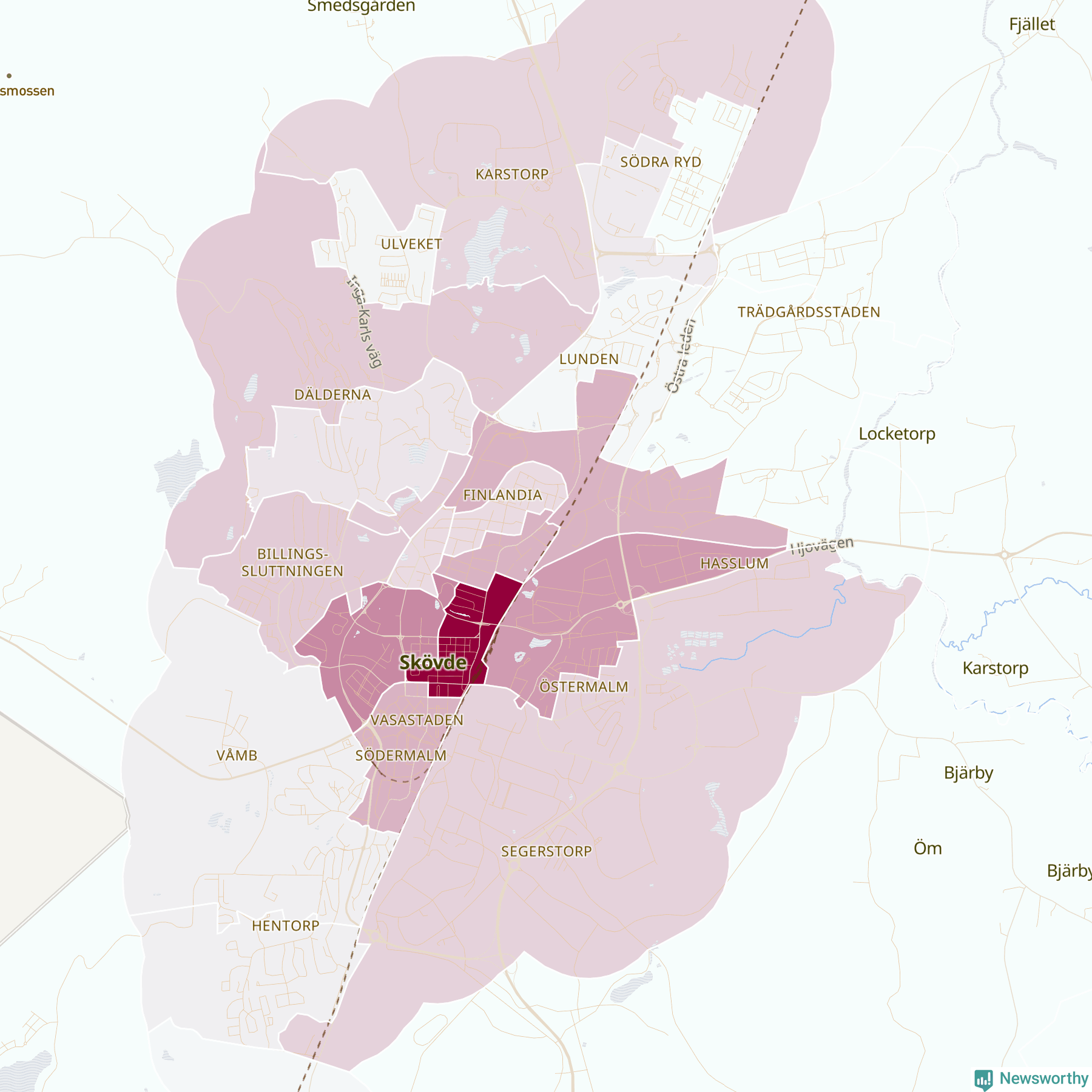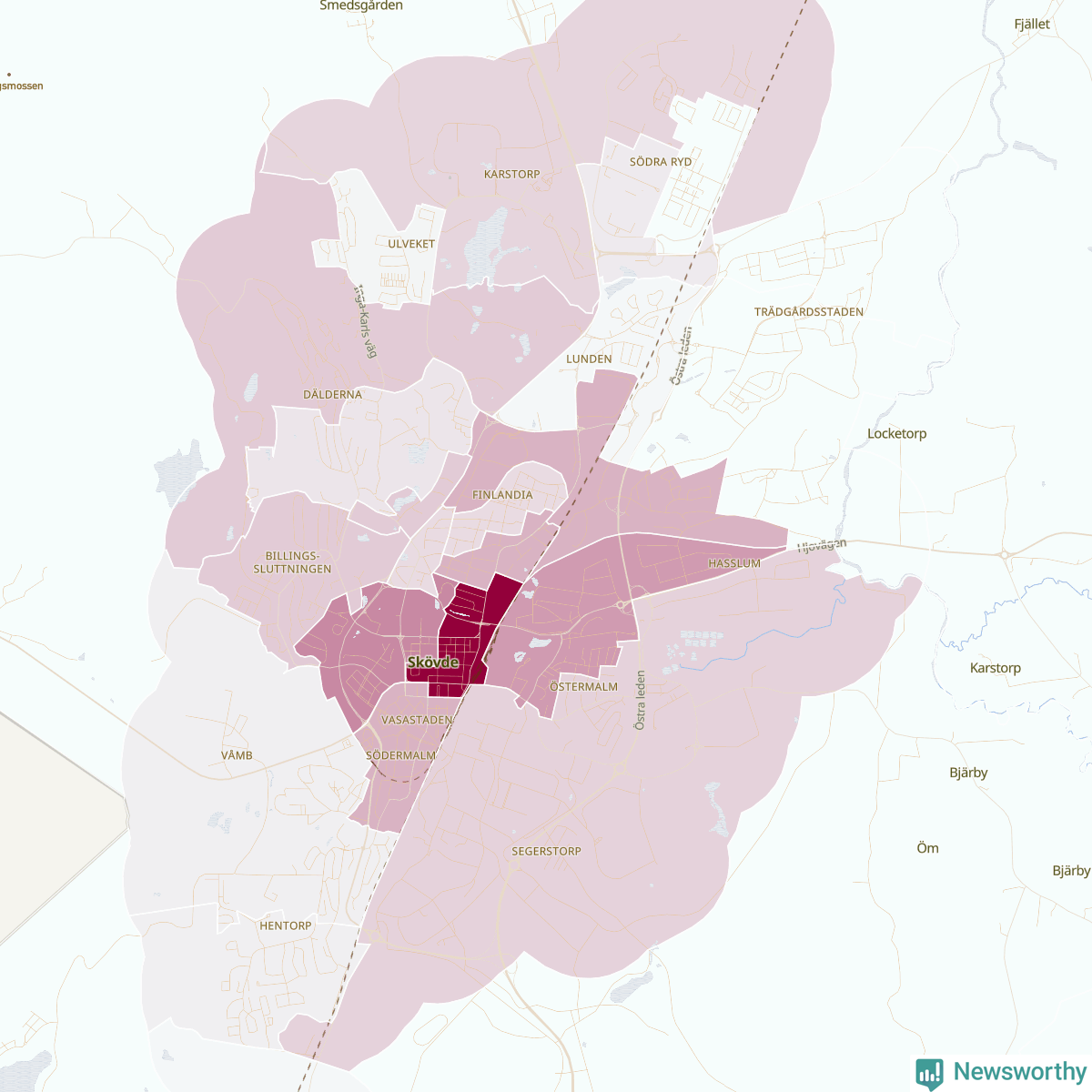 Men alla delar av Skövde är inte lika hårt drabbade. Det visar data för de senaste fem åren, som Newsworthy har begärt ut från polisen. De anmälda stölderna har kopplats till SCB:s 33 statistiska områden i kommunen. Det rör sig om mellan en handfull och knappt 300 anmälda stölder per område.