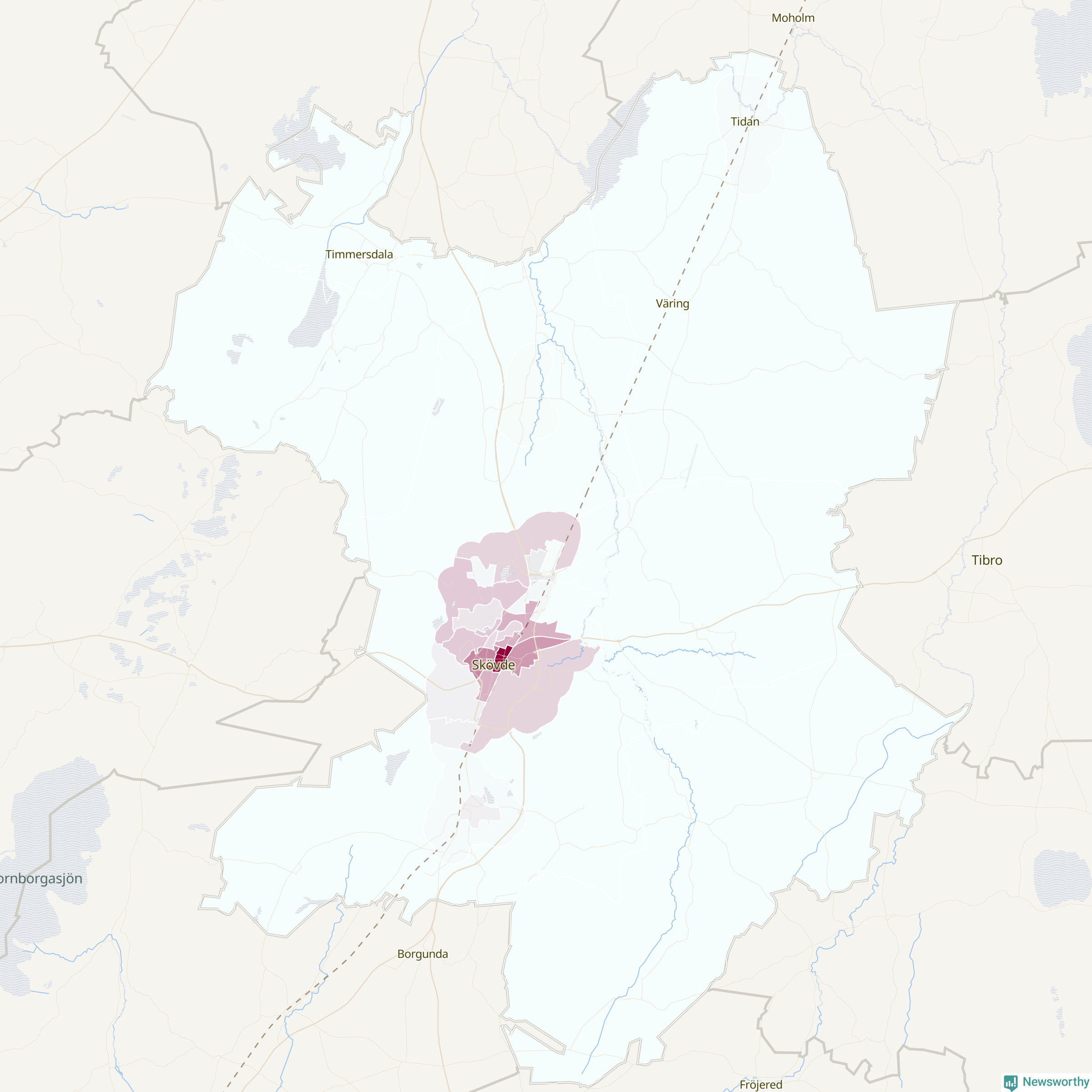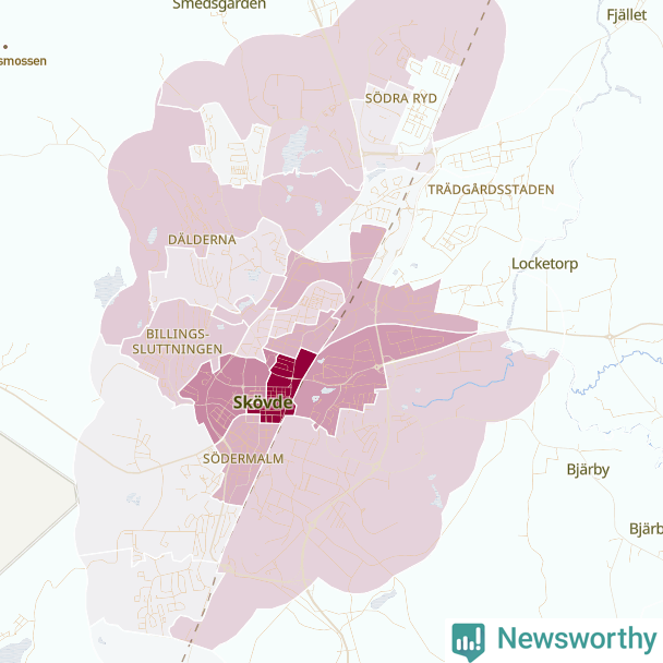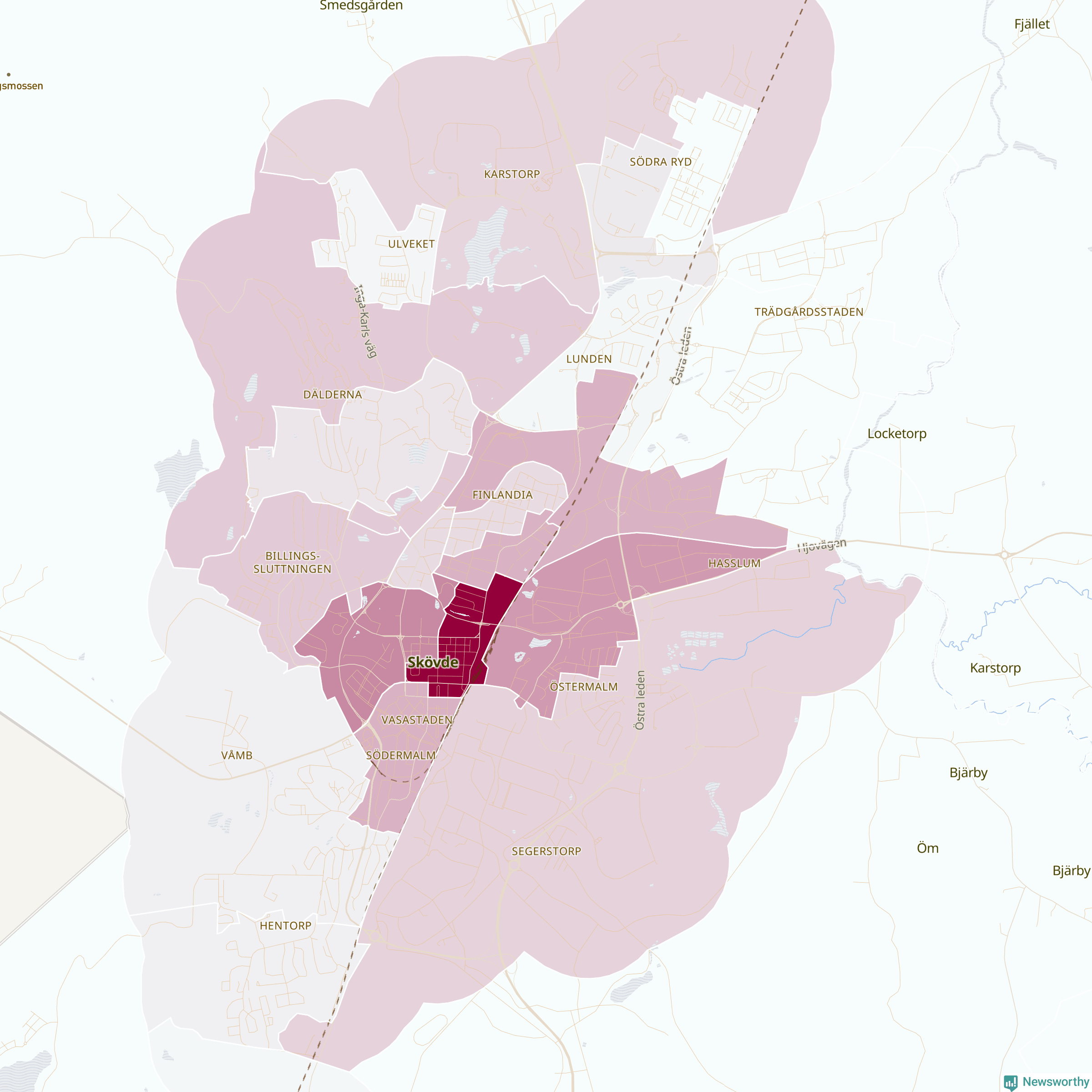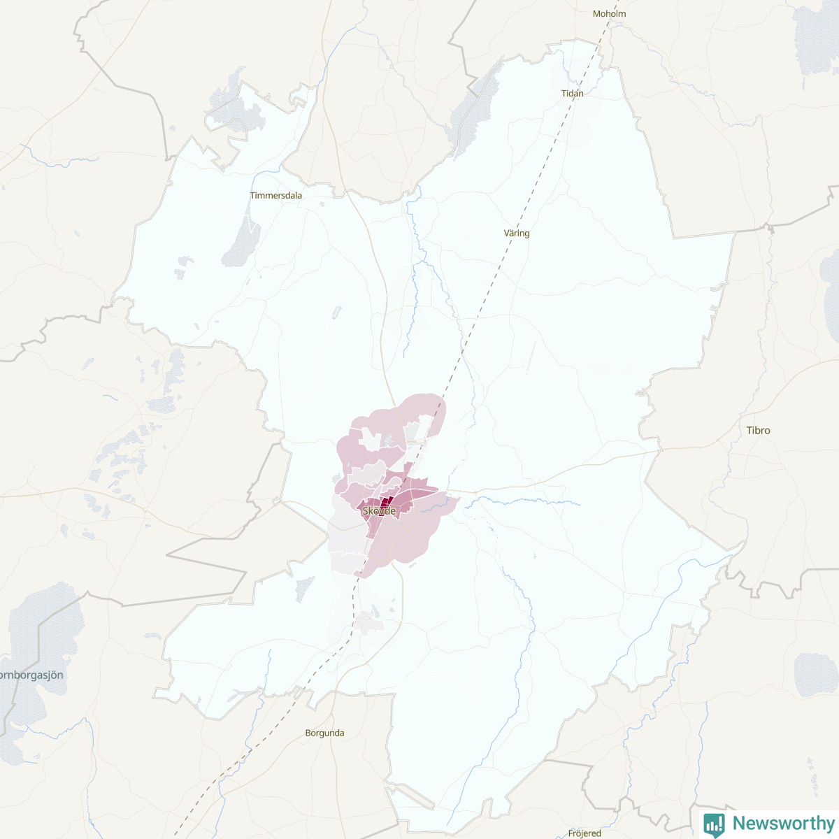 Men alla delar av Skövde är inte lika hårt drabbade. Det visar data för de senaste fem åren, som Newsworthy har begärt ut från polisen. De anmälda stölderna har kopplats till SCB:s 33 statistiska områden i kommunen. Det rör sig om mellan en handfull och knappt 300 anmälda stölder per område.
