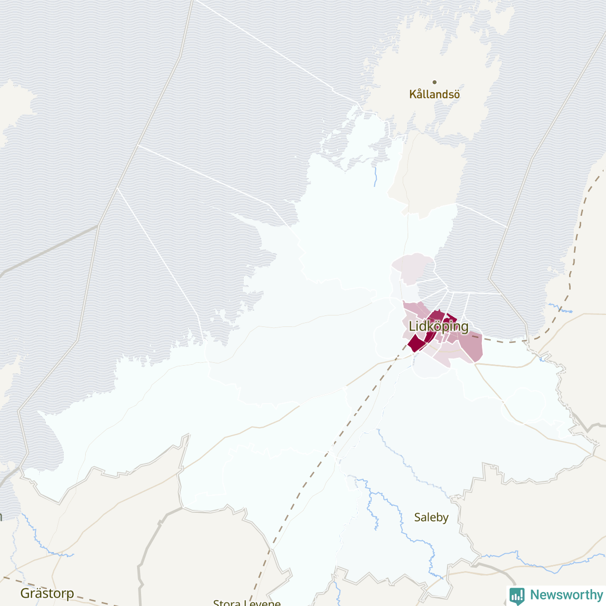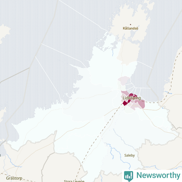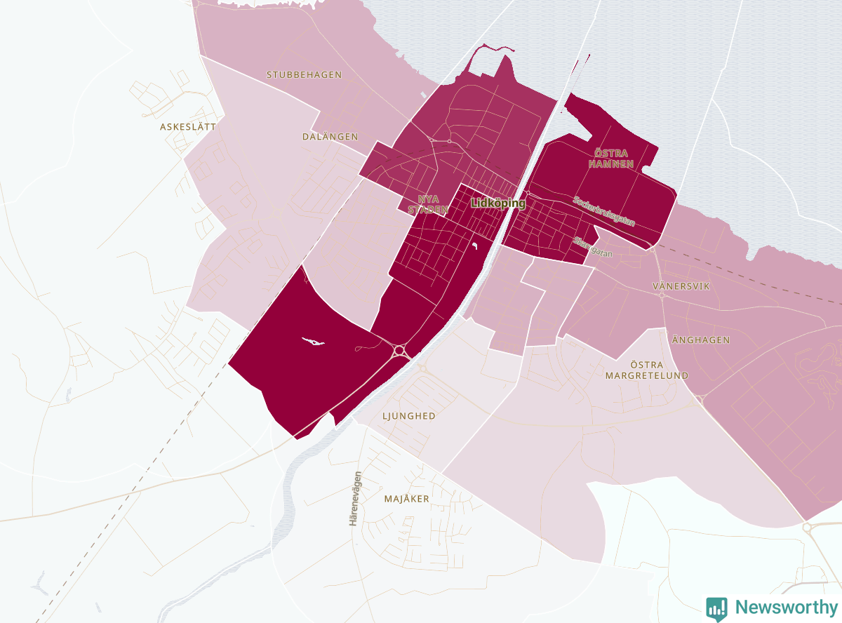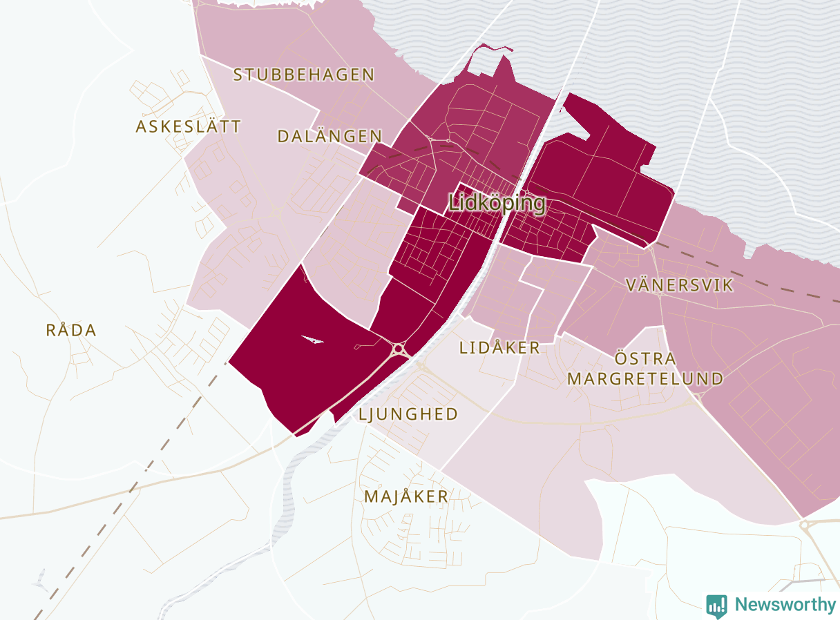 Men alla delar av Lidköping är inte lika hårt drabbade. Det visar data för de senaste fem åren, som Newsworthy har begärt ut från polisen. De anmälda stölderna har kopplats till SCB:s 23 statistiska områden i kommunen. I ett område finns inga cykelstölder registrerade, men i de övriga rör det sig om mellan en handfull och drygt 200 anmälda stölder per område.