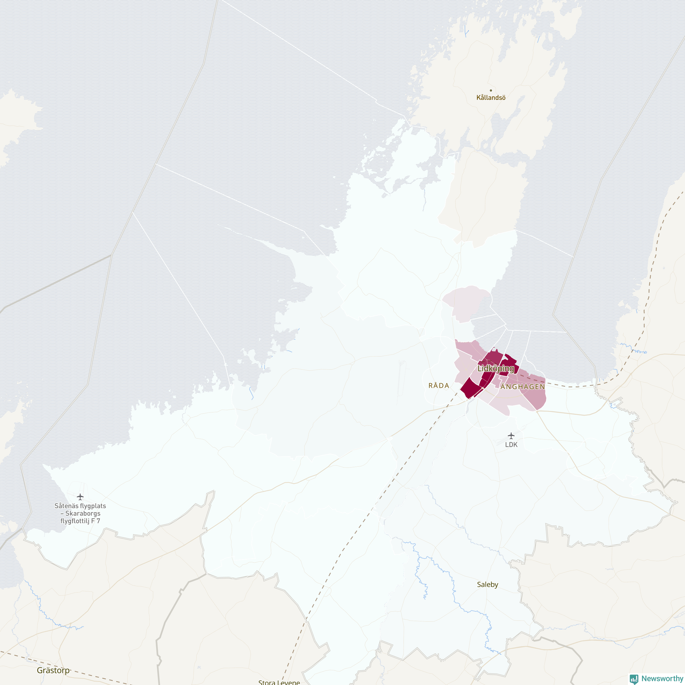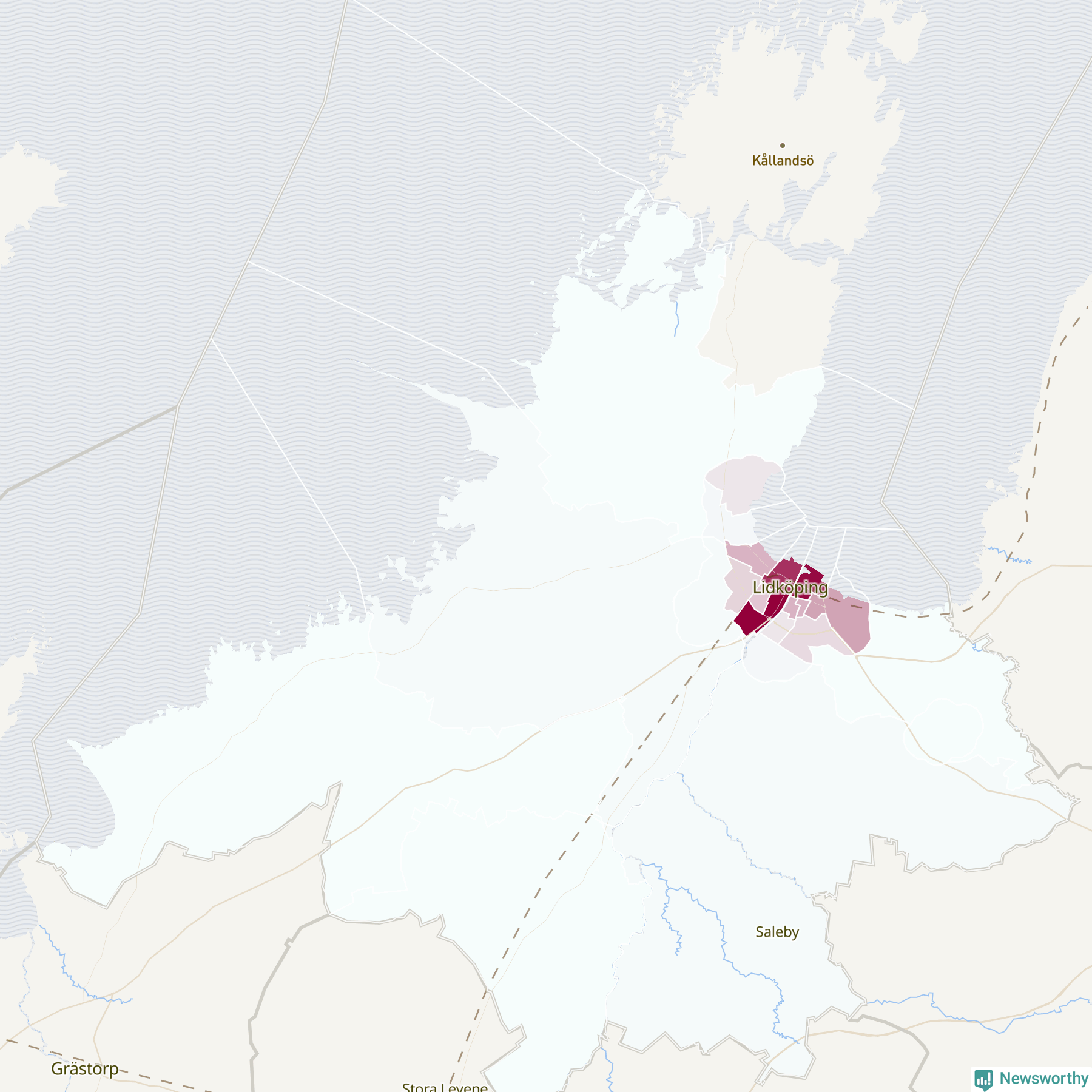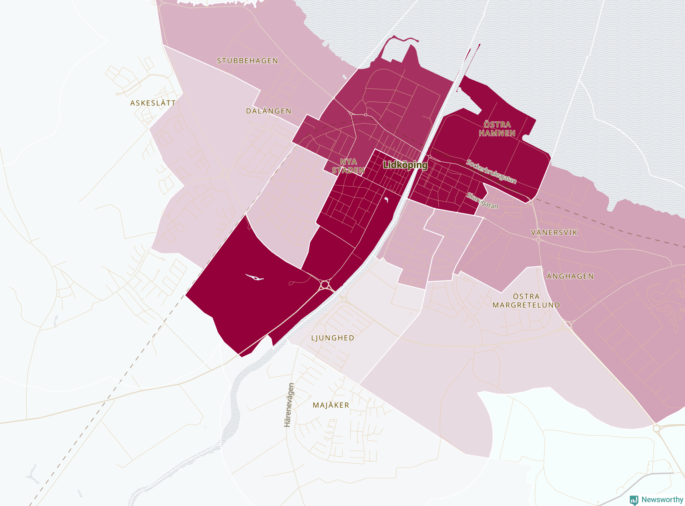 Men alla delar av Lidköping är inte lika hårt drabbade. Det visar data för de senaste fem åren, som Newsworthy har begärt ut från polisen. De anmälda stölderna har kopplats till SCB:s 23 statistiska områden i kommunen. I ett område finns inga cykelstölder registrerade, men i de övriga rör det sig om mellan en handfull och drygt 200 anmälda stölder per område.