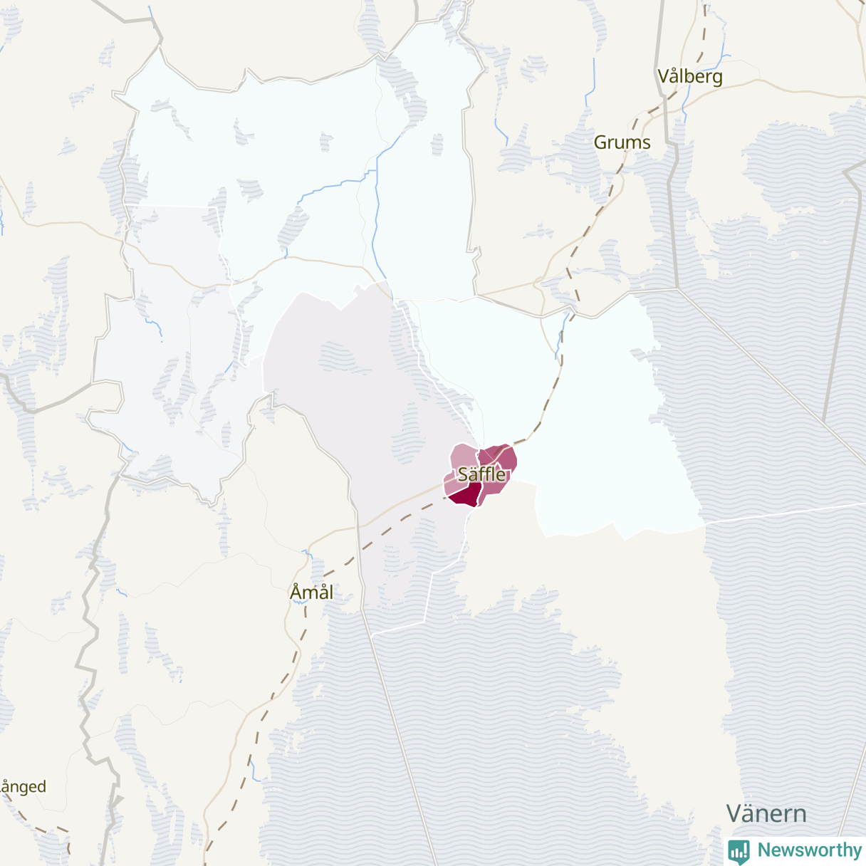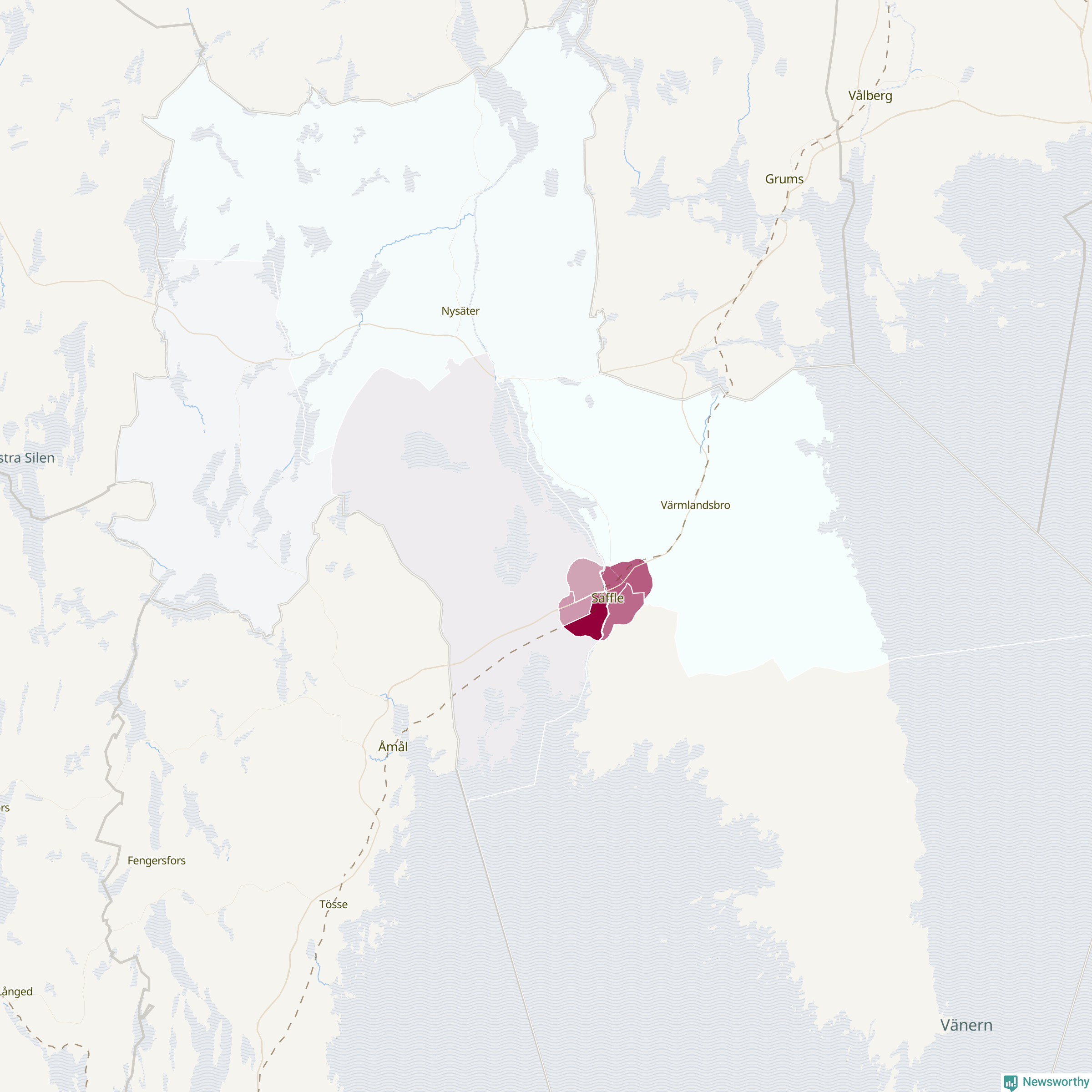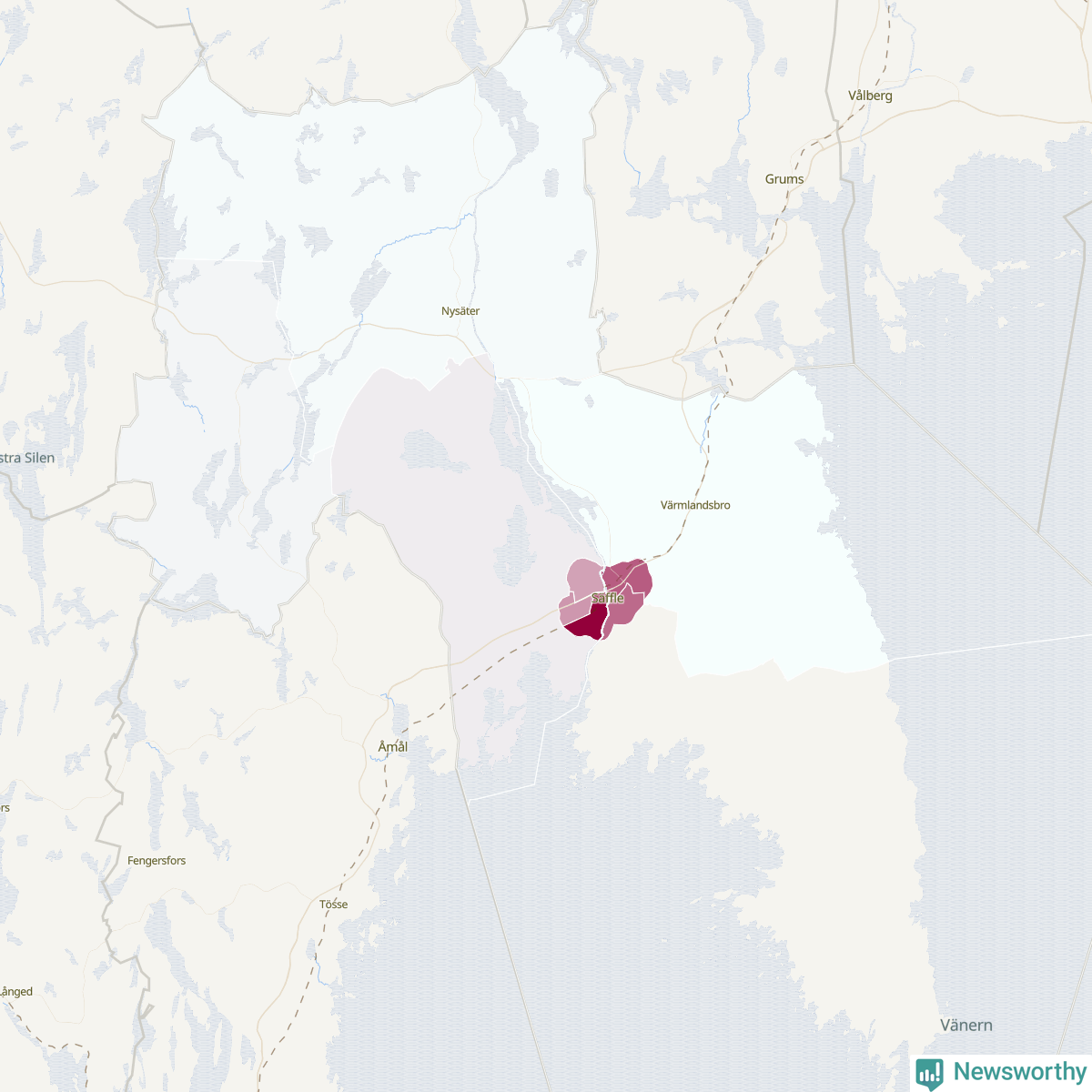 Men alla delar av Säffle är inte lika hårt drabbade. Det visar data för de senaste fem åren, som Newsworthy har begärt ut från polisen. De anmälda stölderna har kopplats till SCB:s tio statistiska områden i kommunen. I ett område finns inga cykelstölder registrerade, men i de övriga rör det sig om mellan en handfull och ett sextiotal anmälda stölder per område.