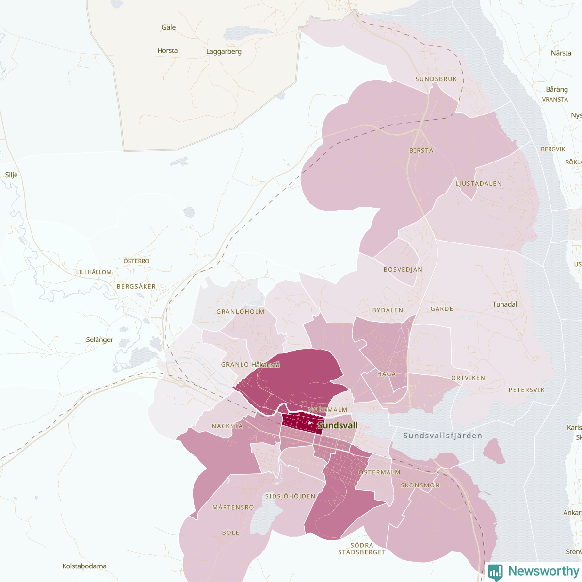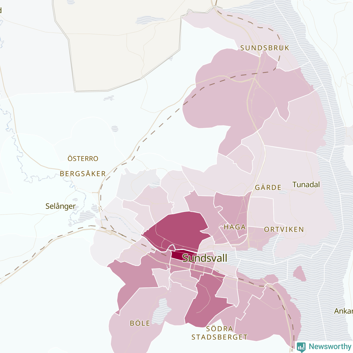 Newsworthy är en nyhetssajt som gör lokal journalistik baserat på data. Vi är datajournalister som analyserar och tolkar världen på siffror, snarare än tyckande.