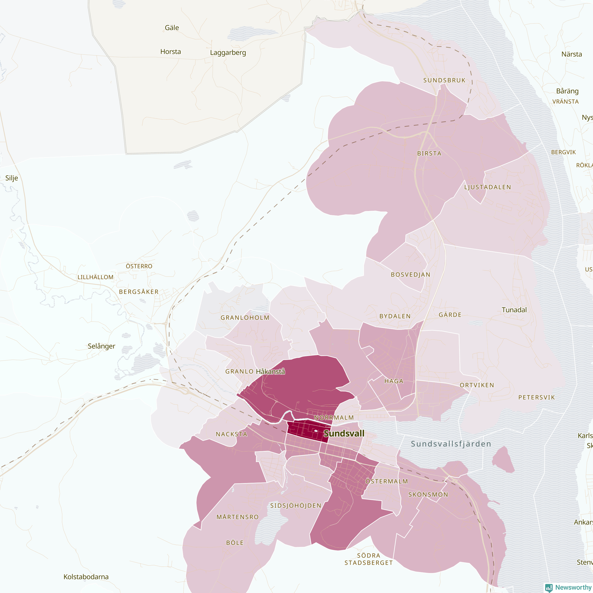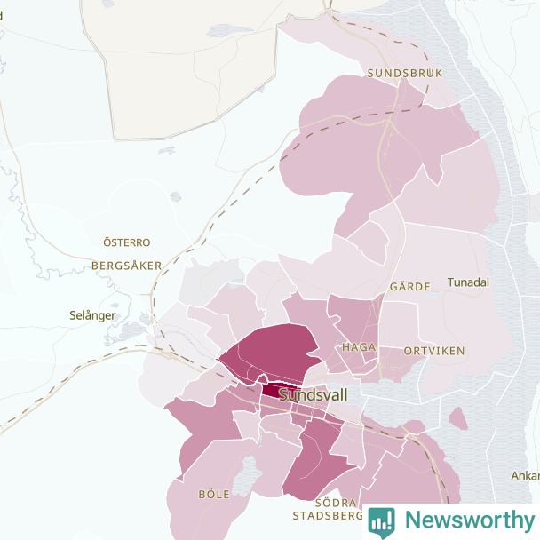 Men alla delar av Sundsvall är inte lika hårt drabbade. Det visar data för de senaste fem åren, som Newsworthy har begärt ut från polisen. De anmälda stölderna har kopplats till SCB:s 59 statistiska områden i kommunen. I sex områden finns inga cykelstölder registrerade, men i de övriga rör det sig om mellan en handfull och ett åttiotal anmälda stölder per område.