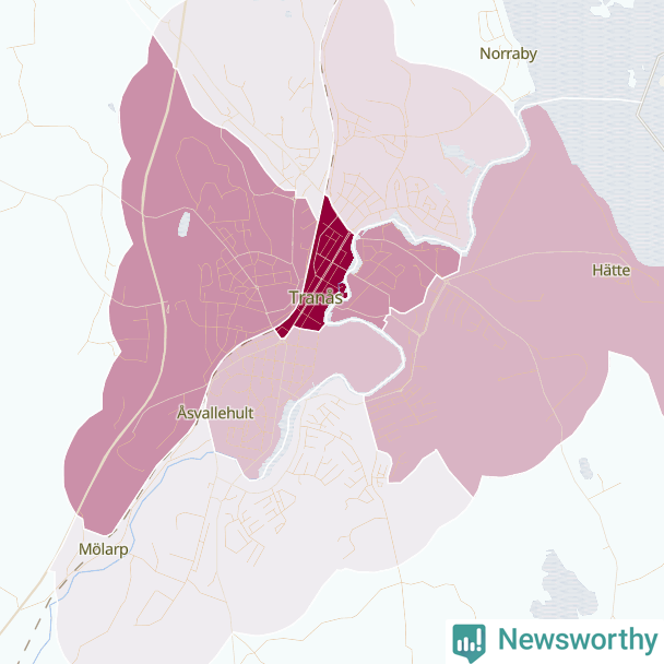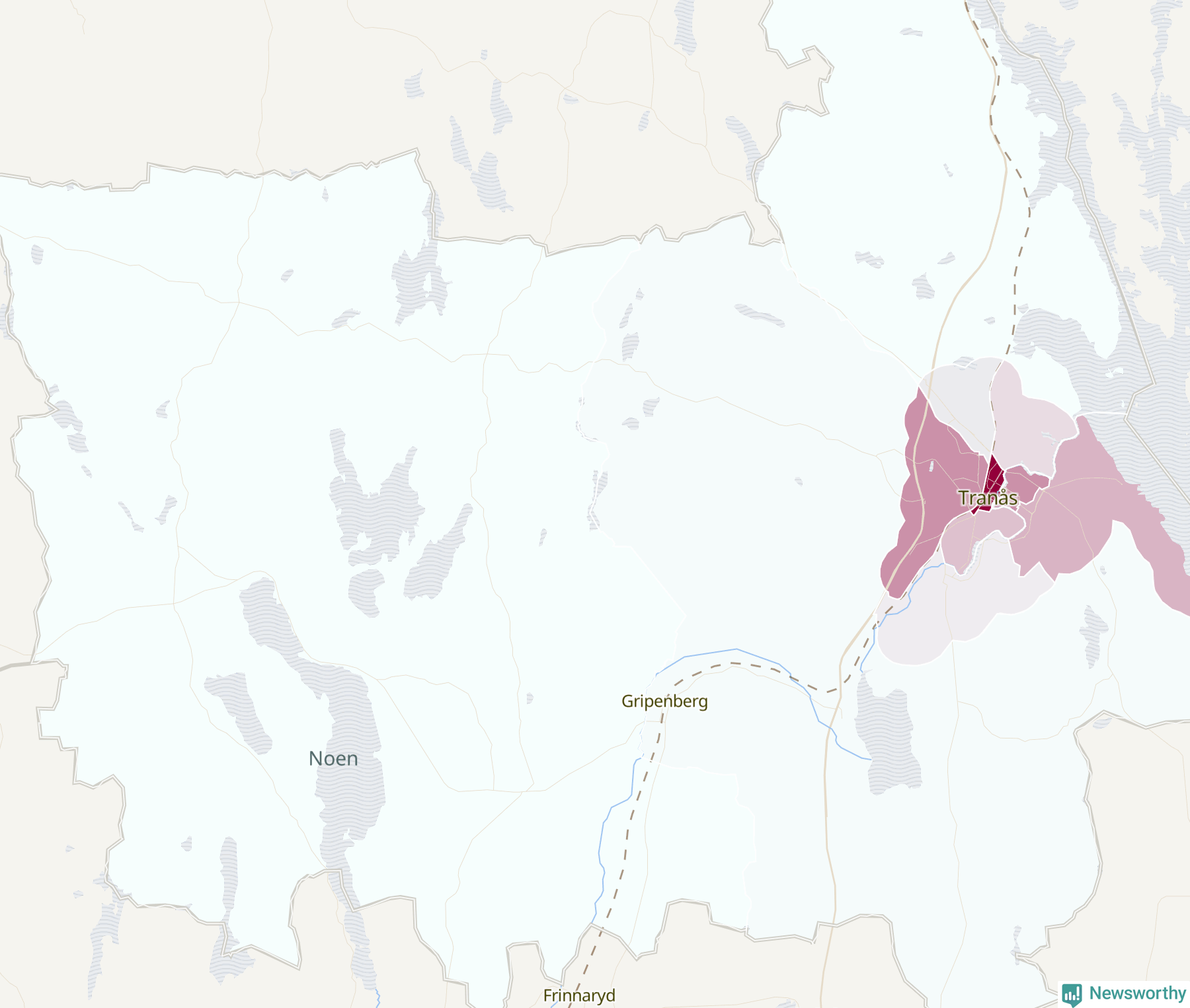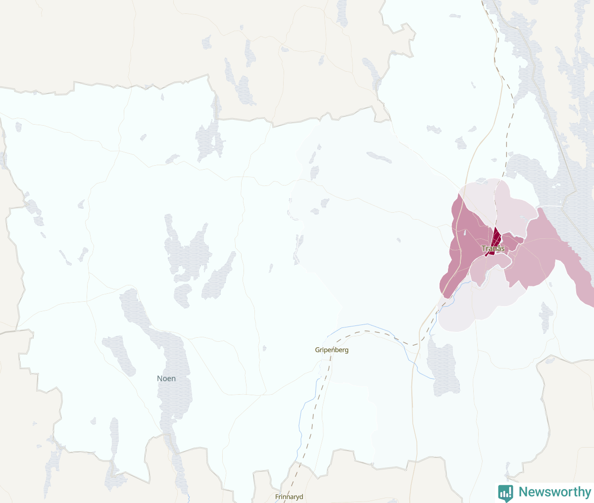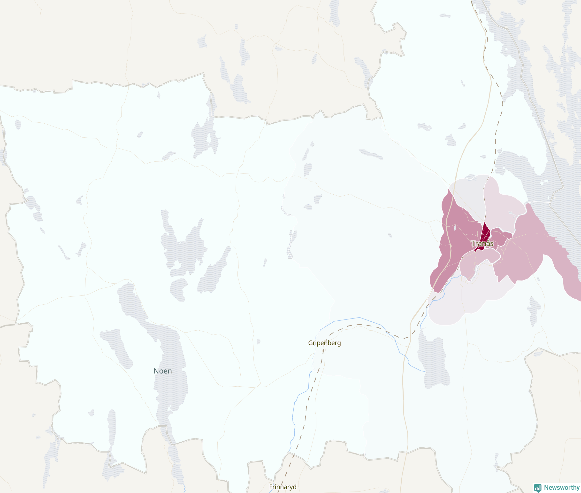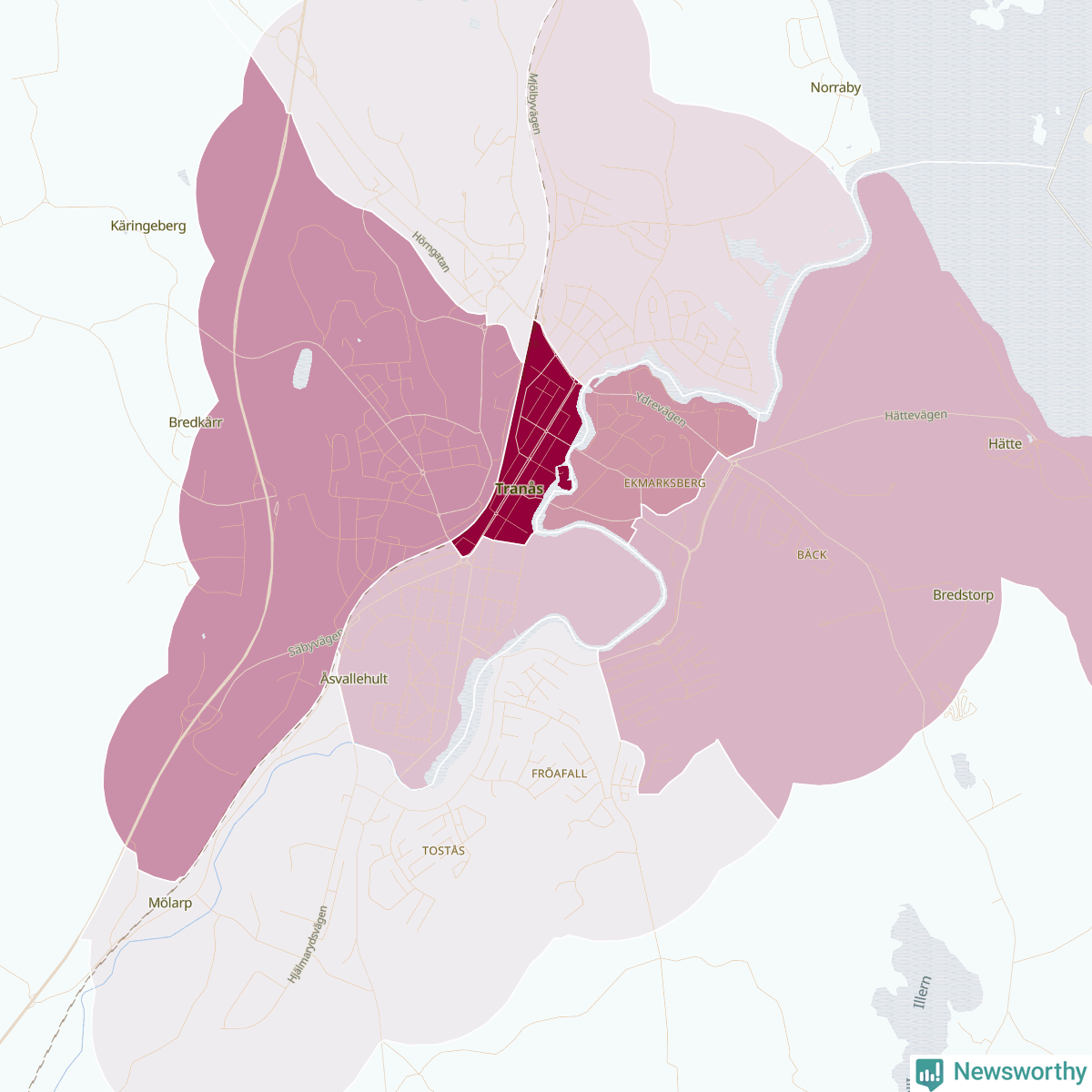 Men alla delar av Tranås är inte lika hårt drabbade. Det visar data för de senaste fem åren, som Newsworthy har begärt ut från polisen. De anmälda stölderna har kopplats till SCB:s elva statistiska områden i kommunen. Det rör sig om mellan en handfull och drygt 100 anmälda stölder per område.