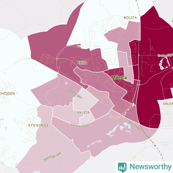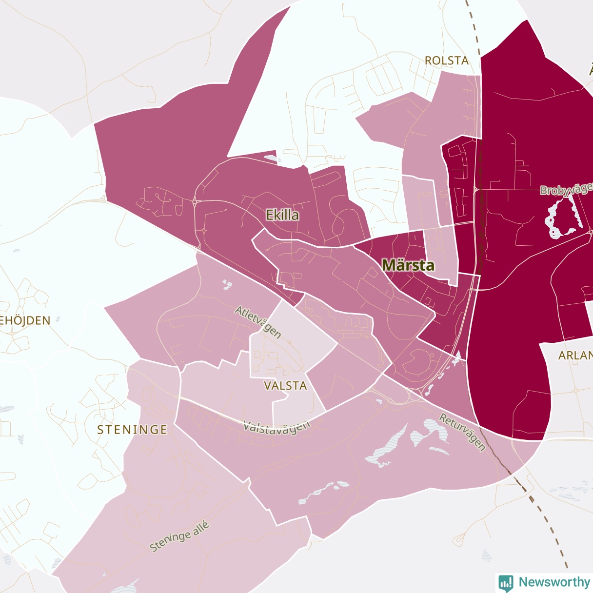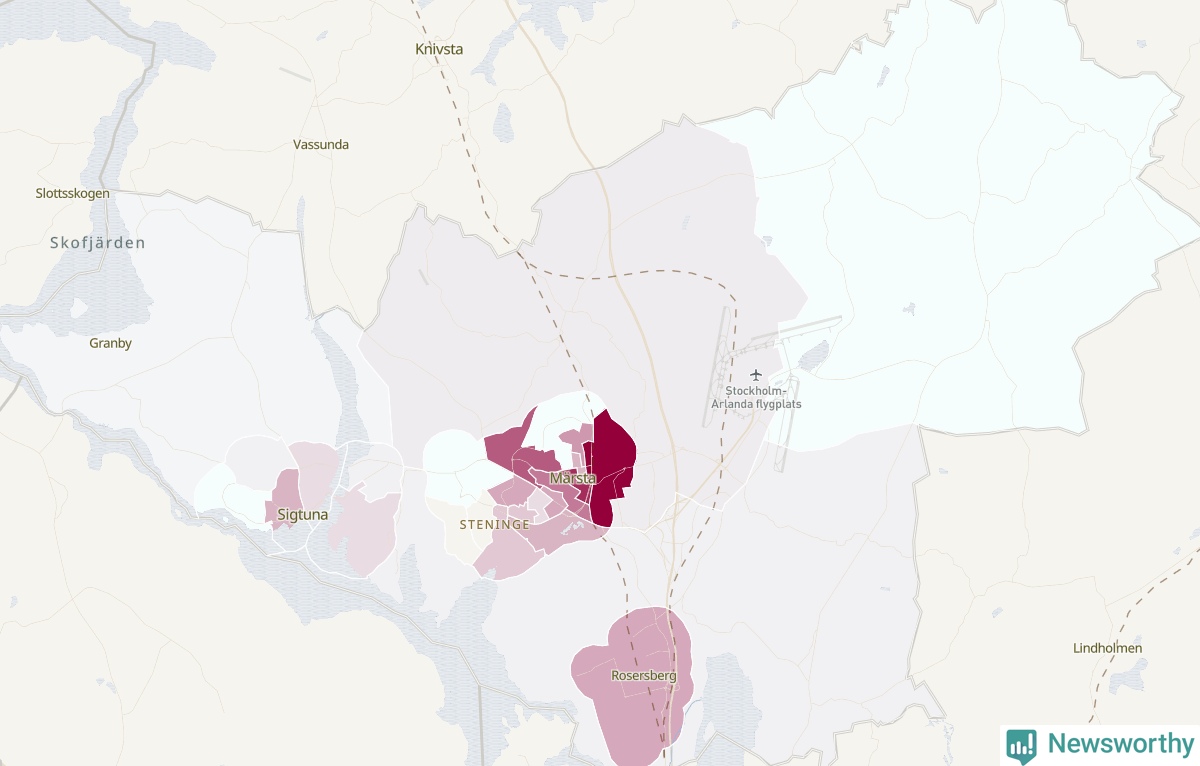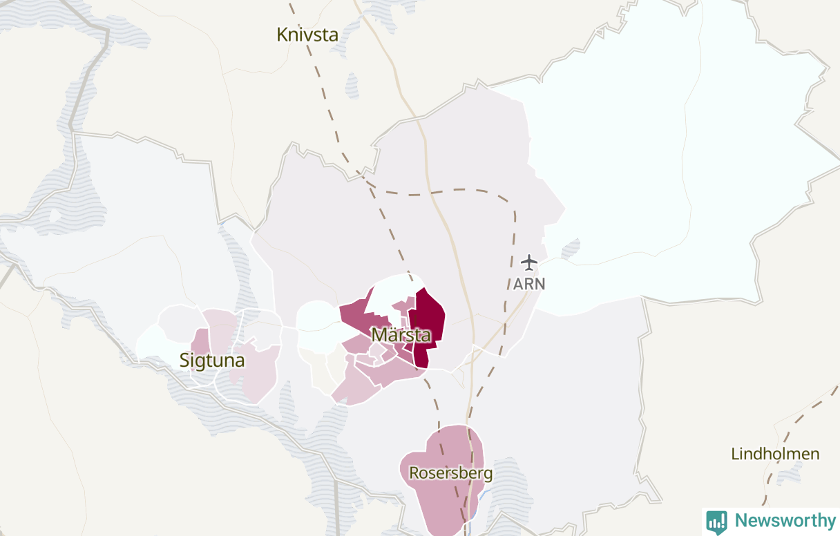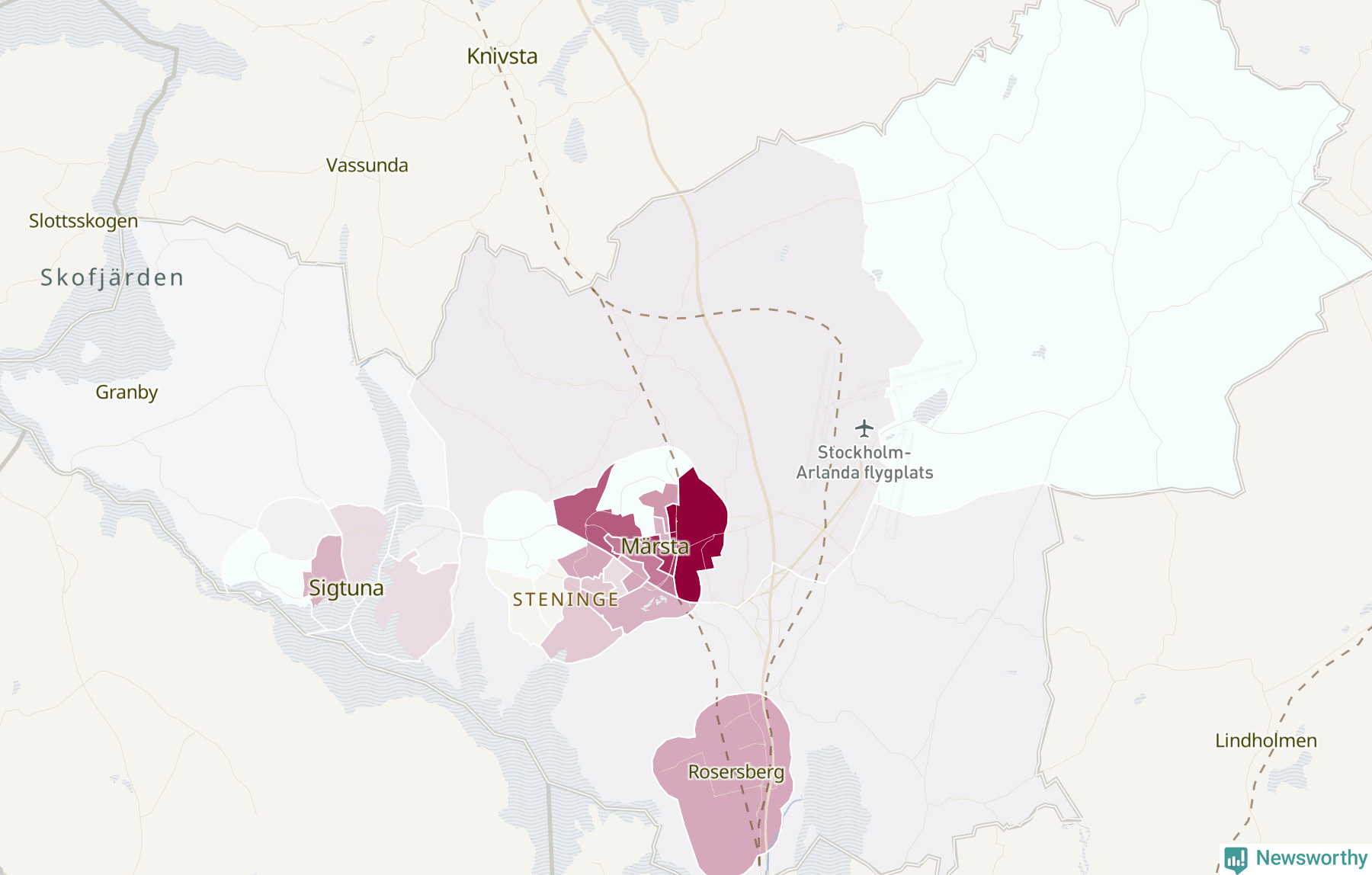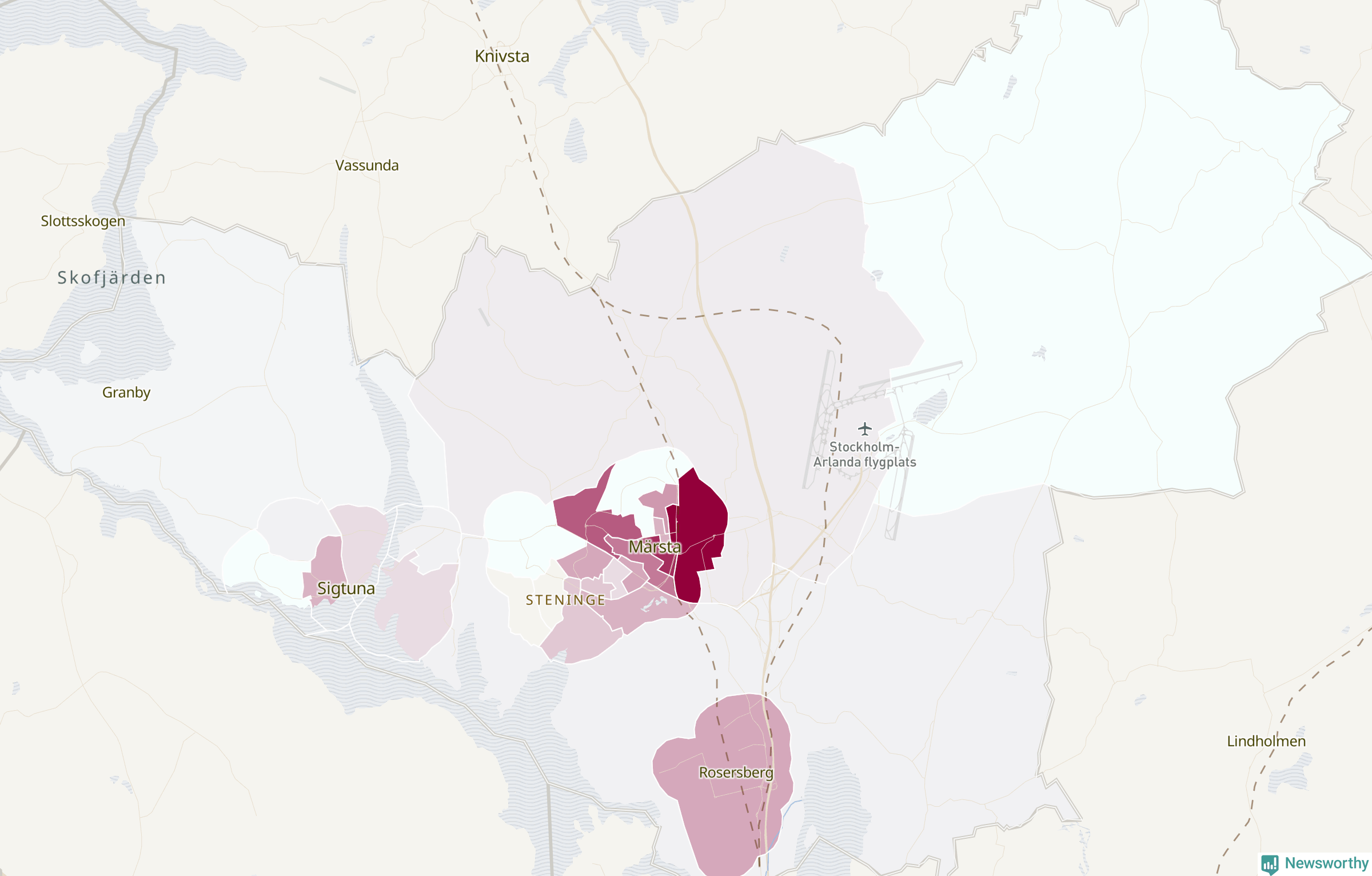 Men alla delar av Sigtuna är inte lika hårt drabbade. Det visar data för de senaste fem åren, som Newsworthy har begärt ut från polisen. De anmälda stölderna har kopplats till SCB:s 27 statistiska områden i kommunen. I två områden finns inga cykelstölder registrerade, men i de övriga rör det sig om mellan en handfull och ett sextiotal anmälda stölder per område.