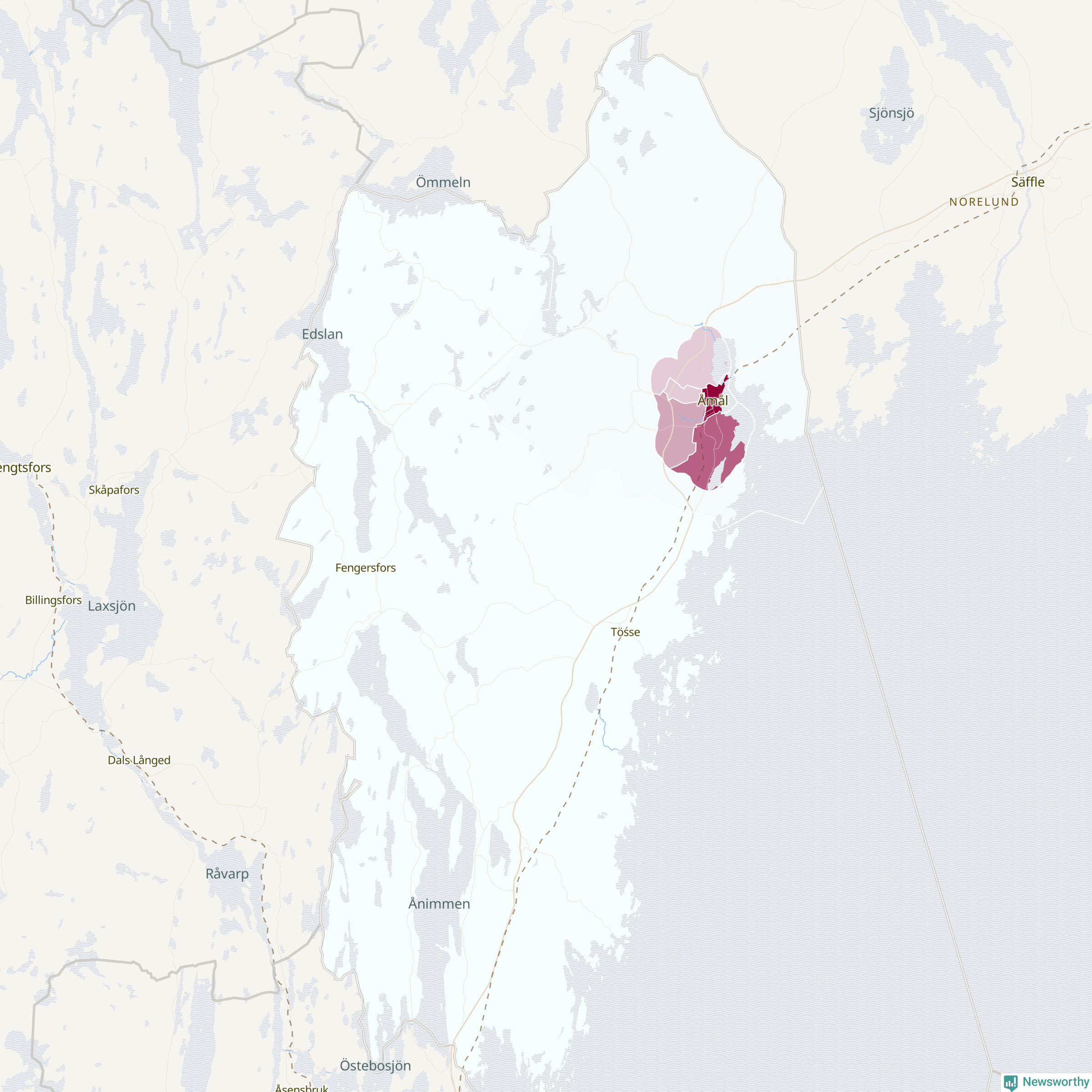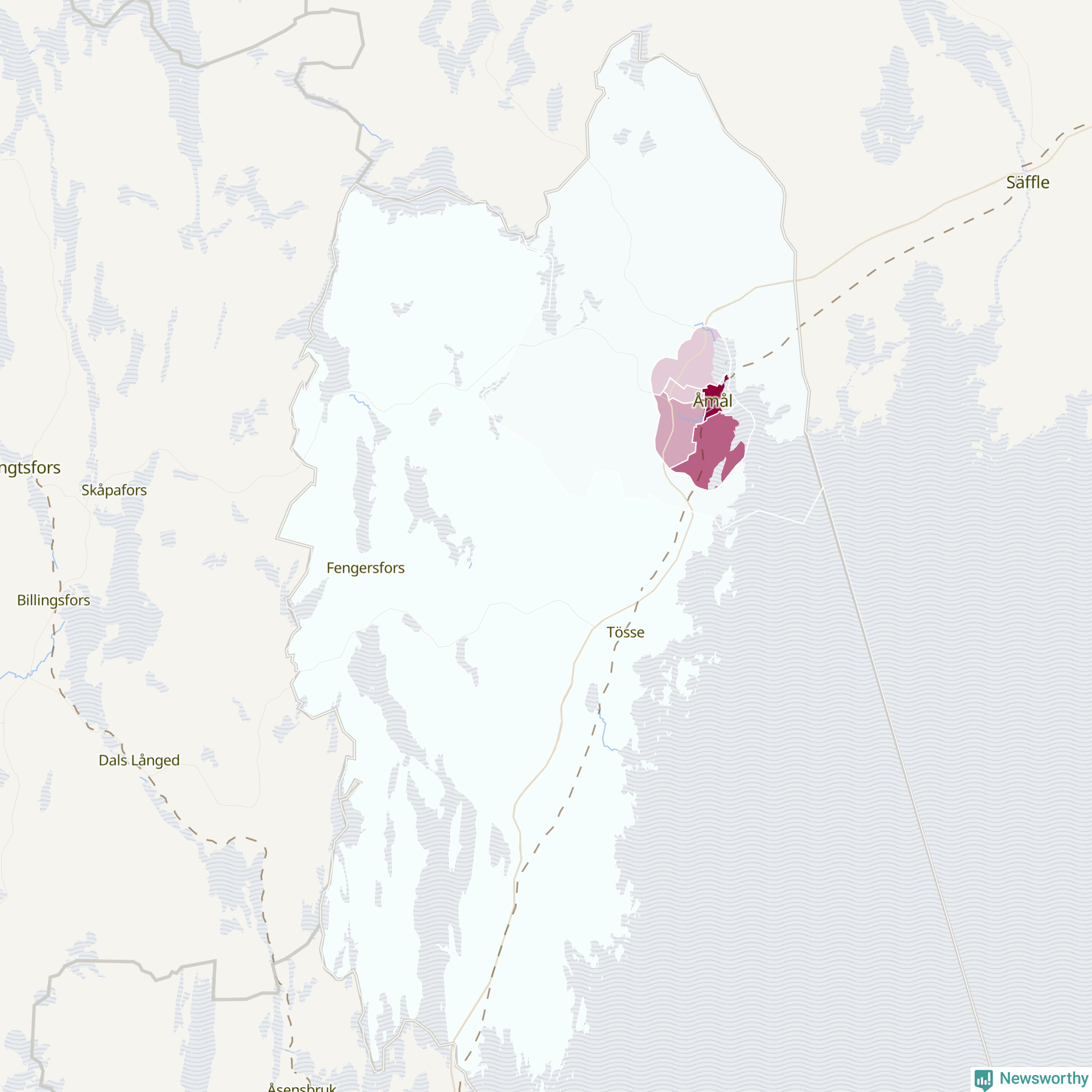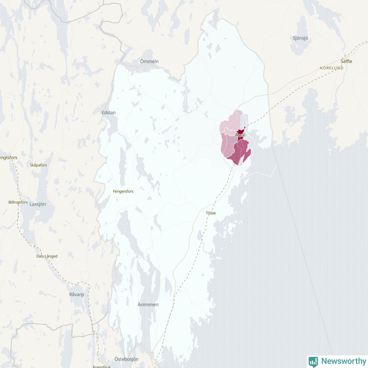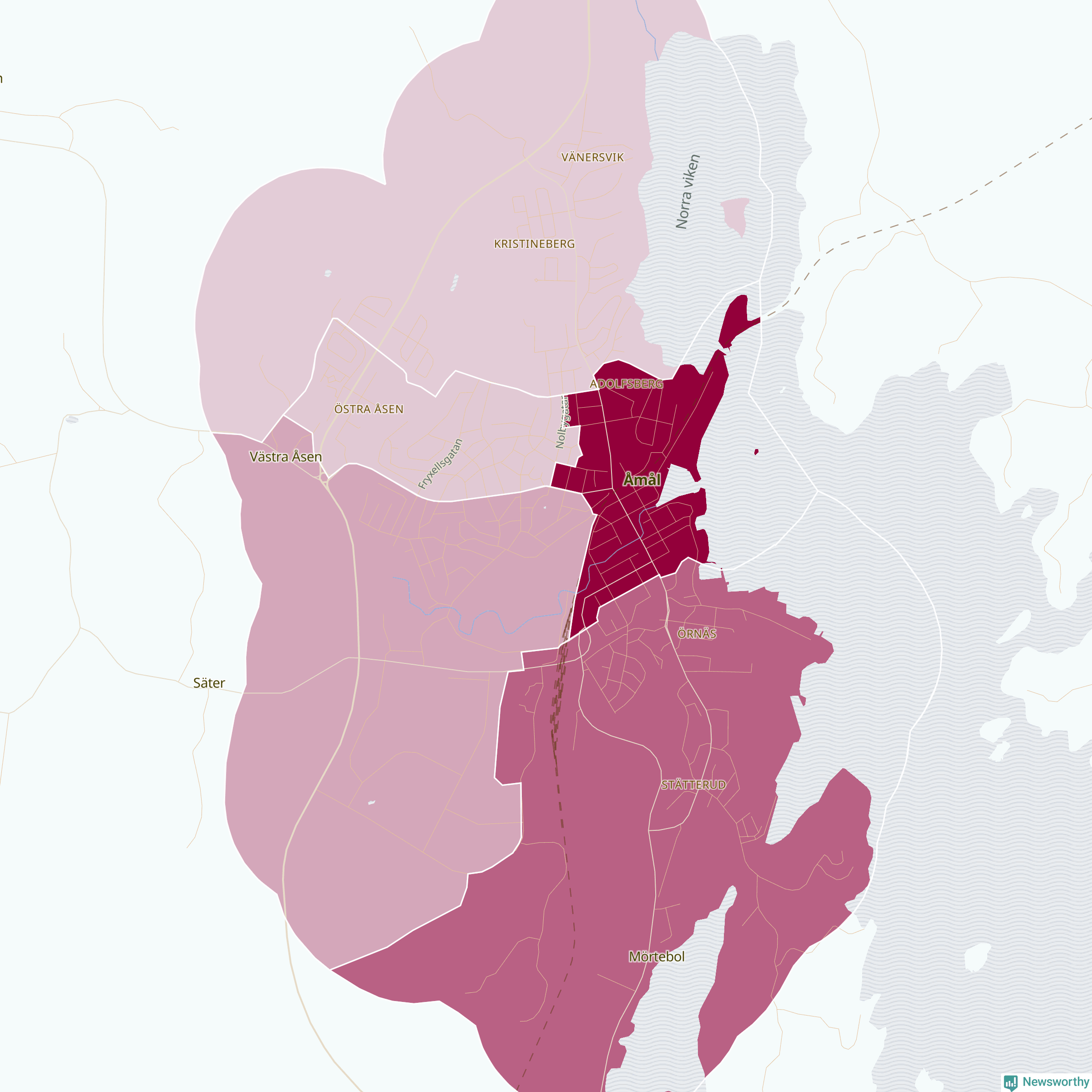 Men alla delar av Åmål är inte lika hårt drabbade. Det visar data för de senaste fem åren, som Newsworthy har begärt ut från polisen. De anmälda stölderna har kopplats till SCB:s sju statistiska områden i kommunen. Det rör sig om mellan en handfull och ett åttiotal anmälda stölder per område.