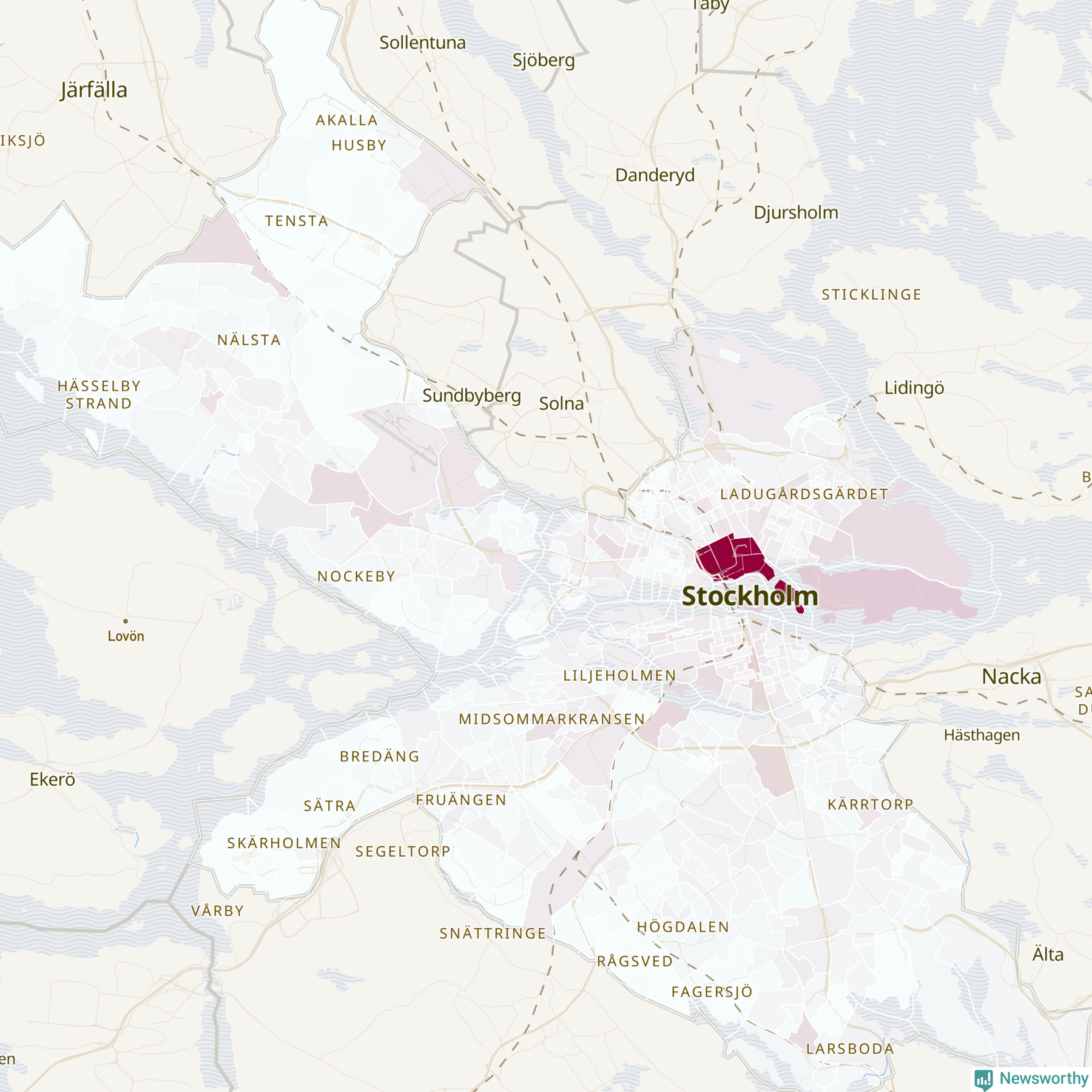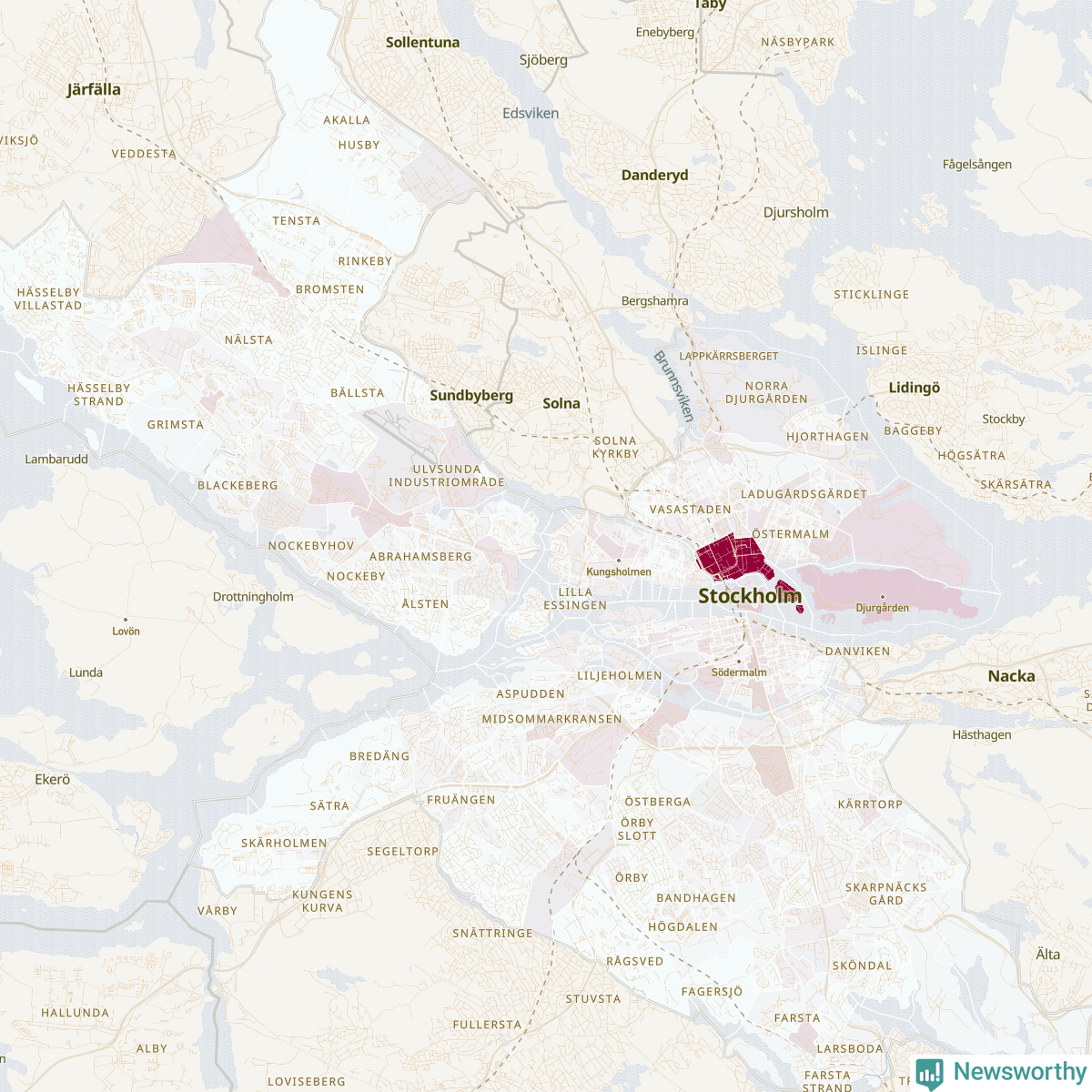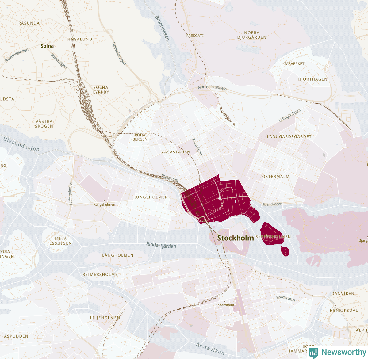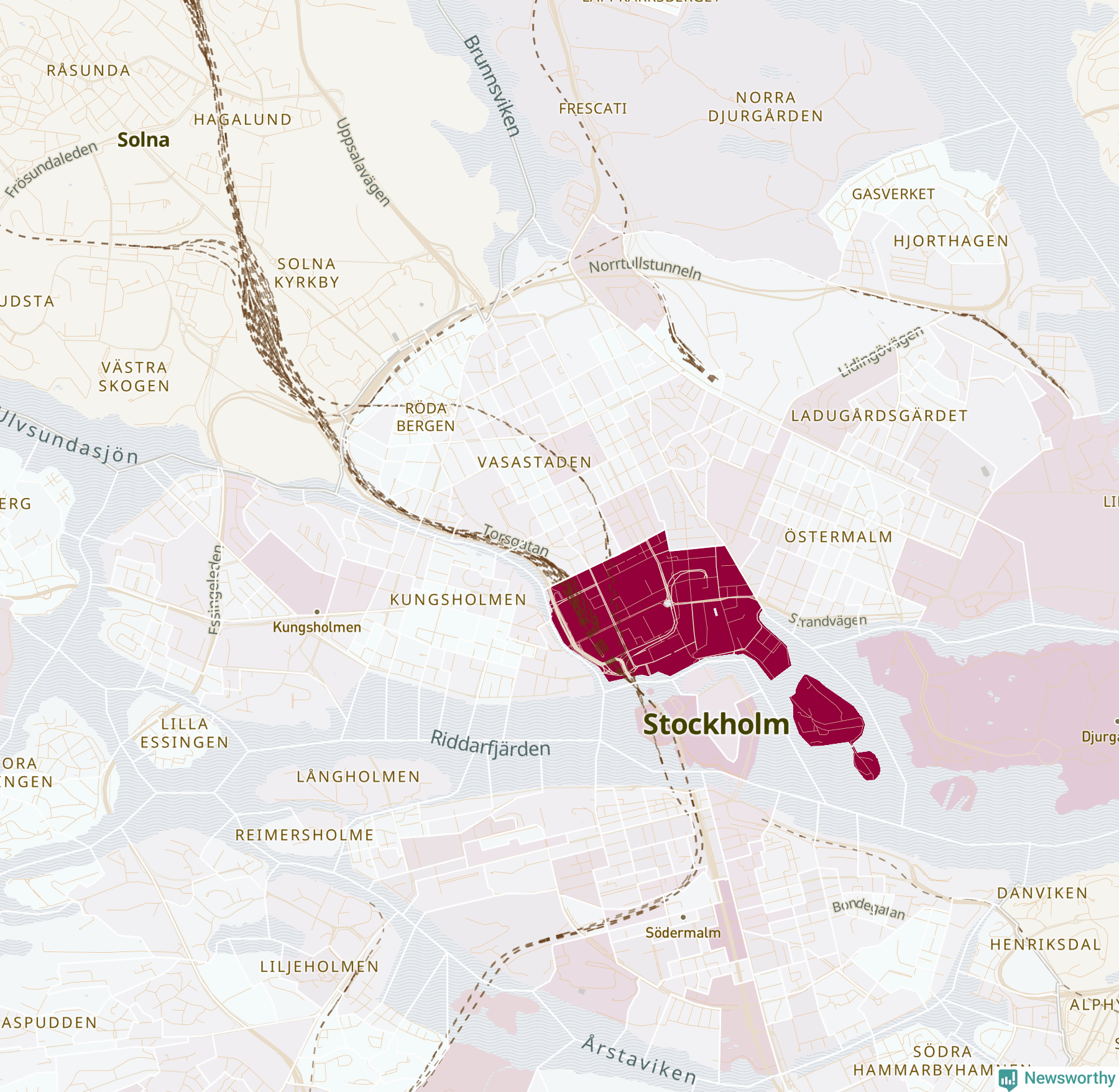 Men alla delar av Stockholms kommun är inte lika hårt drabbade. Det visar data för de senaste fem åren, som Newsworthy har begärt ut från polisen. De anmälda stölderna har kopplats till SCB:s 569 statistiska områden i kommunen. I tre områden finns inga cykelstölder registrerade, men i de övriga rör det sig om mellan en handfull och drygt 1 100 anmälda stölder per område.