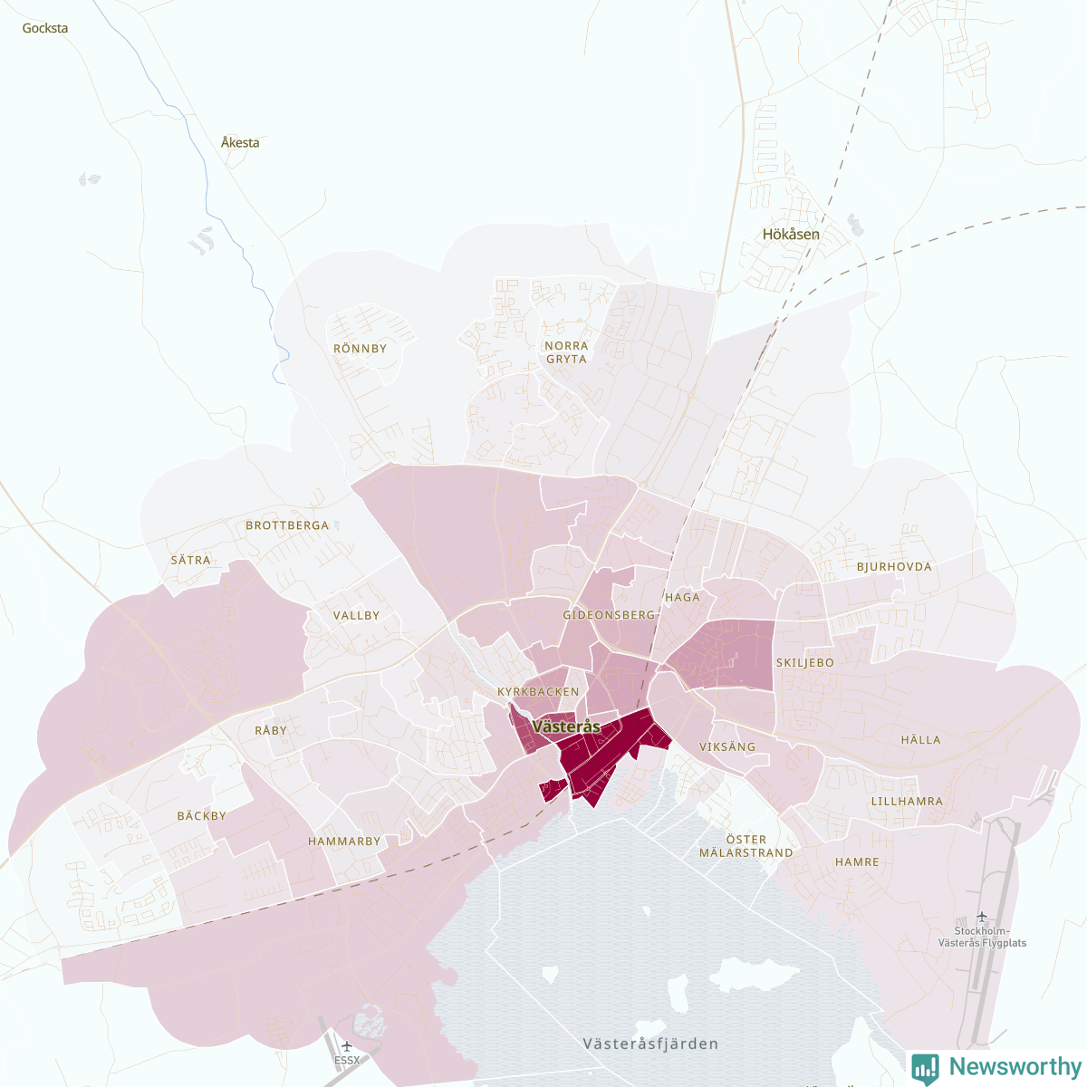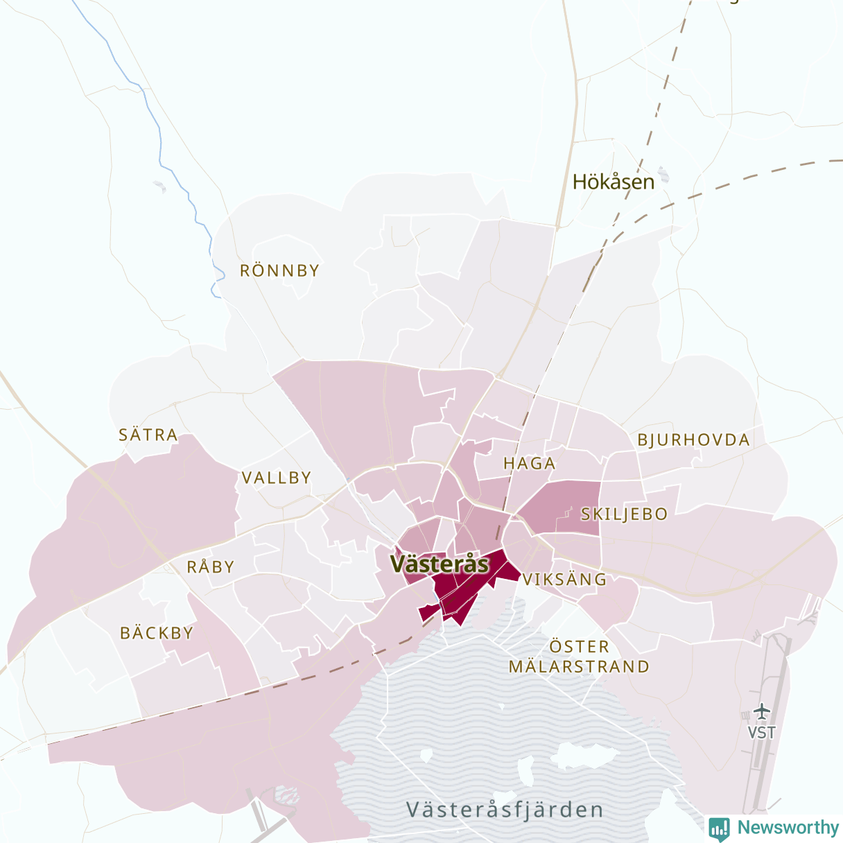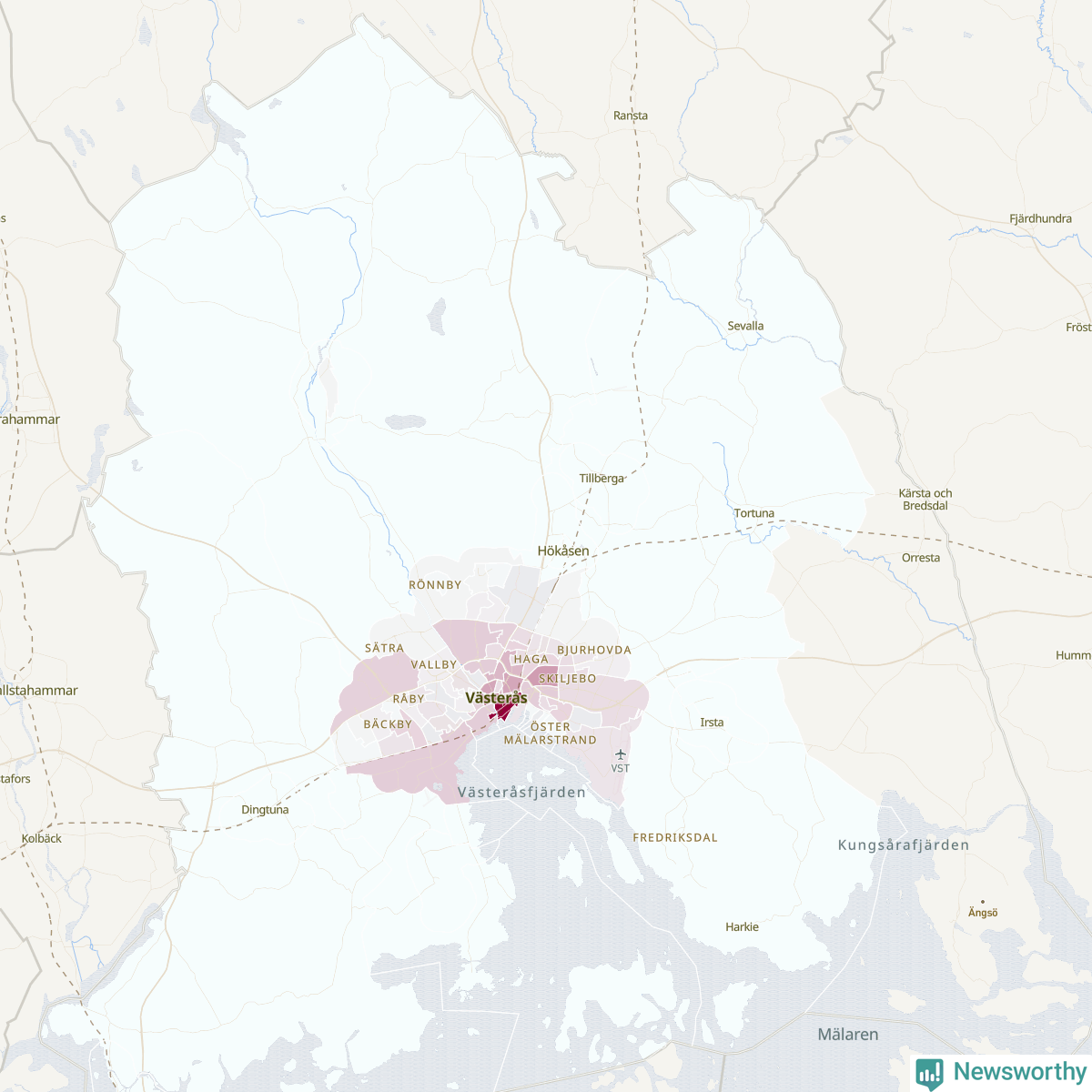 Men alla delar av Västerås är inte lika hårt drabbade. Det visar data för de senaste fem åren, som Newsworthy har begärt ut från polisen. De anmälda stölderna har kopplats till SCB:s 87 statistiska områden i kommunen. I ett område finns inga cykelstölder registrerade, men i de övriga rör det sig om mellan en handfull och omkring 500 anmälda stölder per område.