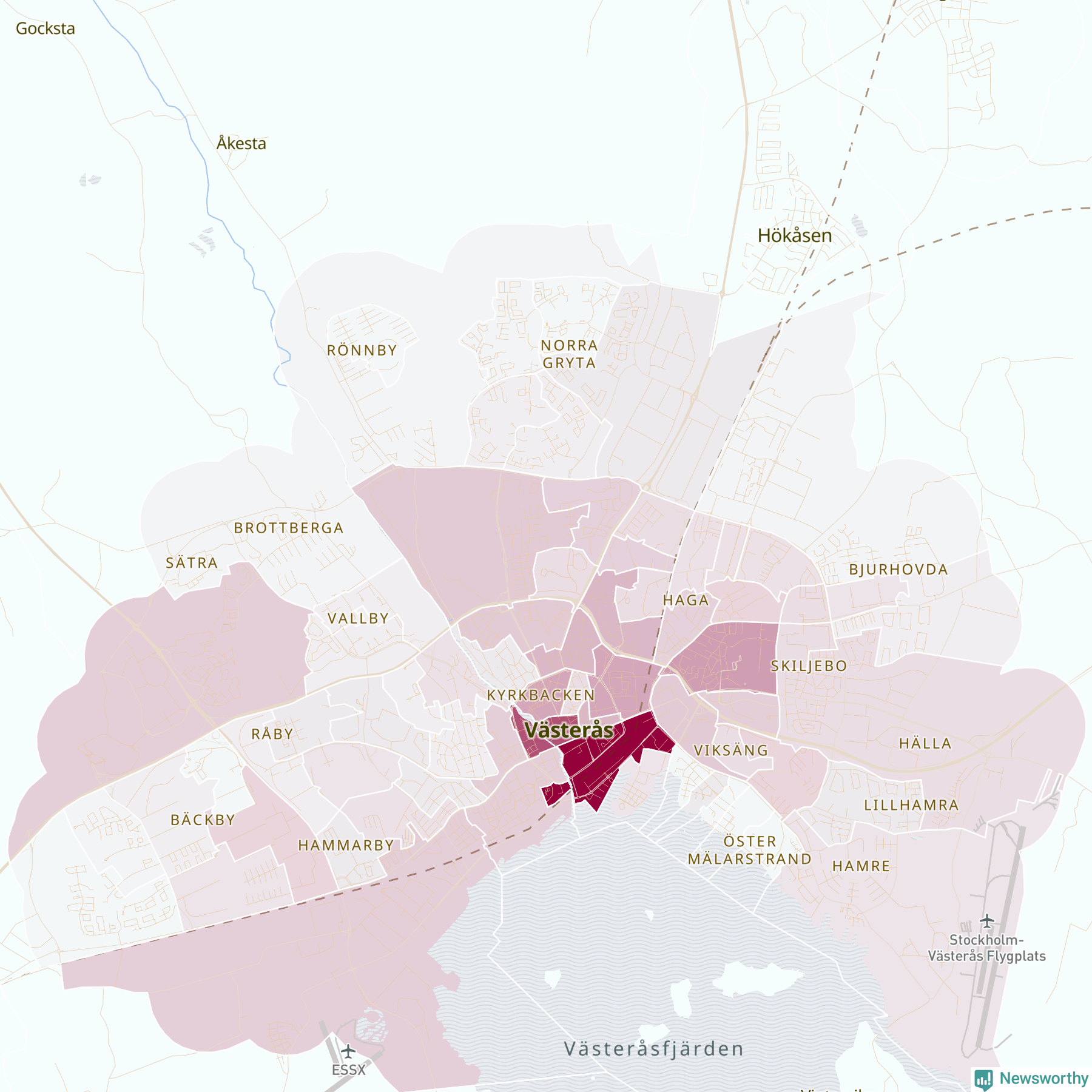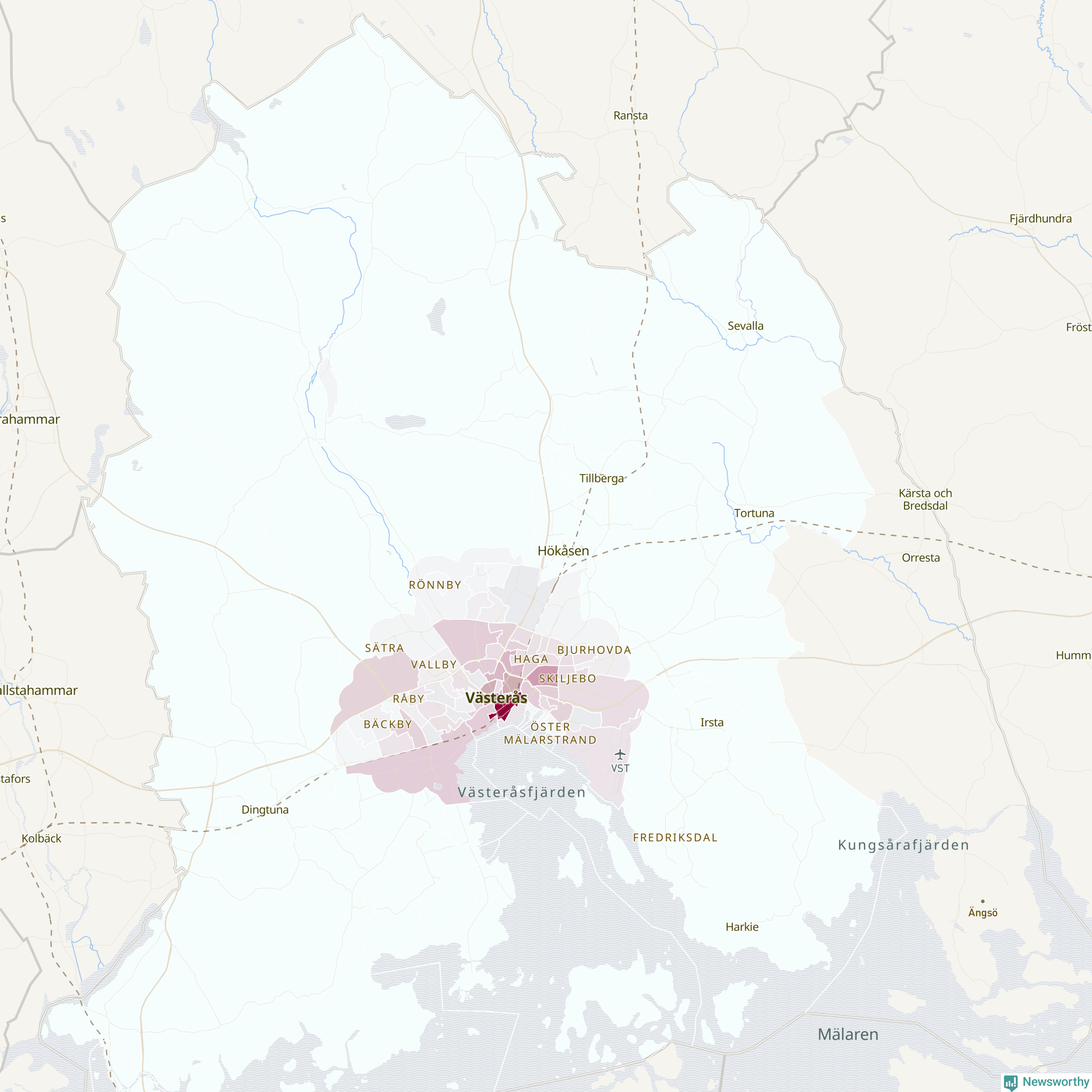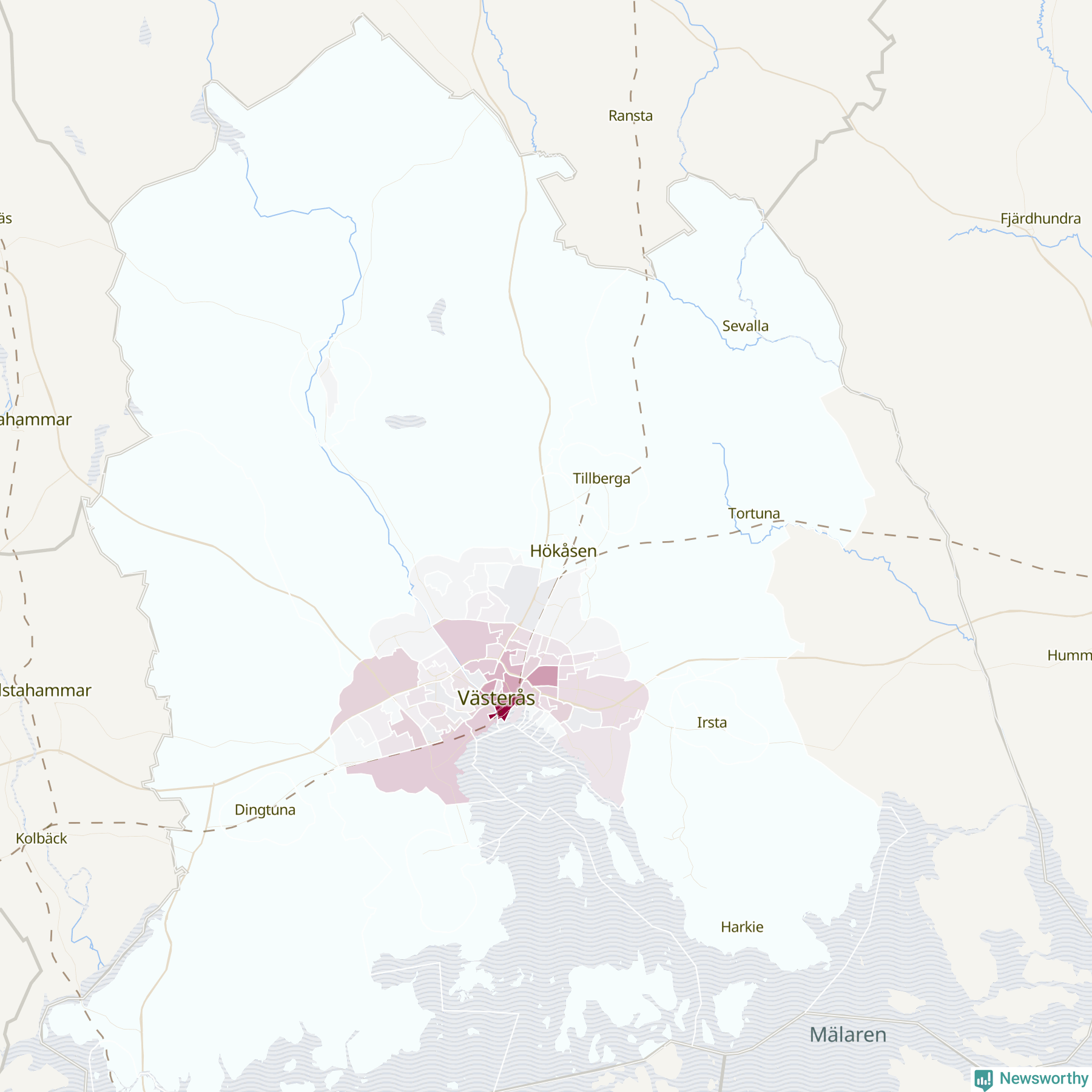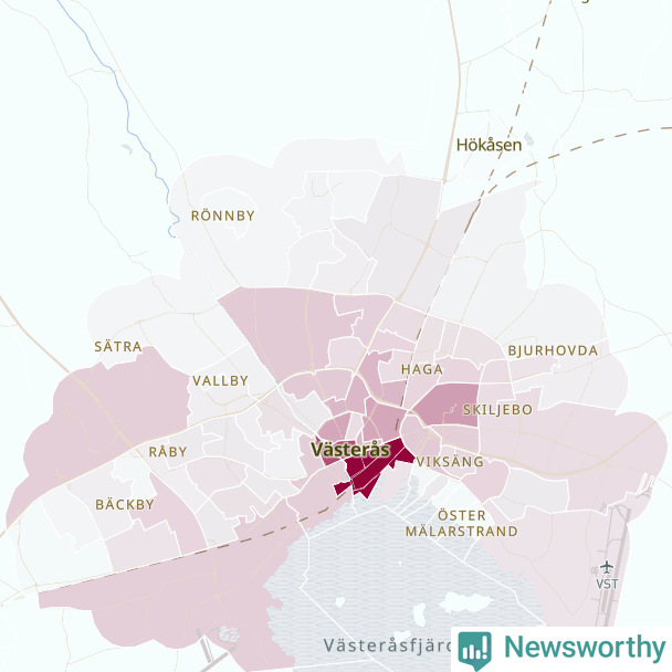 Men alla delar av Västerås är inte lika hårt drabbade. Det visar data för de senaste fem åren, som Newsworthy har begärt ut från polisen. De anmälda stölderna har kopplats till SCB:s 87 statistiska områden i kommunen. I ett område finns inga cykelstölder registrerade, men i de övriga rör det sig om mellan en handfull och omkring 500 anmälda stölder per område.