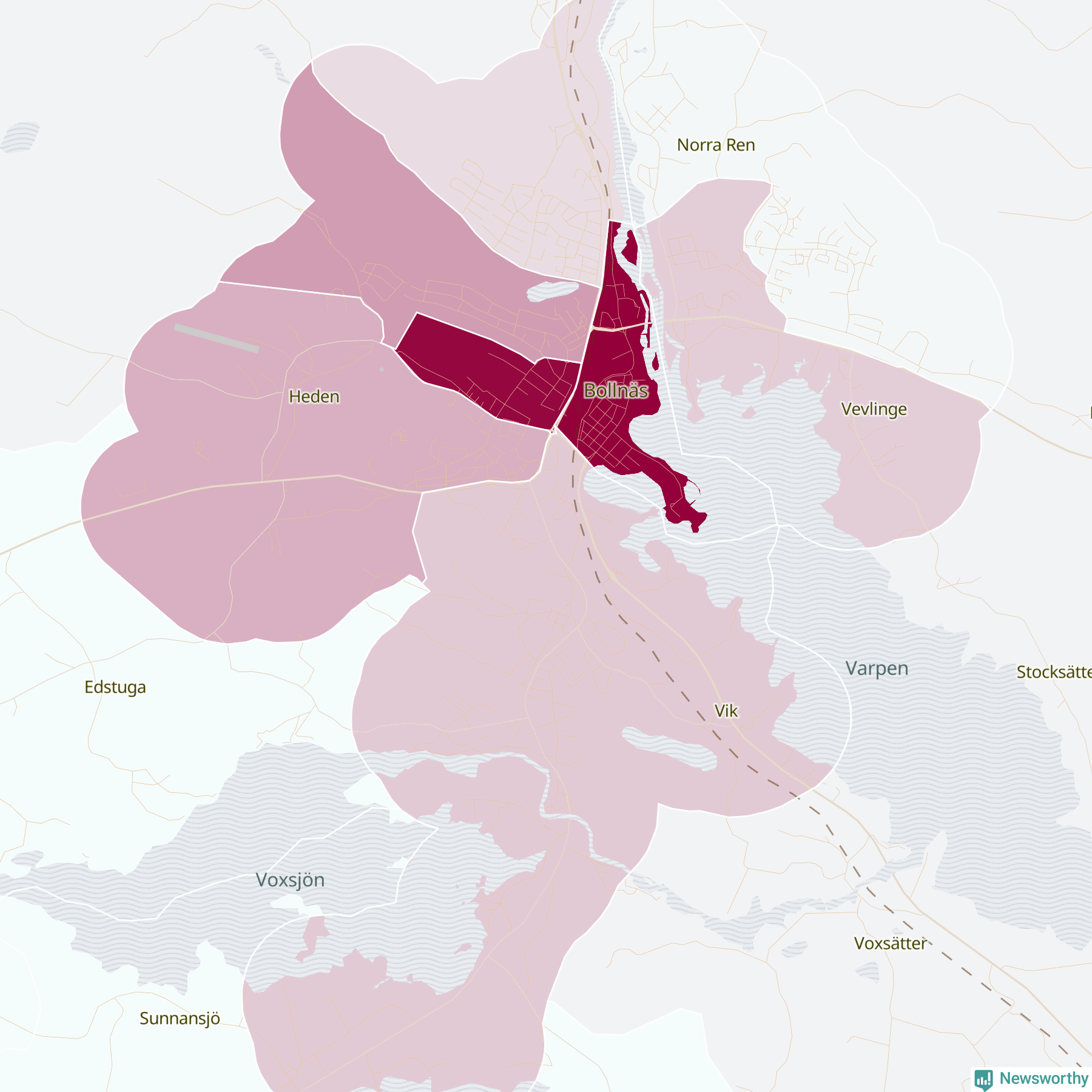 Men alla delar av Bollnäs är inte lika hårt drabbade. Det visar data för de senaste fem åren, som Newsworthy har begärt ut från polisen. De anmälda stölderna har kopplats till SCB:s 17 statistiska områden i kommunen. I ett område finns inga cykelstölder registrerade, men i de övriga rör det sig om mellan en handfull och ett sjuttiotal anmälda stölder per område.