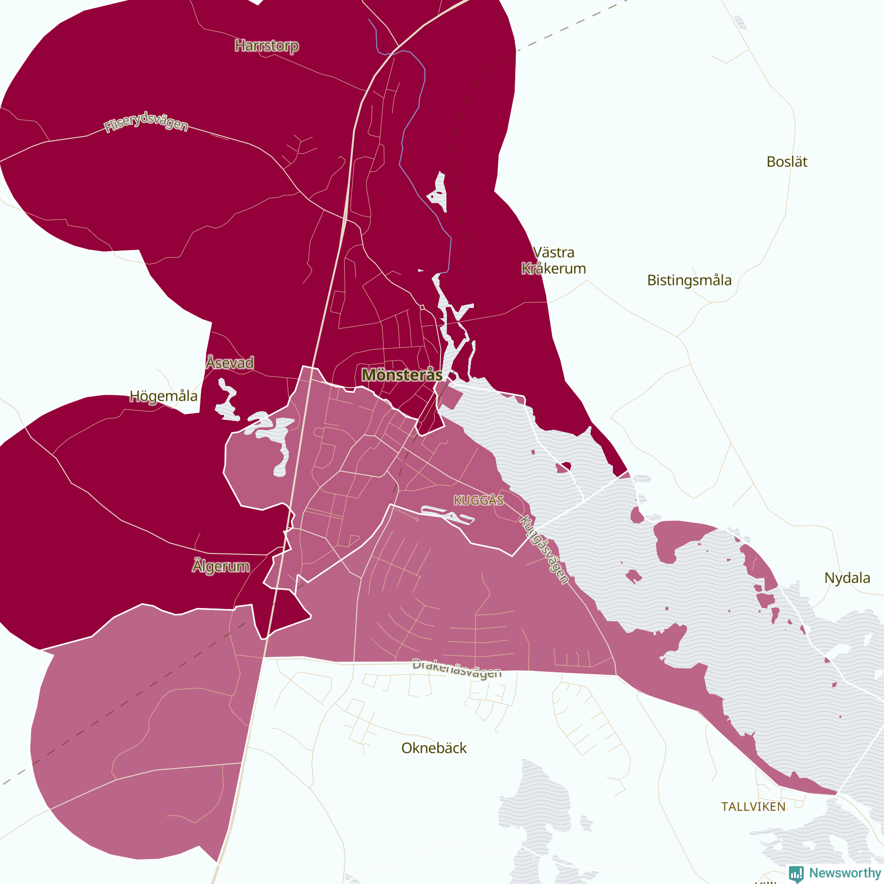 Området med flest anmälda cykelstölder i Mönsterås kommun är Norra-västra Mönsterås samhälle, där det handlar om 27 anmälningar under perioden 2020–2025.
