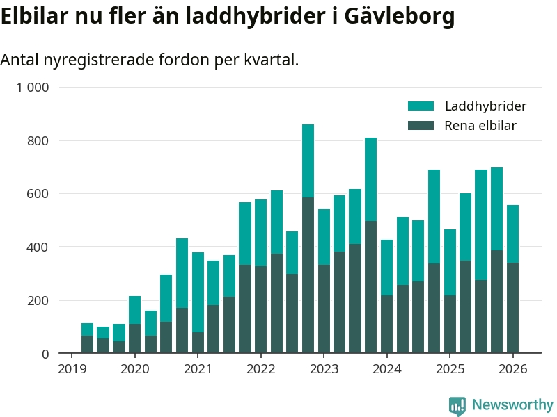 I Gävleborg noterades ett nytt rekord under första kvartalet. Aldrig tidigare har laddbara bilar utgjort en så stor del av alla nya bilar.