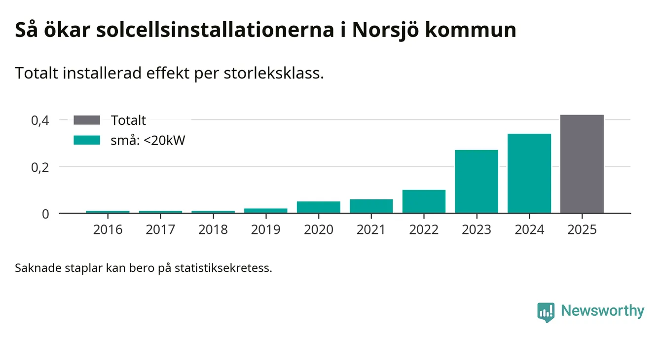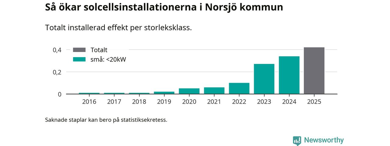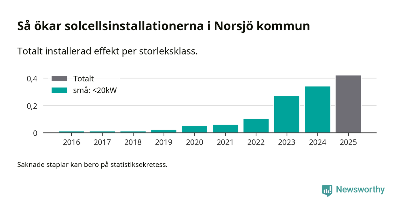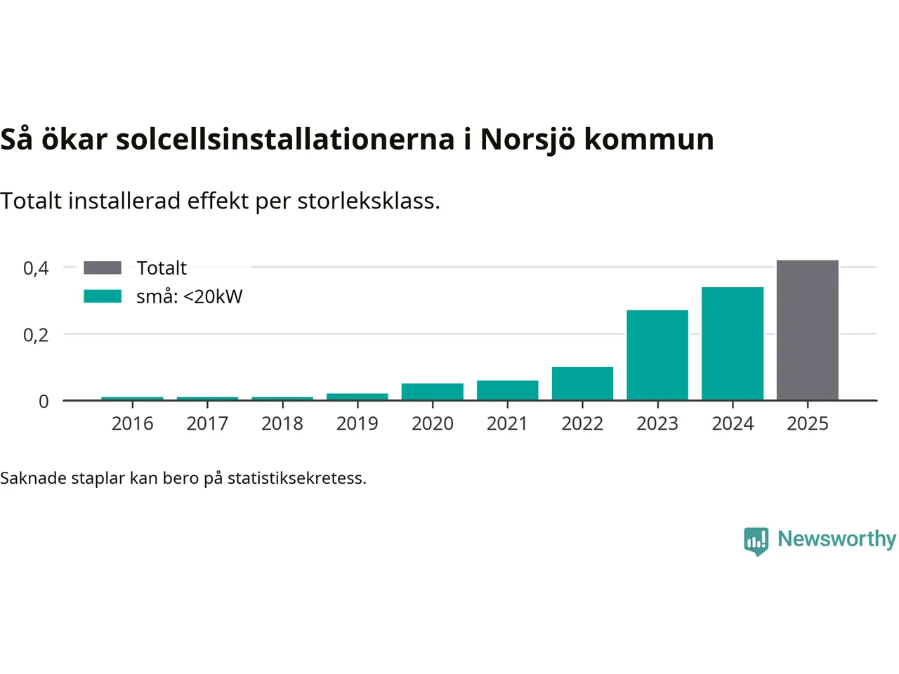 Under 2025 anslöts 80 kilowatt ny solel till elnätet i Norsjö kommun, en ökning med 24 procent jämfört med året innan.