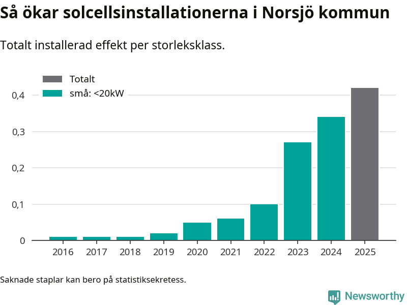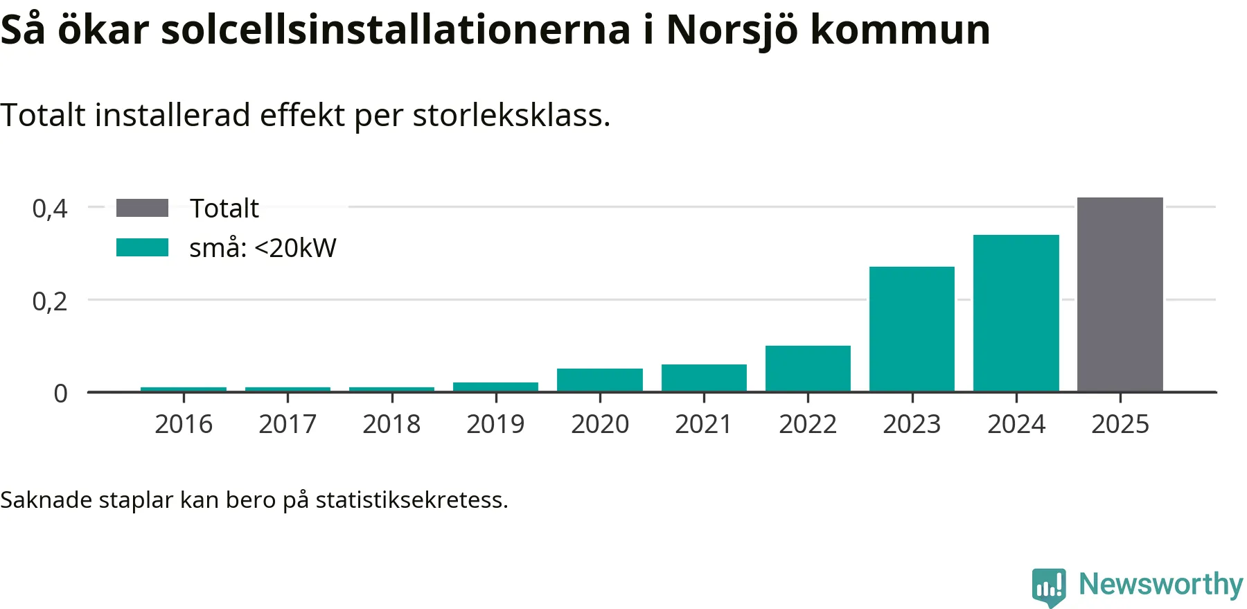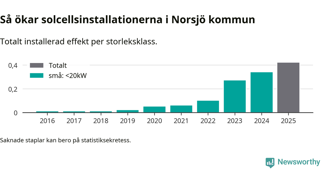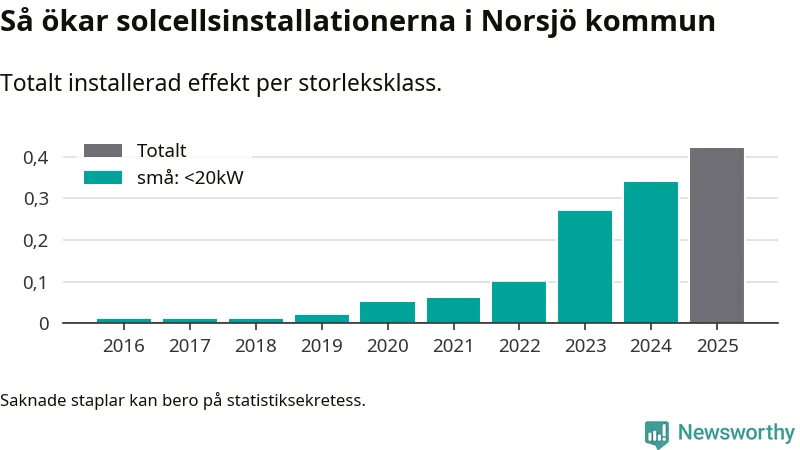 Under 2025 anslöts 80 kilowatt ny solel till elnätet i Norsjö kommun, en ökning med 24 procent jämfört med året innan.