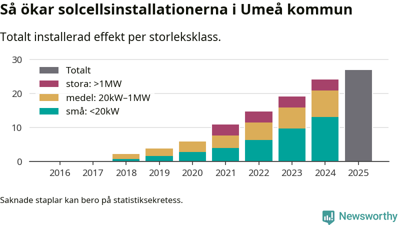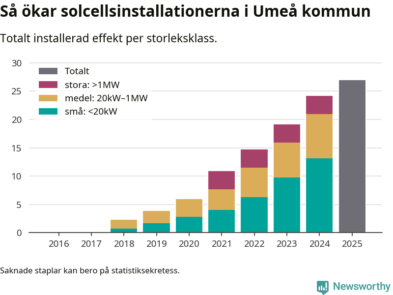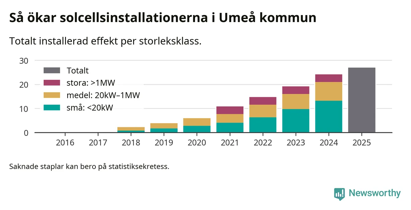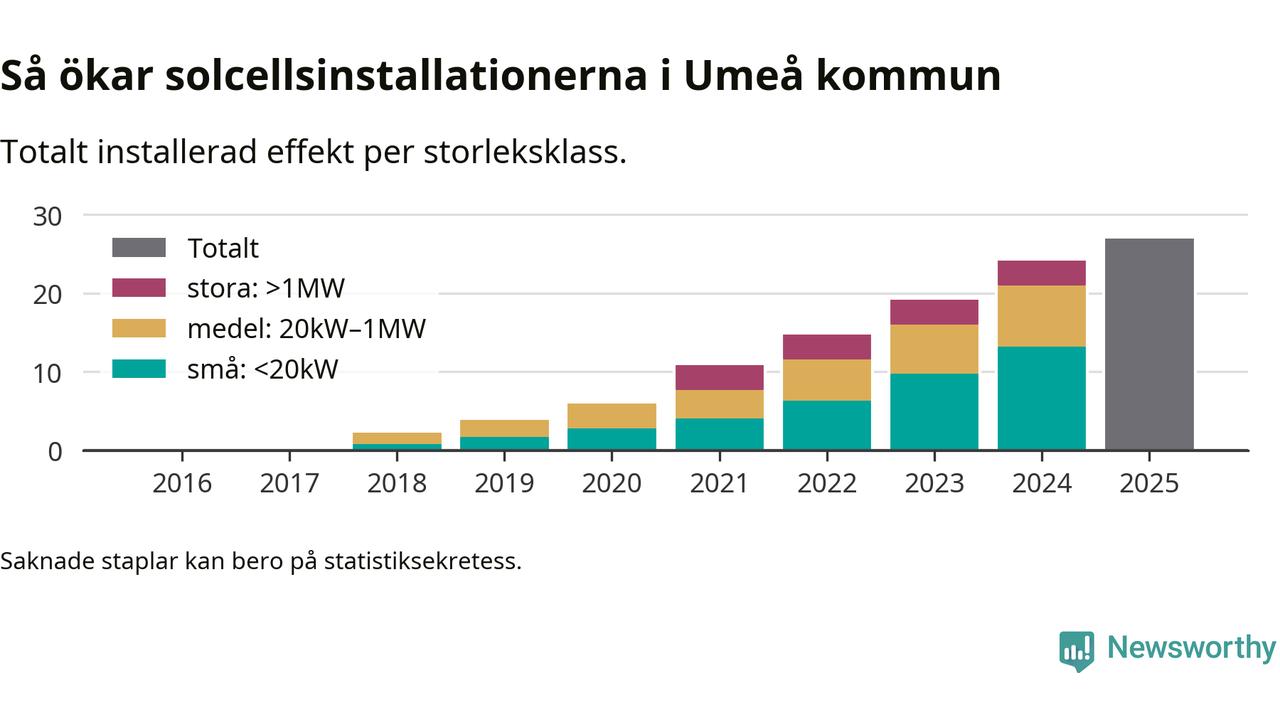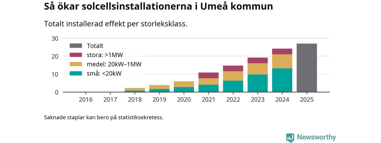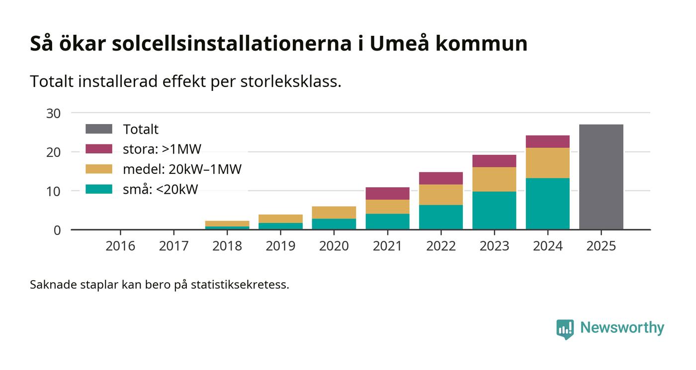 Så mycket ny solel byggdes i Umeå