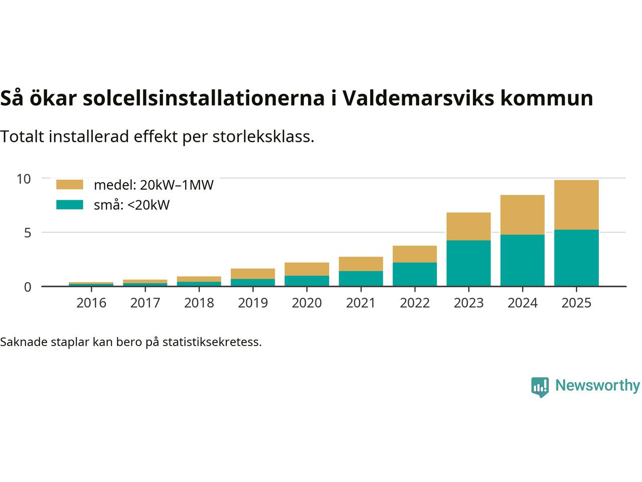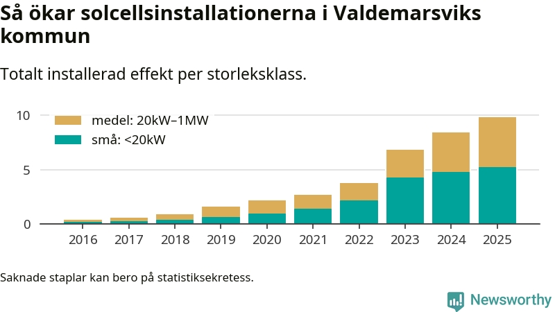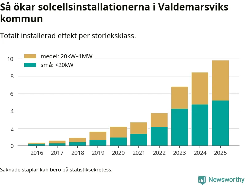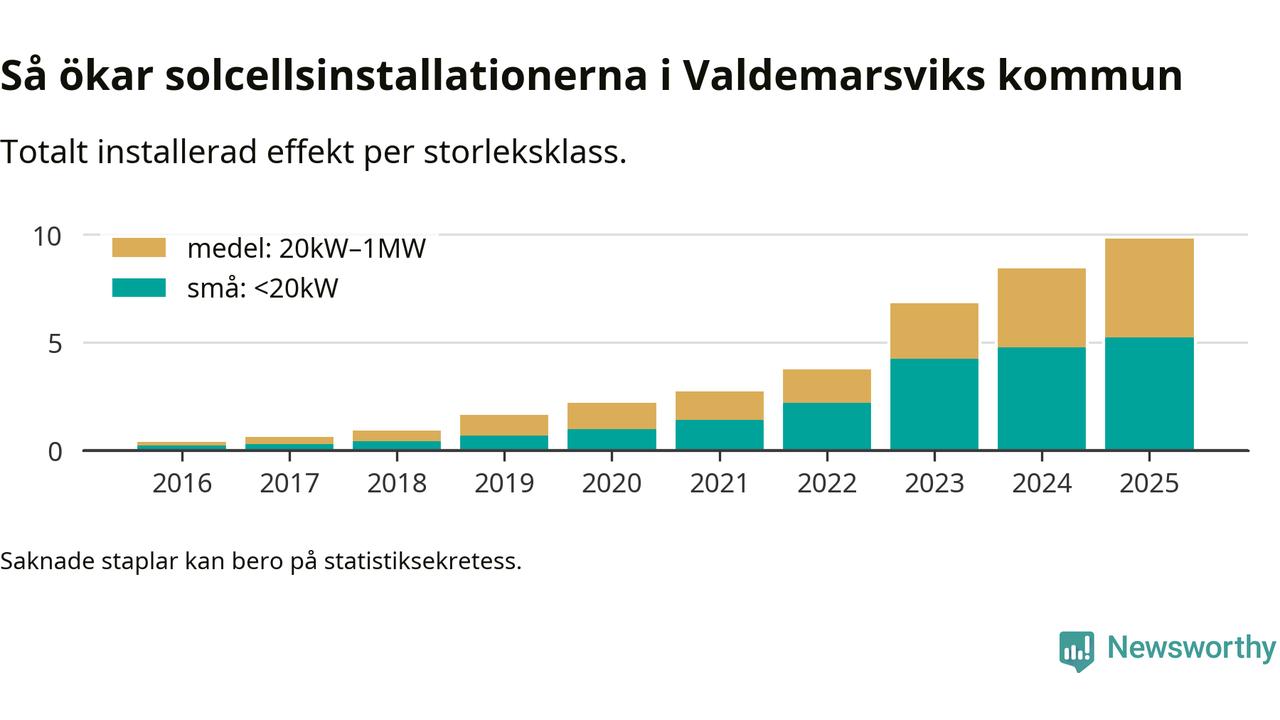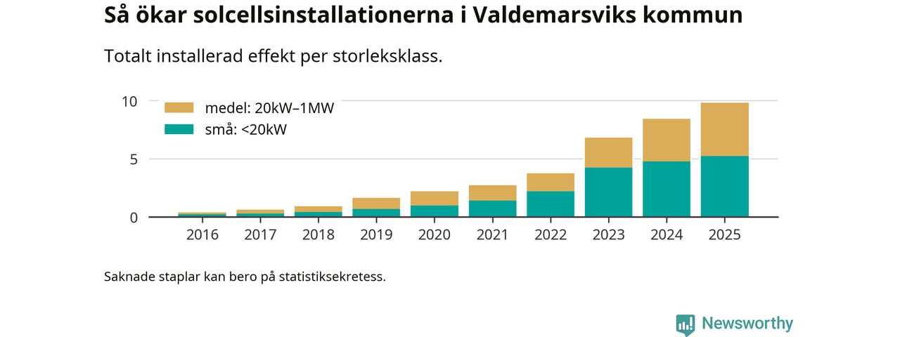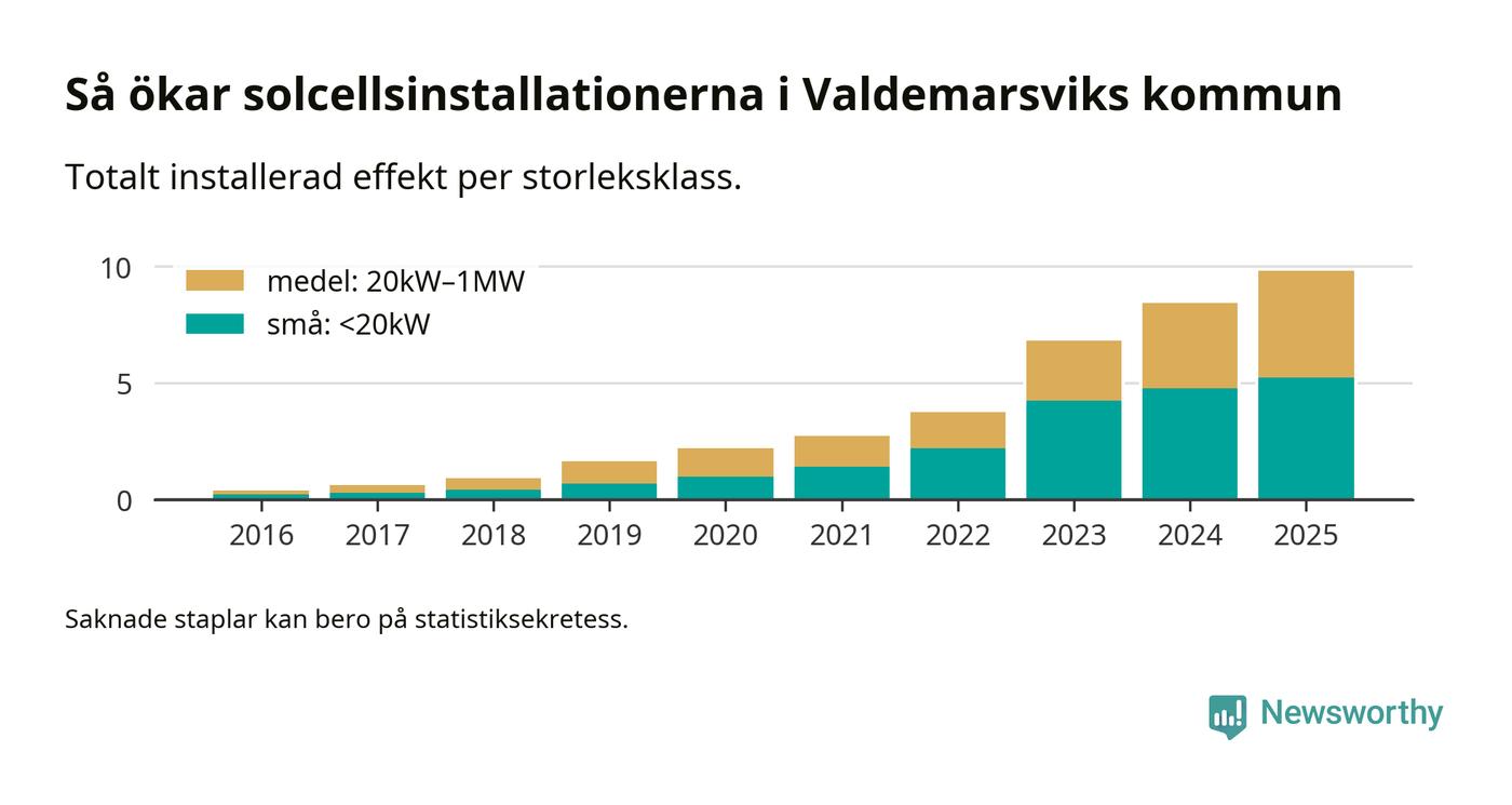 Under 2025 anslöts 1,4 megawatt ny solel till elnätet i Valdemarsviks kommun, en ökning med 17 procent jämfört med året innan.