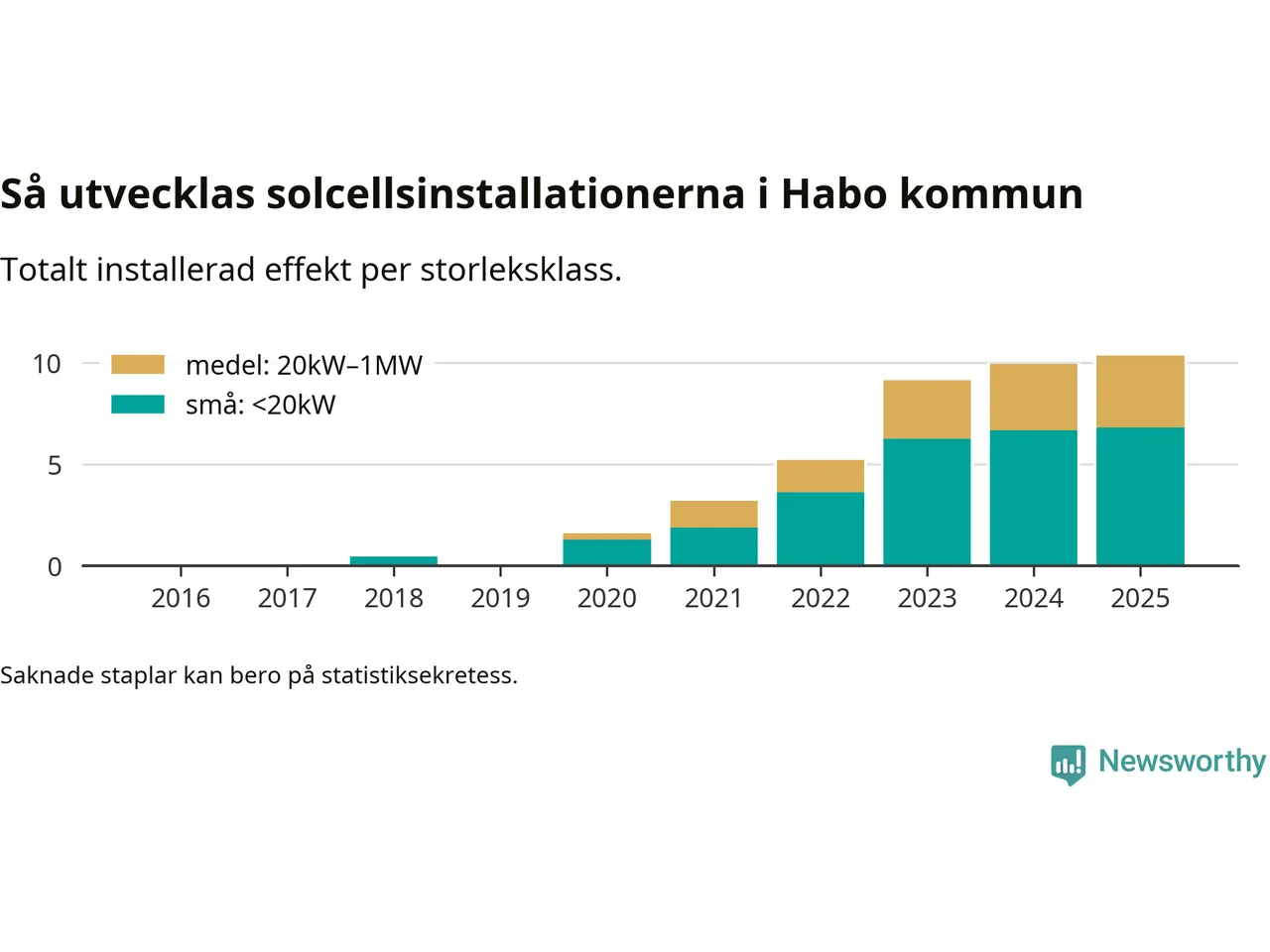 Under 2025 anslöts 420 kilowatt ny solel till elnätet i Habo kommun, en ökning med 4 procent jämfört med året innan.