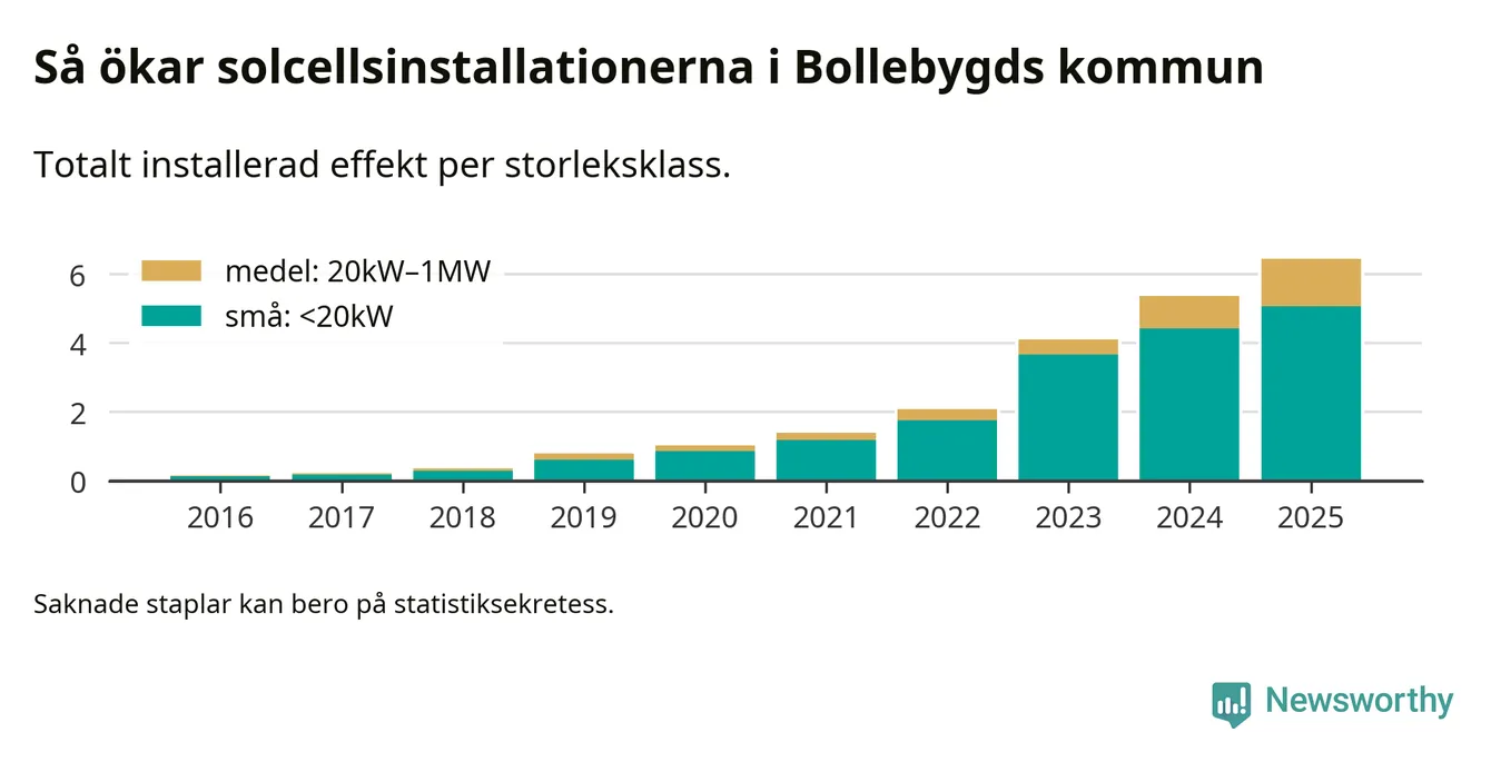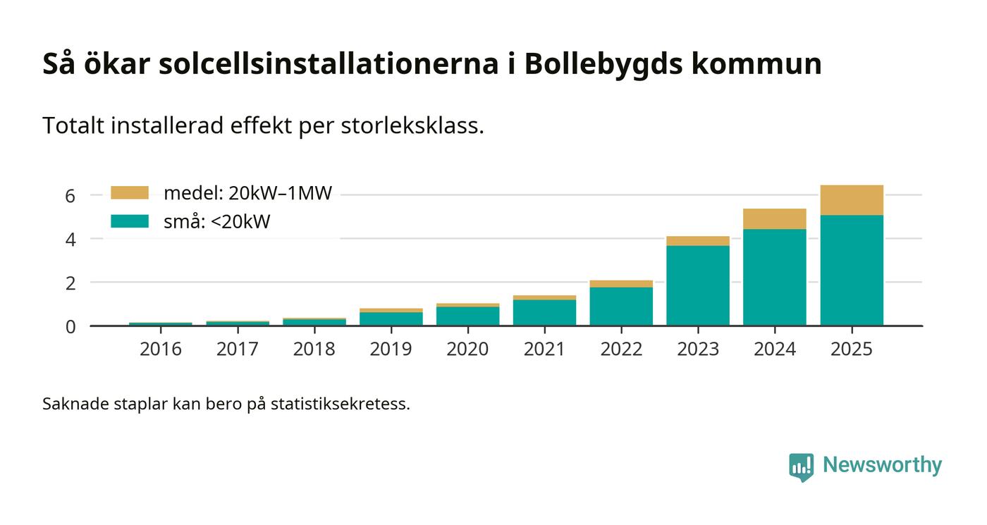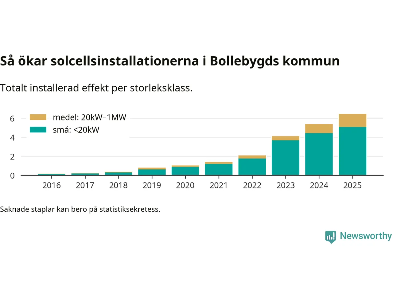 Under 2025 anslöts 1,1 megawatt ny solel till elnätet i Bollebygds kommun, en ökning med 20 procent jämfört med året innan.