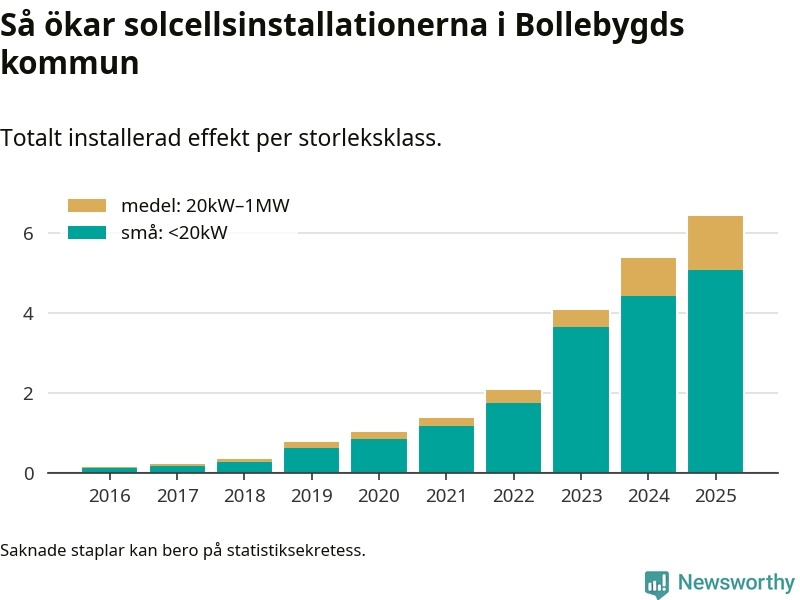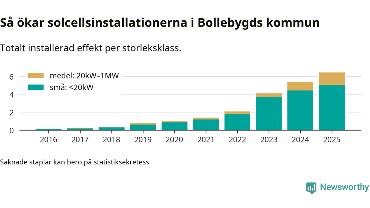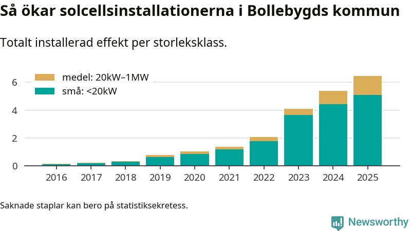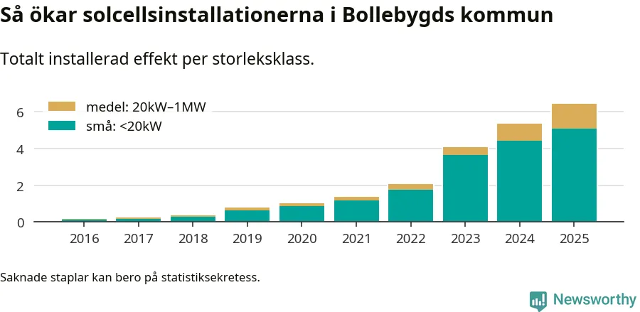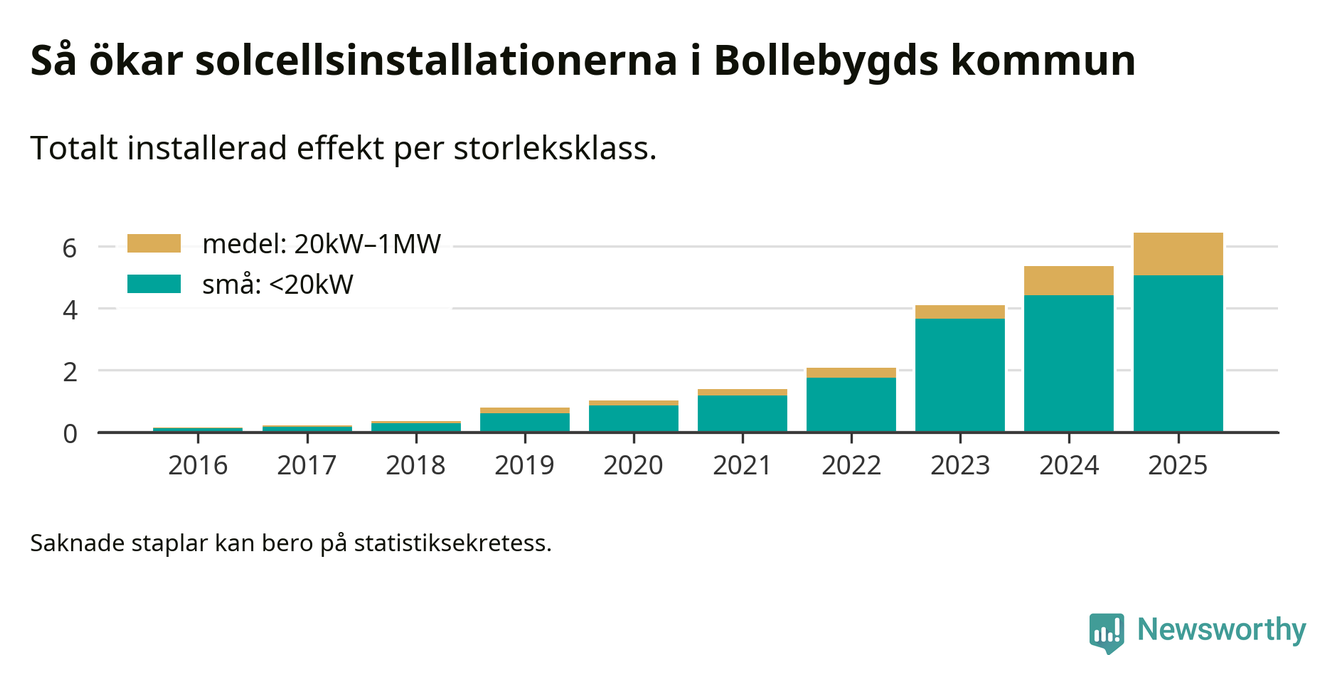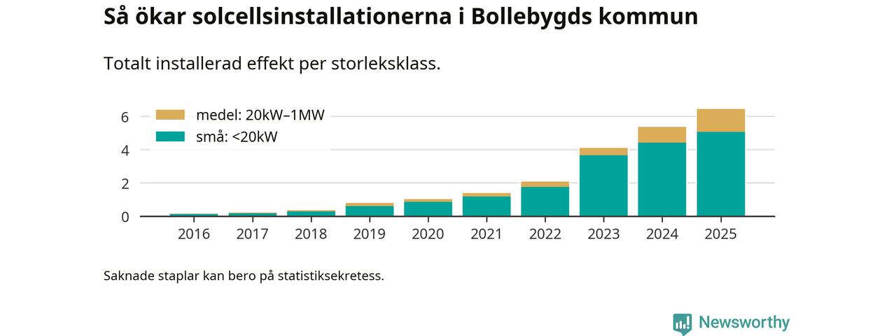 Under 2025 anslöts 1,1 megawatt ny solel till elnätet i Bollebygds kommun, en ökning med 20 procent jämfört med året innan.