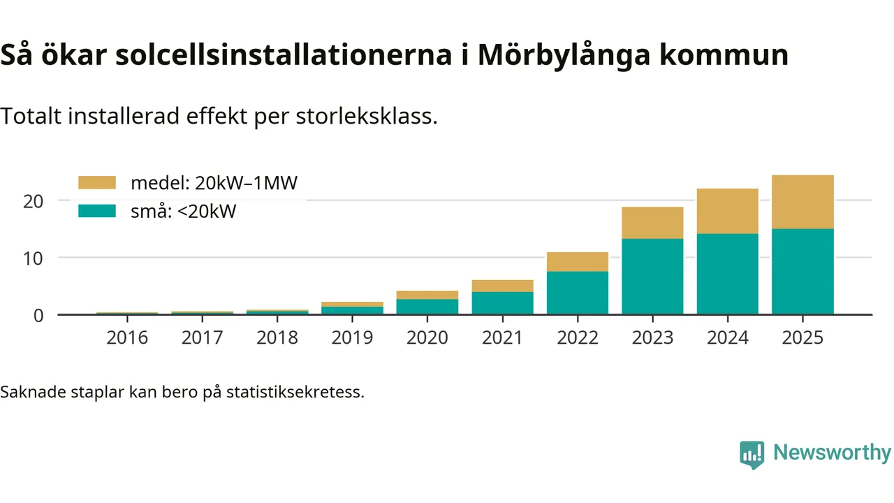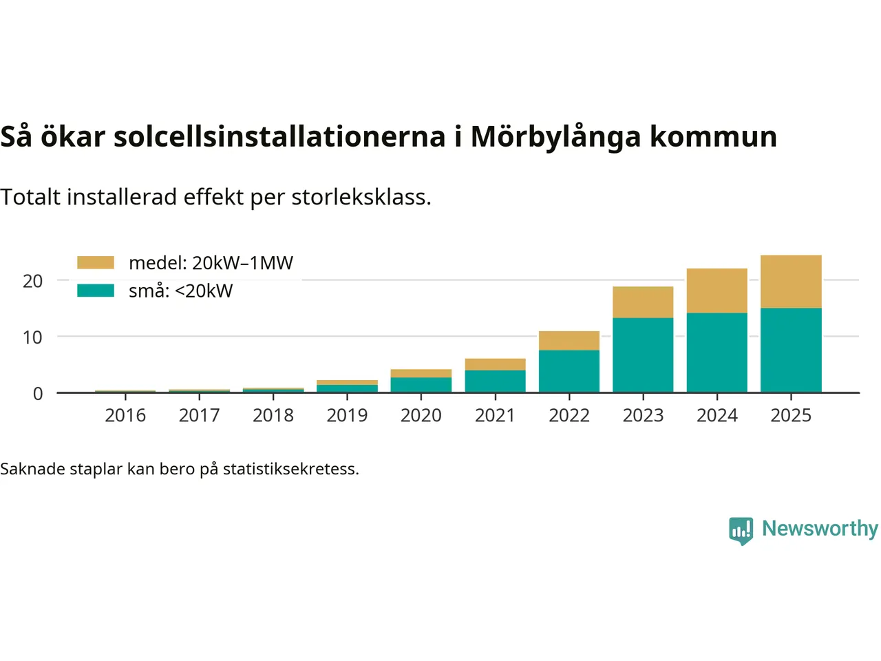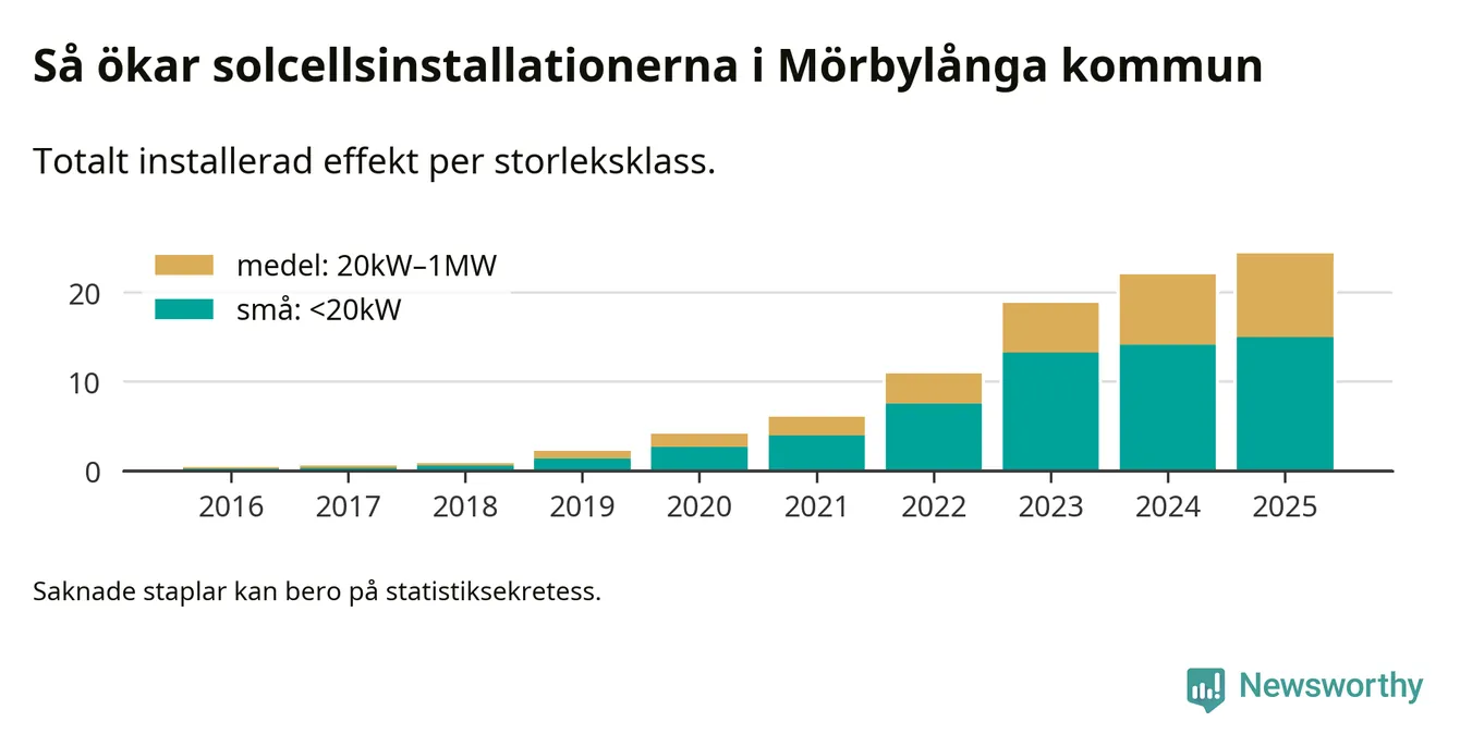 Under 2025 anslöts 2,3 megawatt ny solel till elnätet i Mörbylånga kommun, en ökning med 11 procent jämfört med året innan.