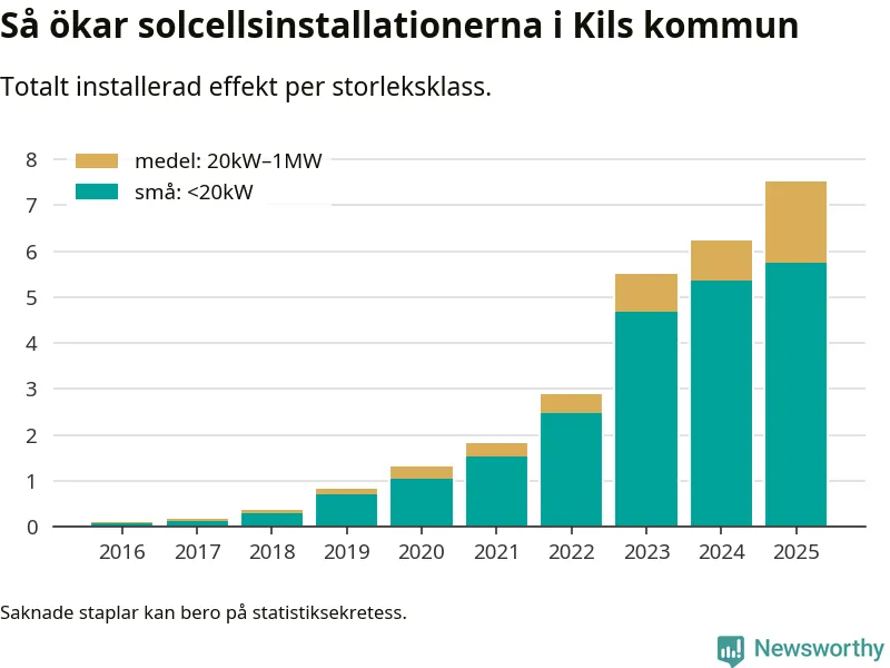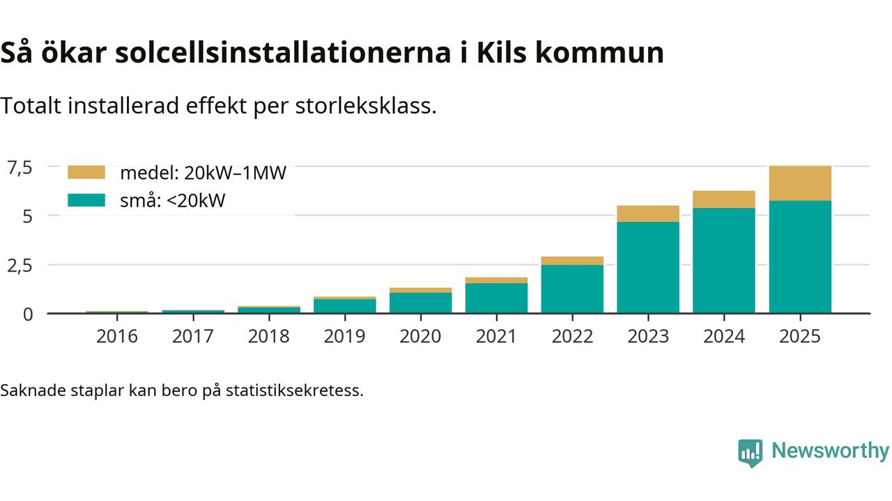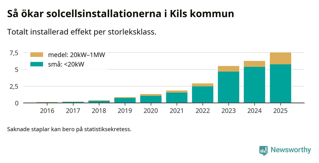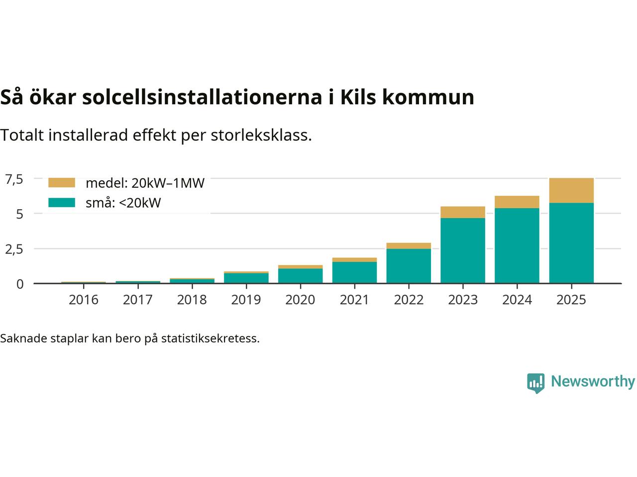 I Kils kommun ökade den installerade solelseffekten i fjol med 20,5 procent, vilket var ungefär som i riket som helhet. Det visar ny statistik från Energimyndigheten.