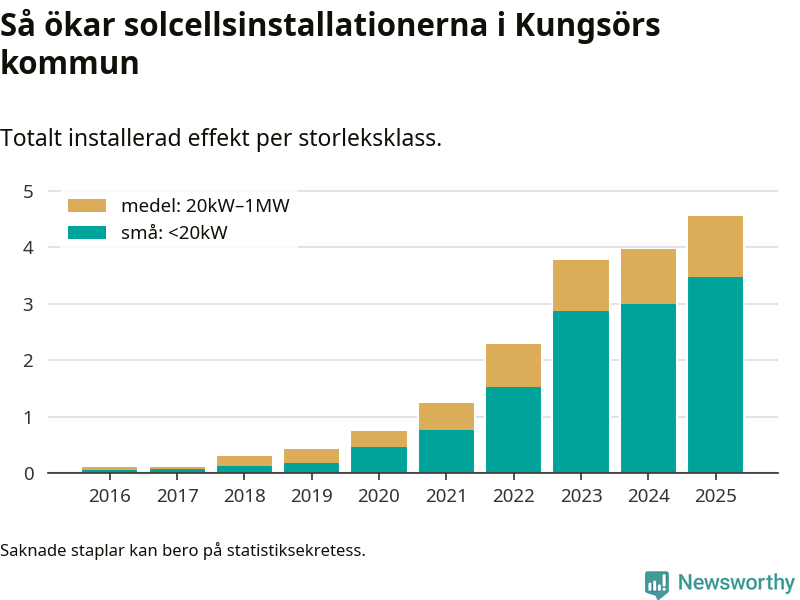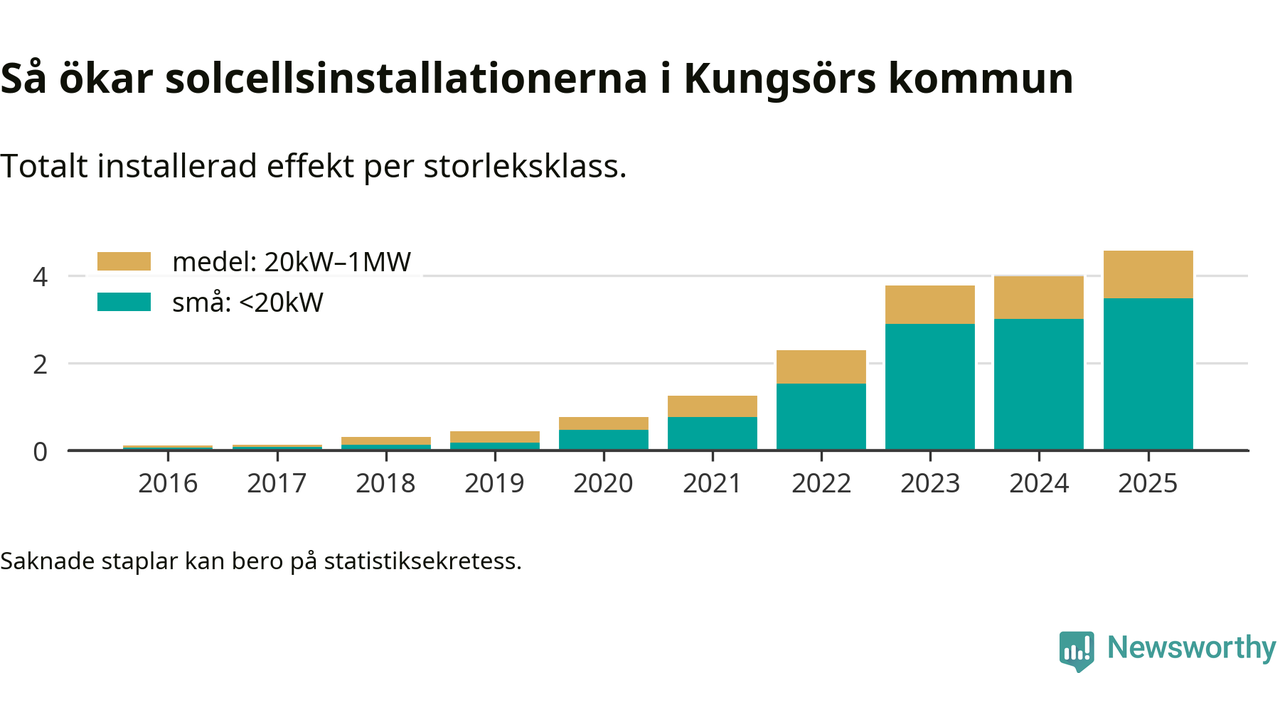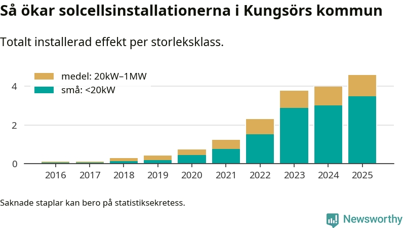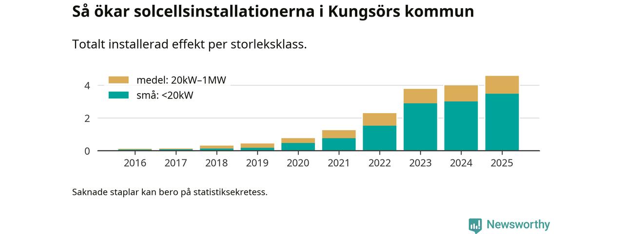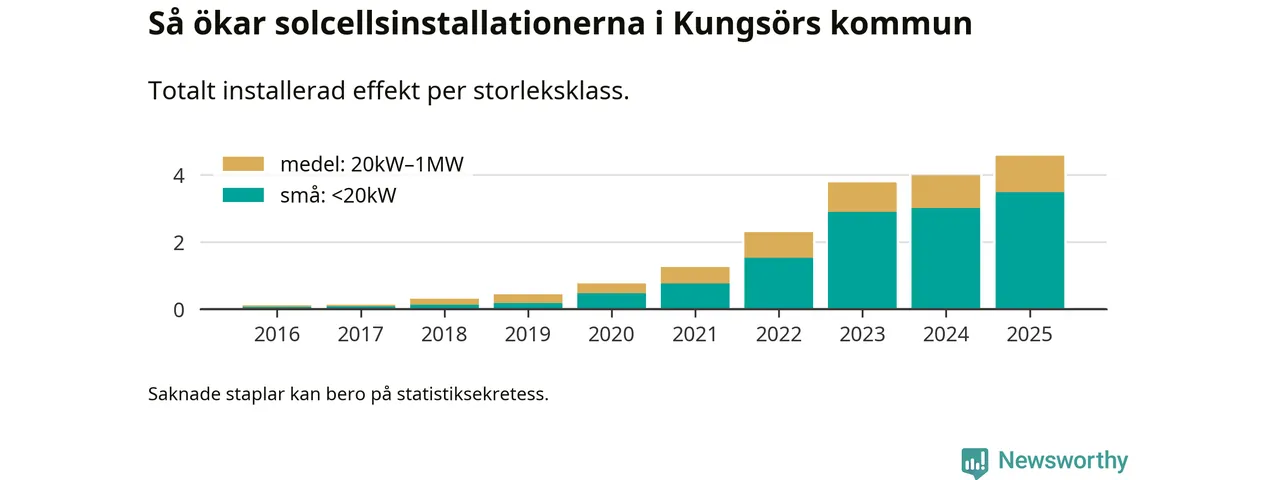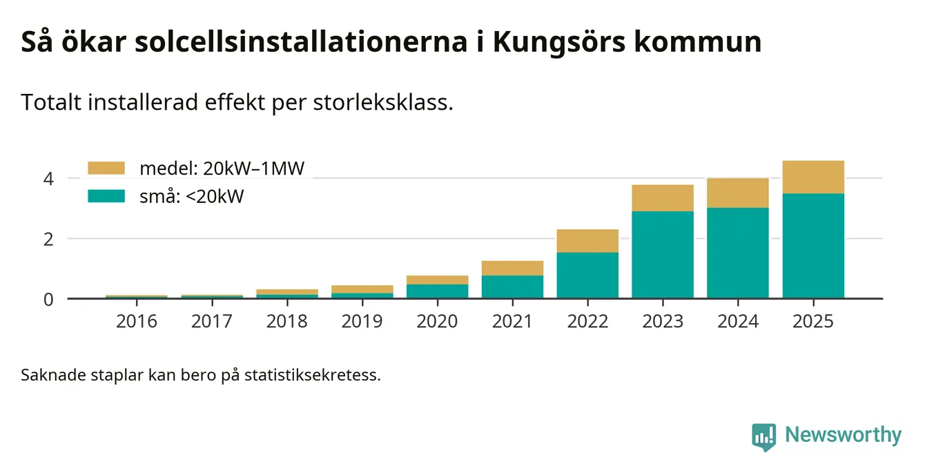 Under 2025 anslöts 0,6 megawatt ny solel till elnätet i Kungsörs kommun, en ökning med 15 procent jämfört med året innan.