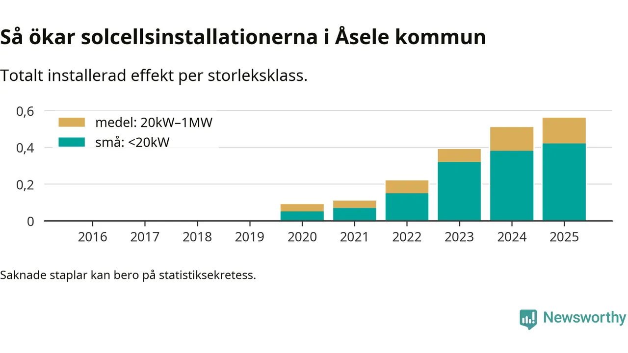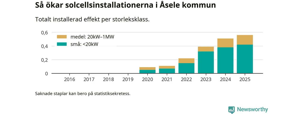 Antalet solcellsinstallationer i Sverige ökar, men i Åsele kommun var utbyggnadstakten under 2025 mindre än i riket i stort. Det visar ny statistik från Energimyndigheten.