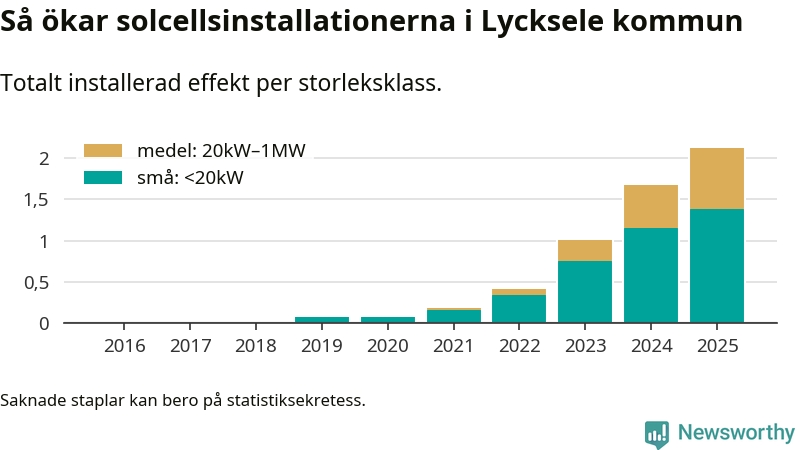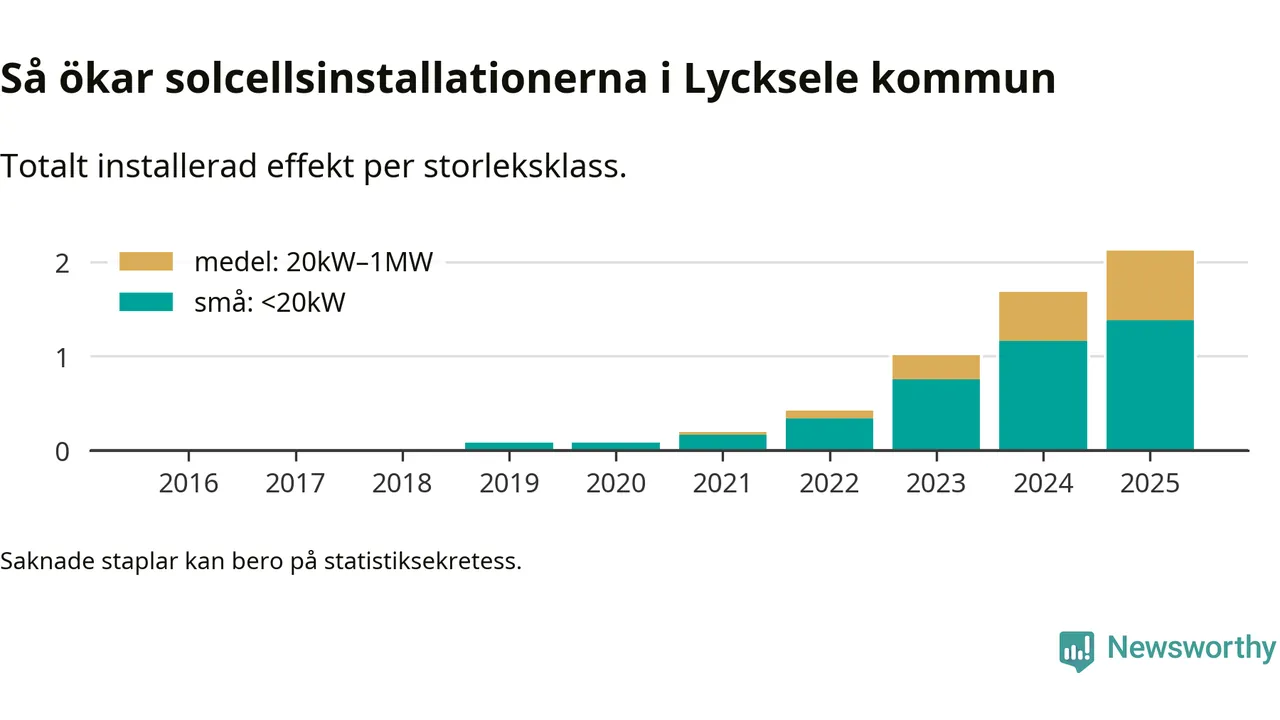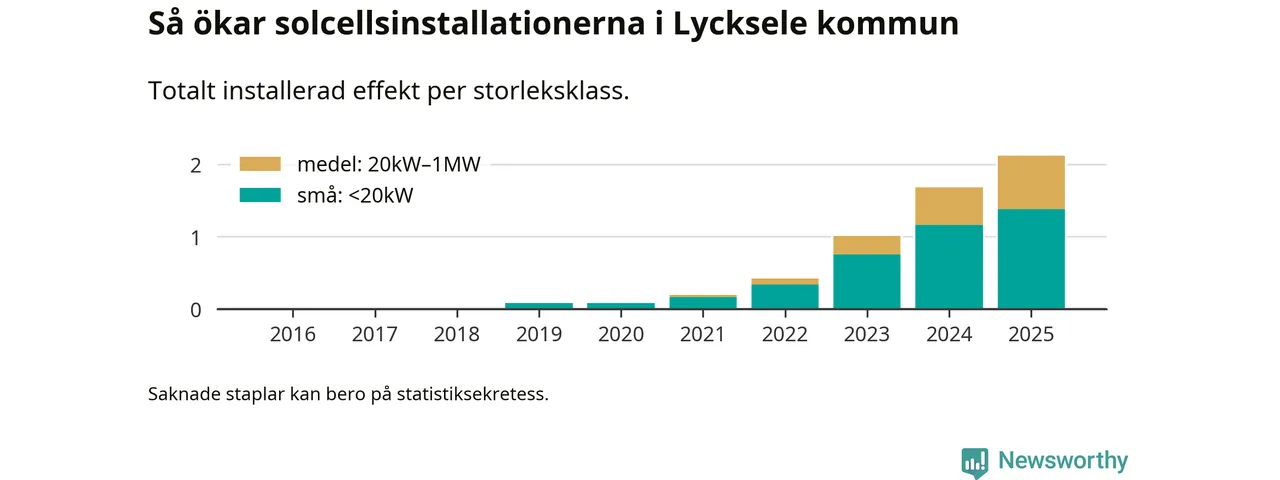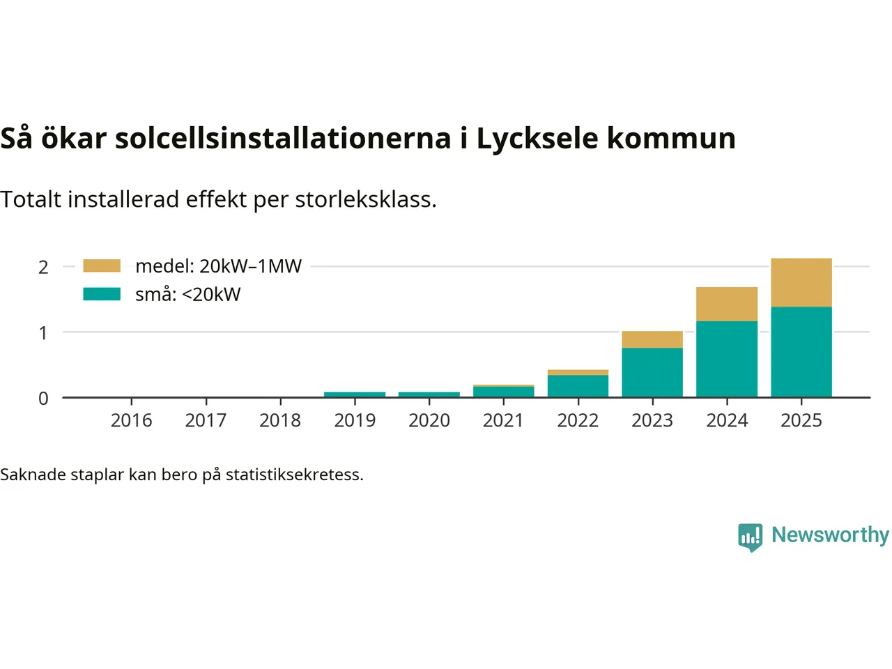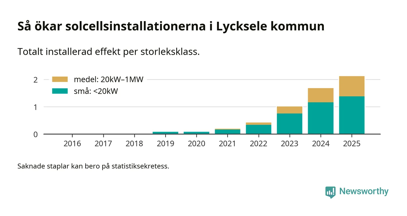 Under 2025 anslöts 440 kilowatt ny solel till elnätet i Lycksele kommun, en ökning med 26 procent jämfört med året innan.