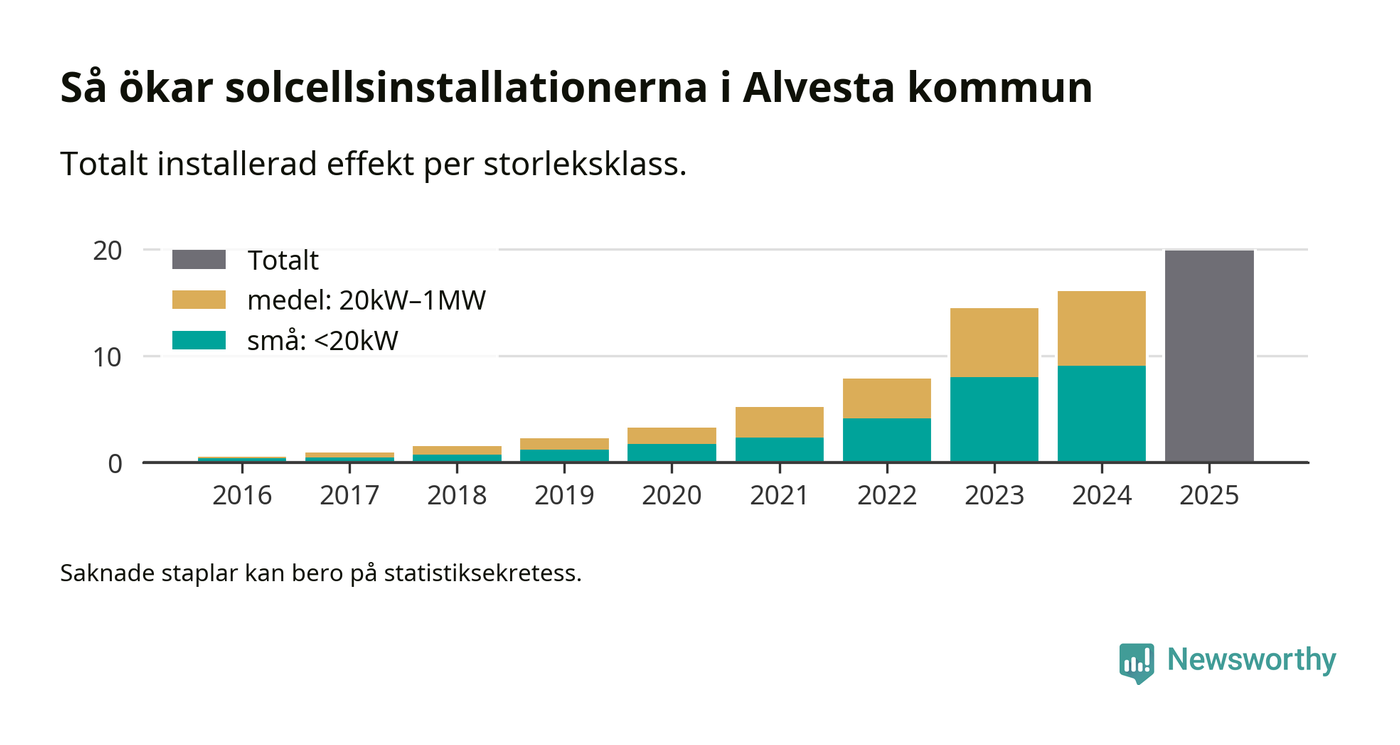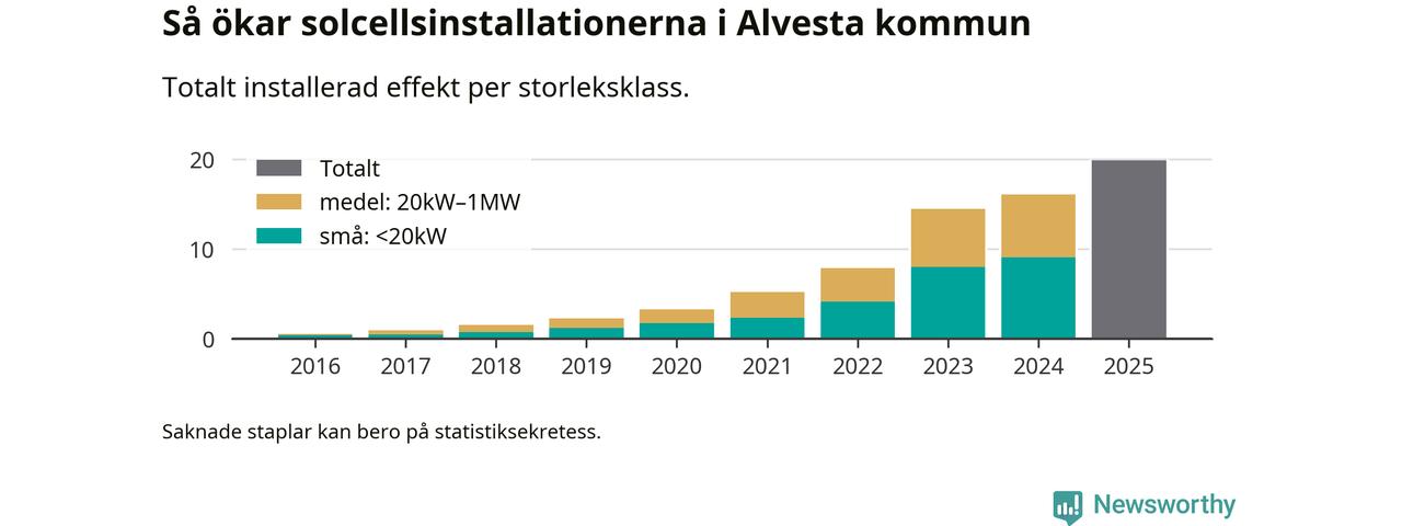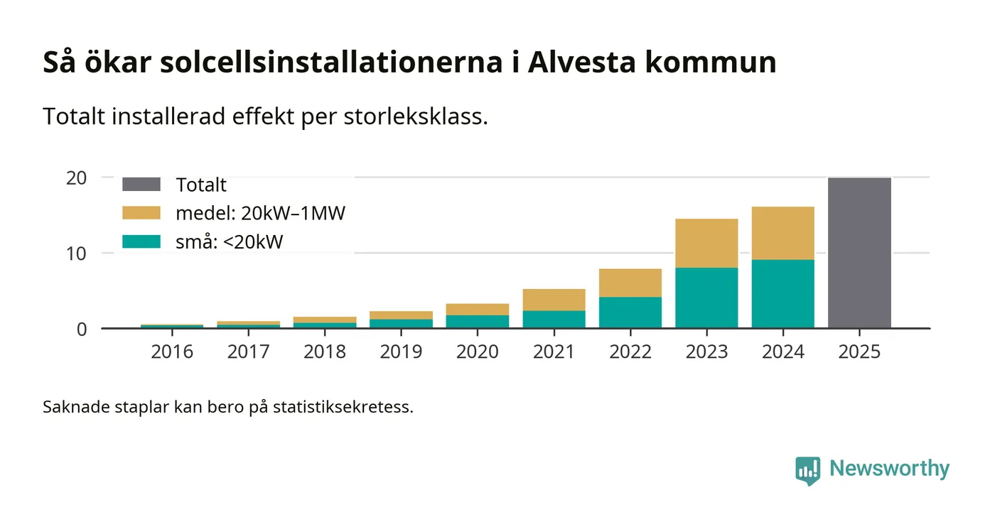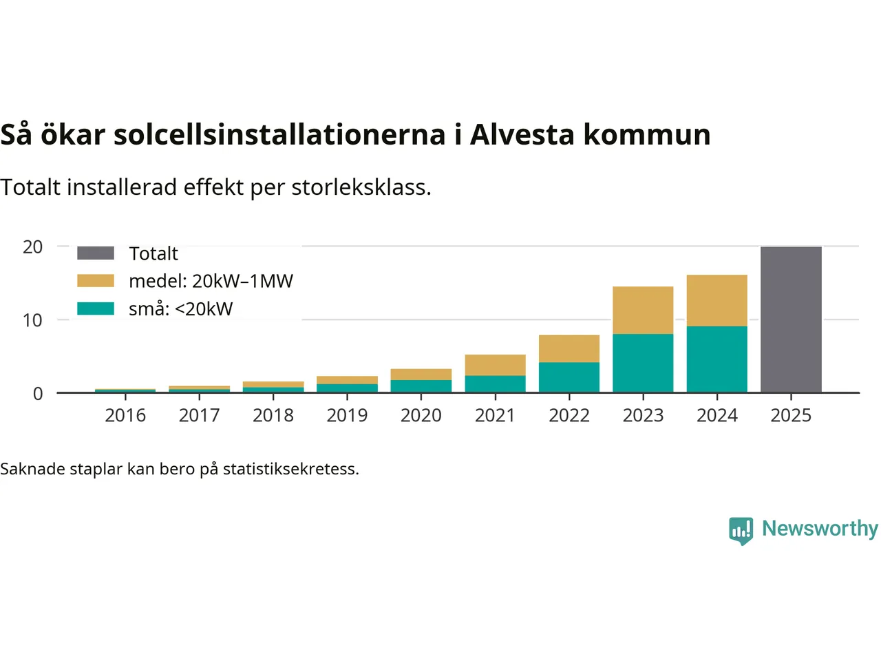 Under 2025 anslöts 3,8 megawatt ny solel till elnätet i Alvesta kommun, en ökning med 24 procent jämfört med året innan.