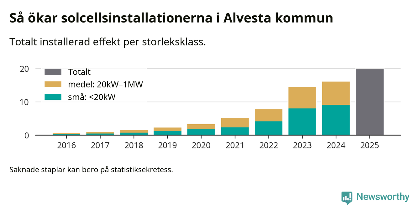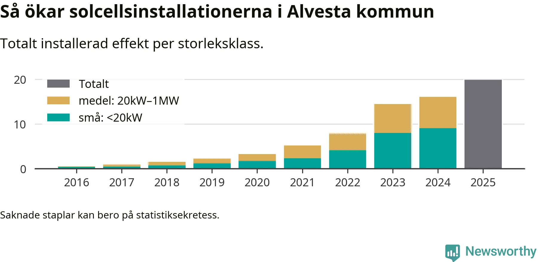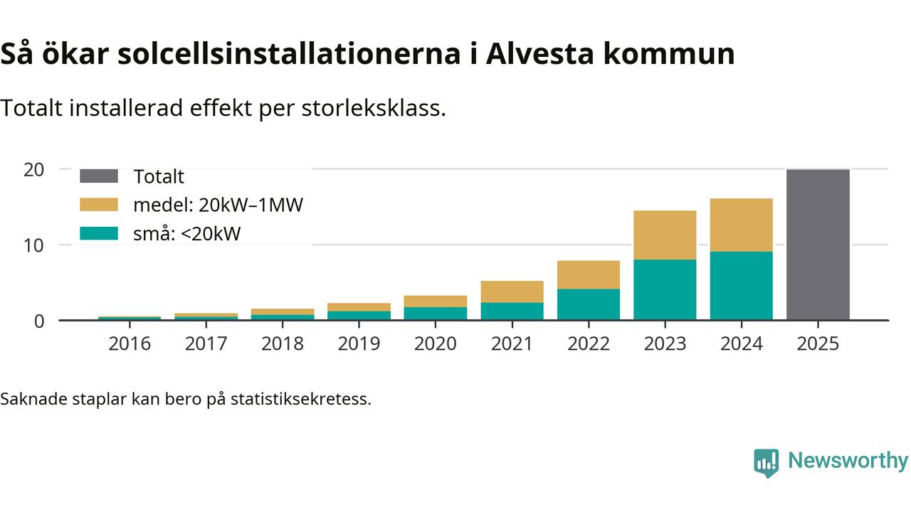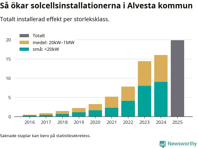 Under 2025 anslöts 3,8 megawatt ny solel till elnätet i Alvesta kommun, en ökning med 24 procent jämfört med året innan.
