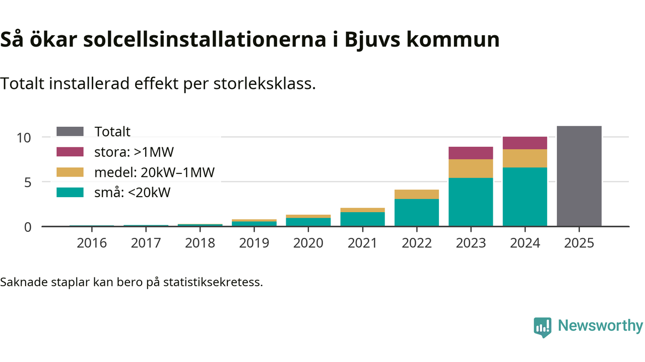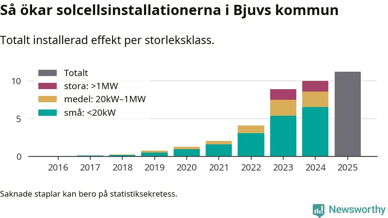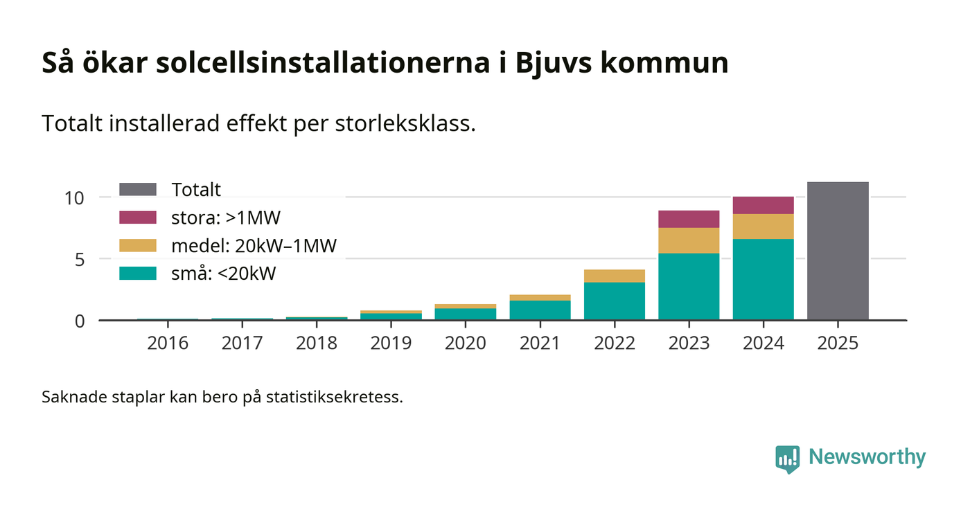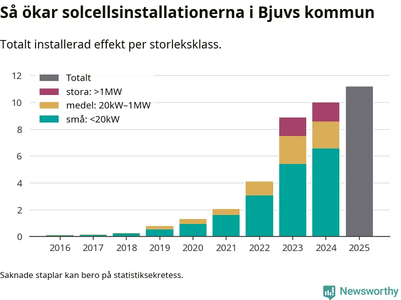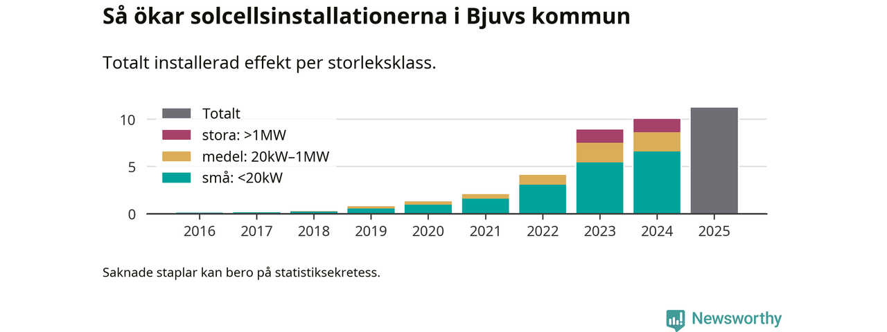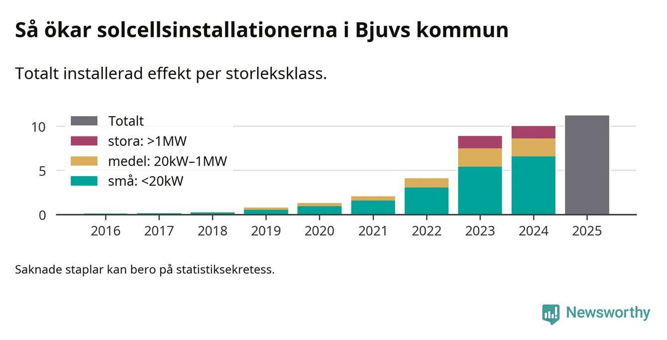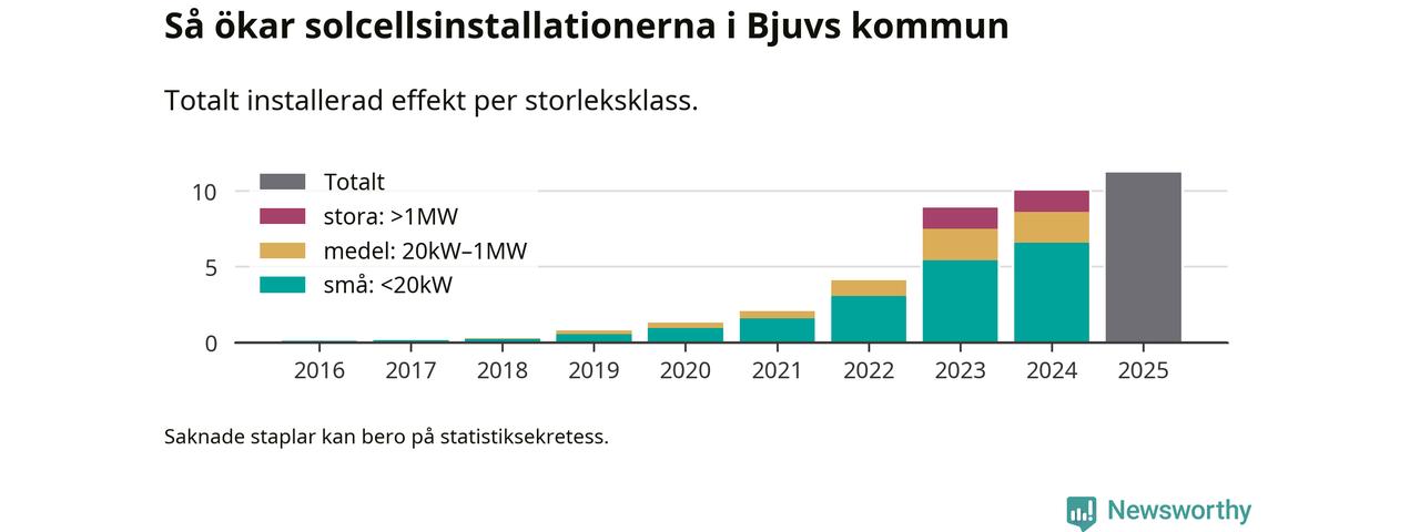 Under 2025 anslöts 1,2 megawatt ny solel till elnätet i Bjuvs kommun, en ökning med 12 procent jämfört med året innan.
