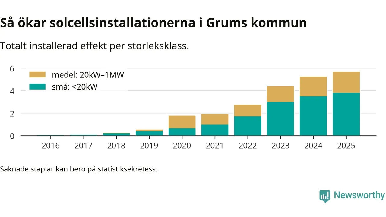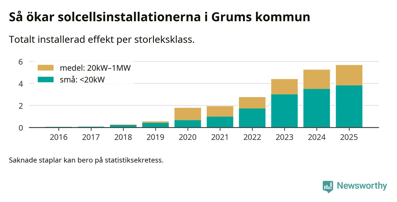 Antalet solcellsinstallationer i Sverige ökar, men i Grums kommun var utbyggnadstakten under 2025 mindre än i riket i stort. Det visar ny statistik från Energimyndigheten.