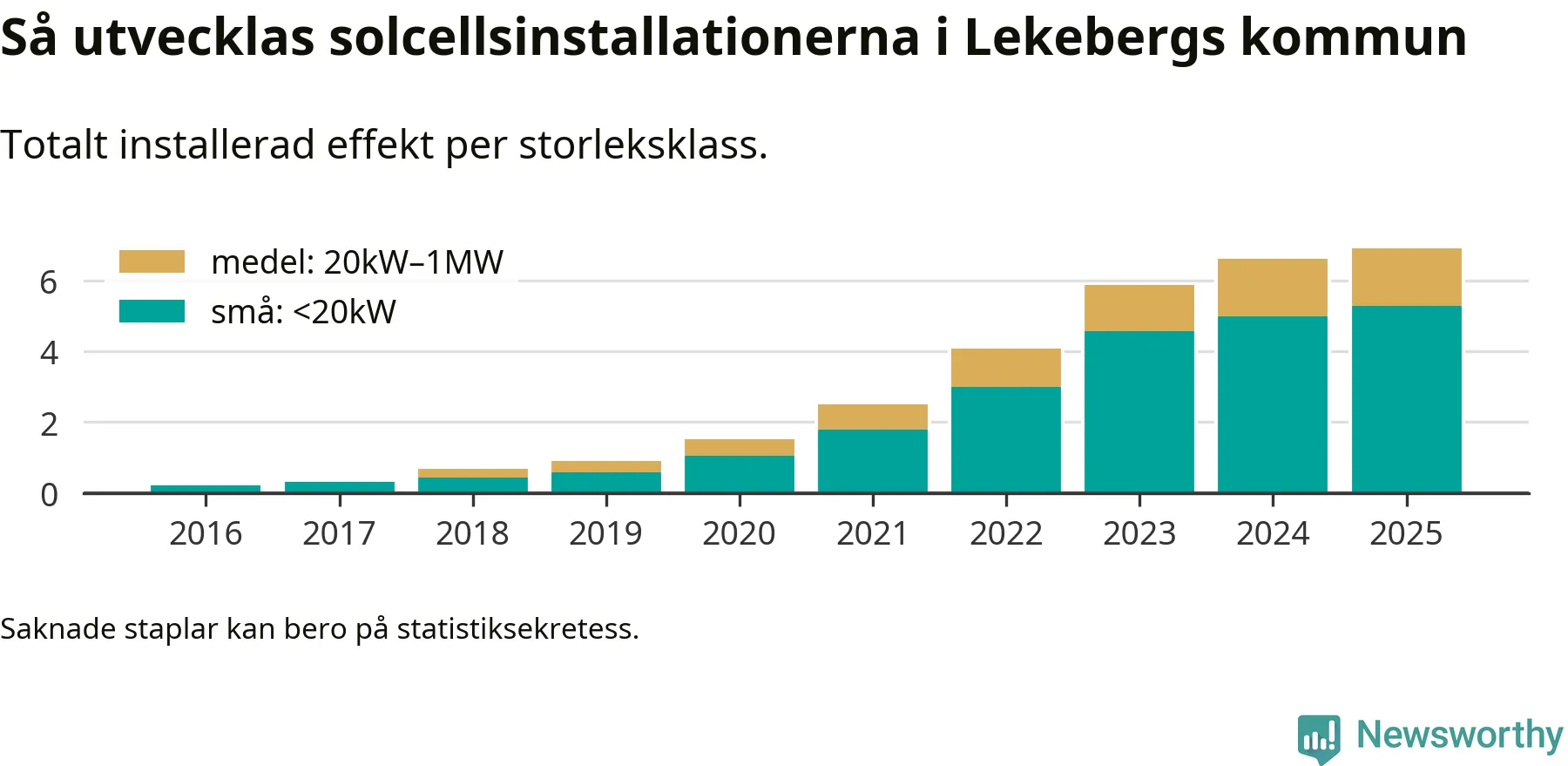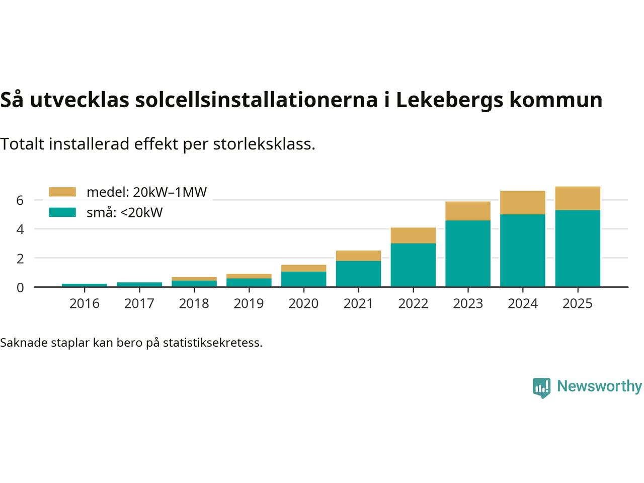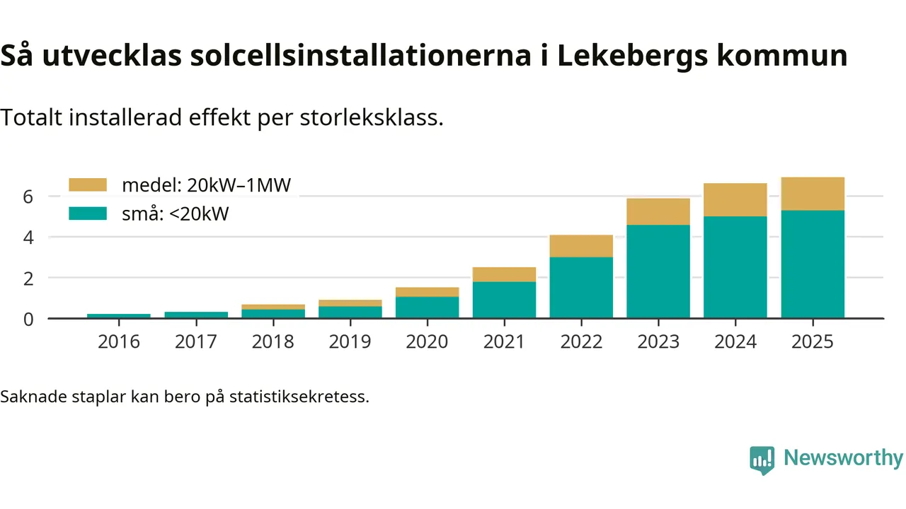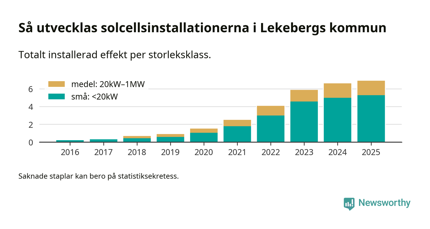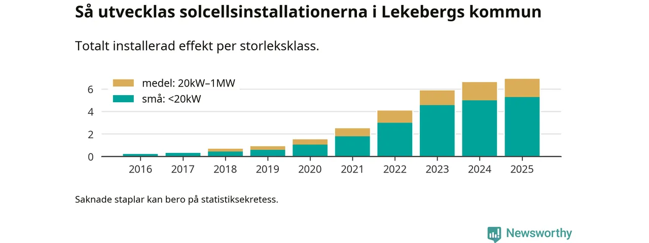 Under 2025 anslöts 300 kilowatt ny solel till elnätet i Lekebergs kommun, en ökning med 5 procent jämfört med året innan.
