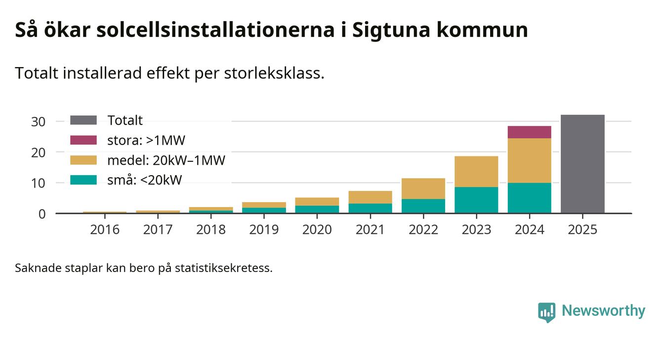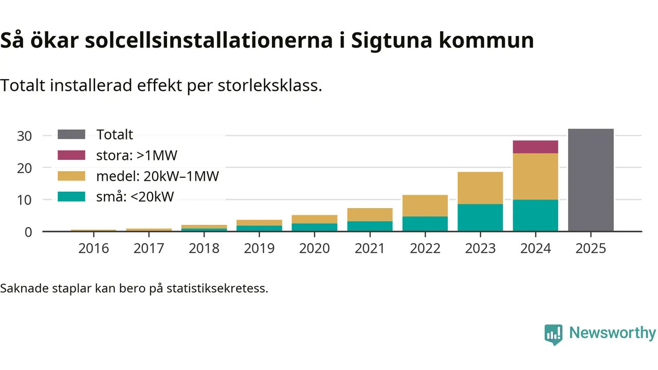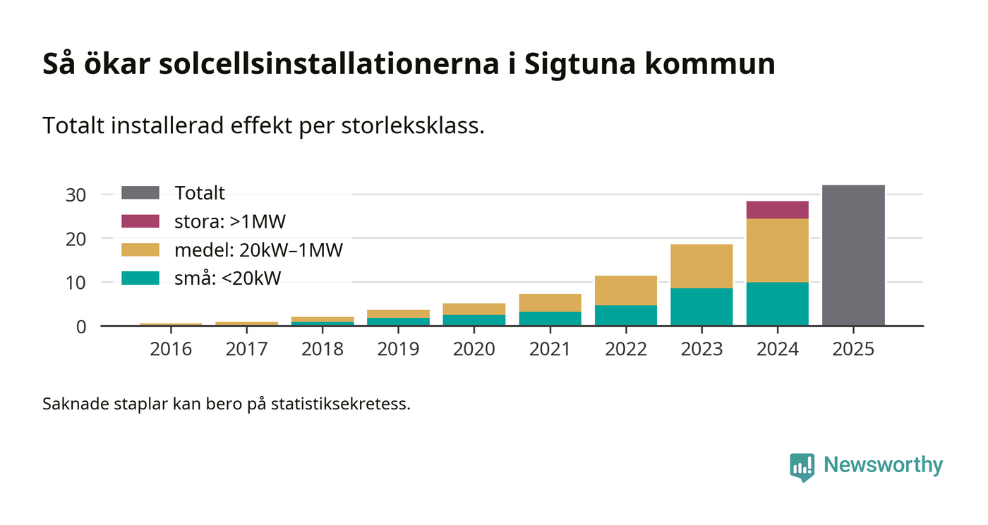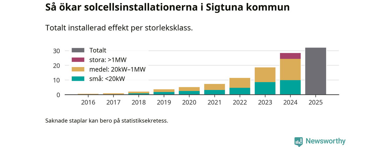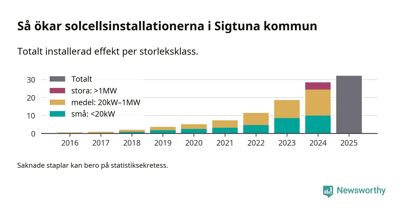 Under 2025 anslöts 3,7 megawatt ny solel till elnätet i Sigtuna kommun, en ökning med 13 procent jämfört med året innan.