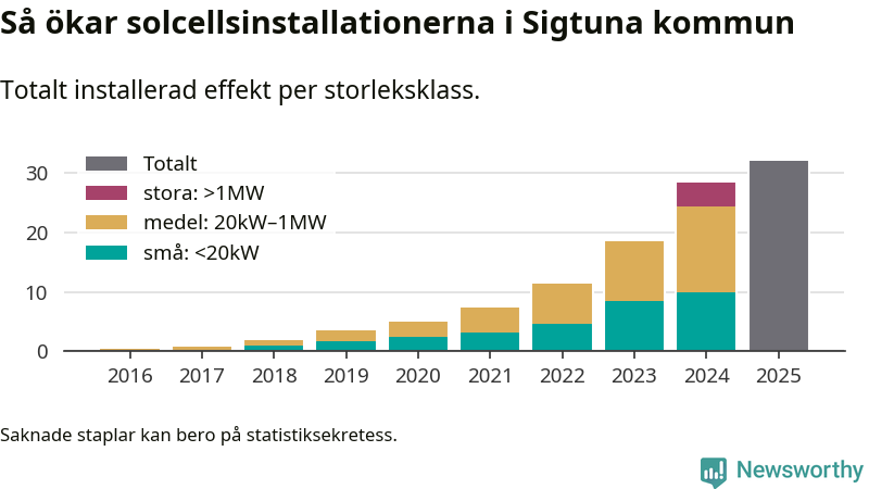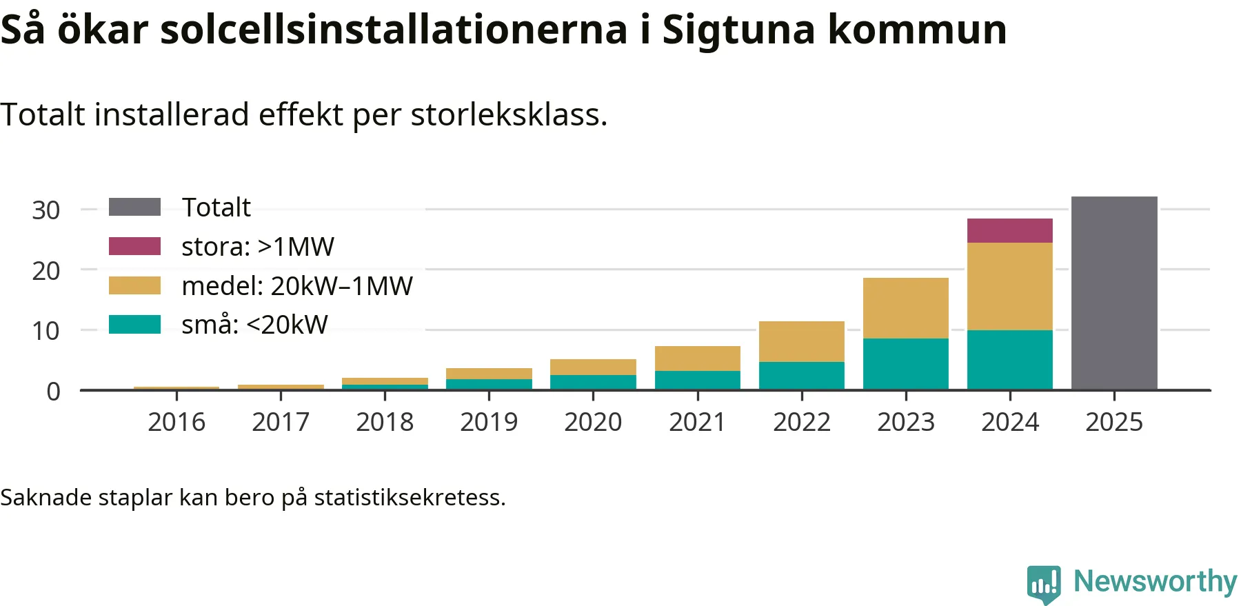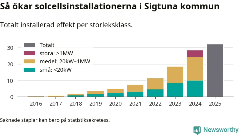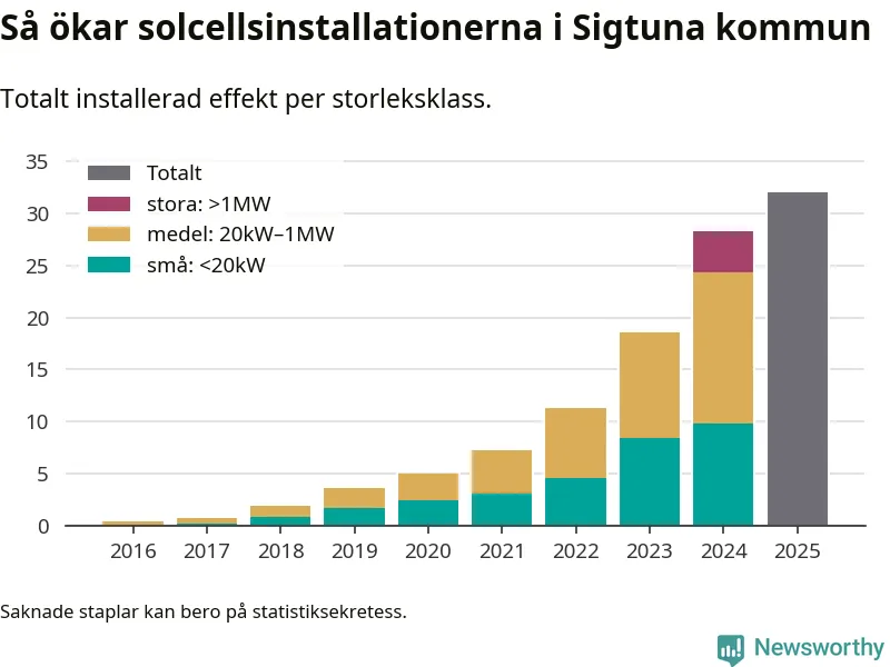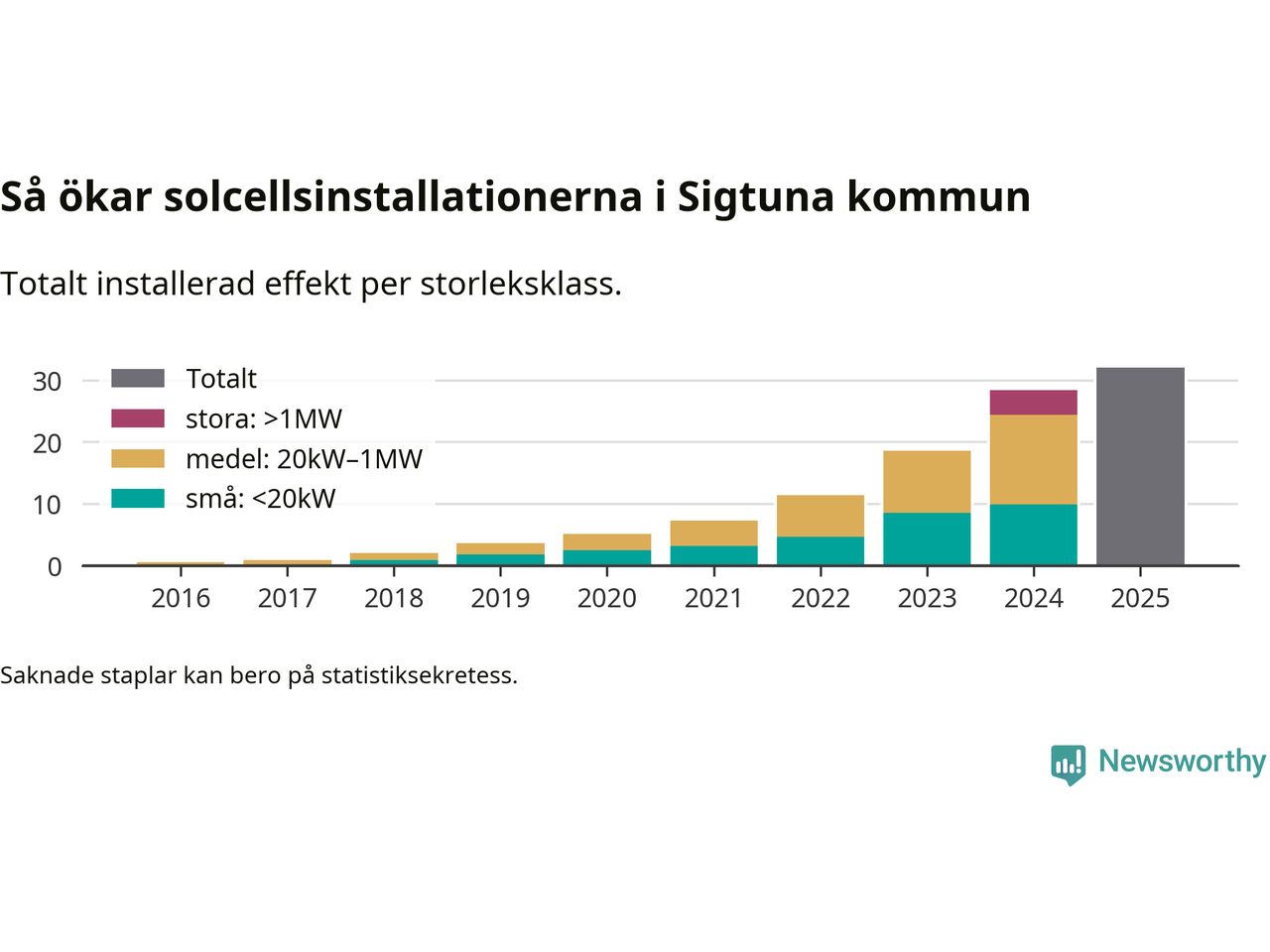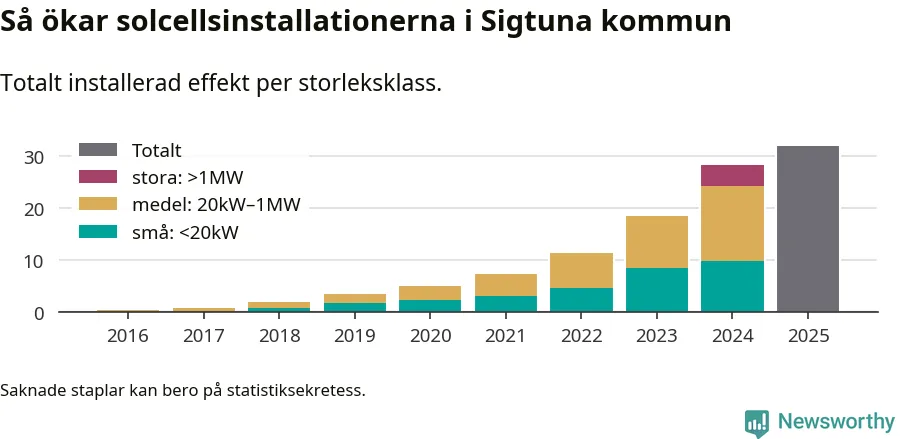 Under 2025 anslöts 3,7 megawatt ny solel till elnätet i Sigtuna kommun, en ökning med 13 procent jämfört med året innan.