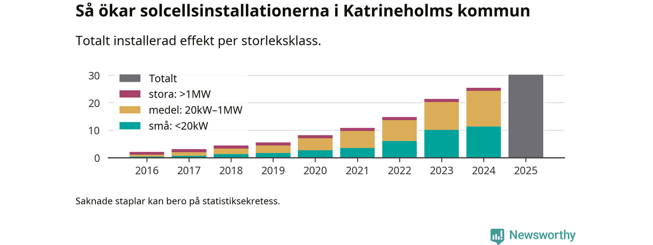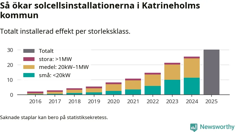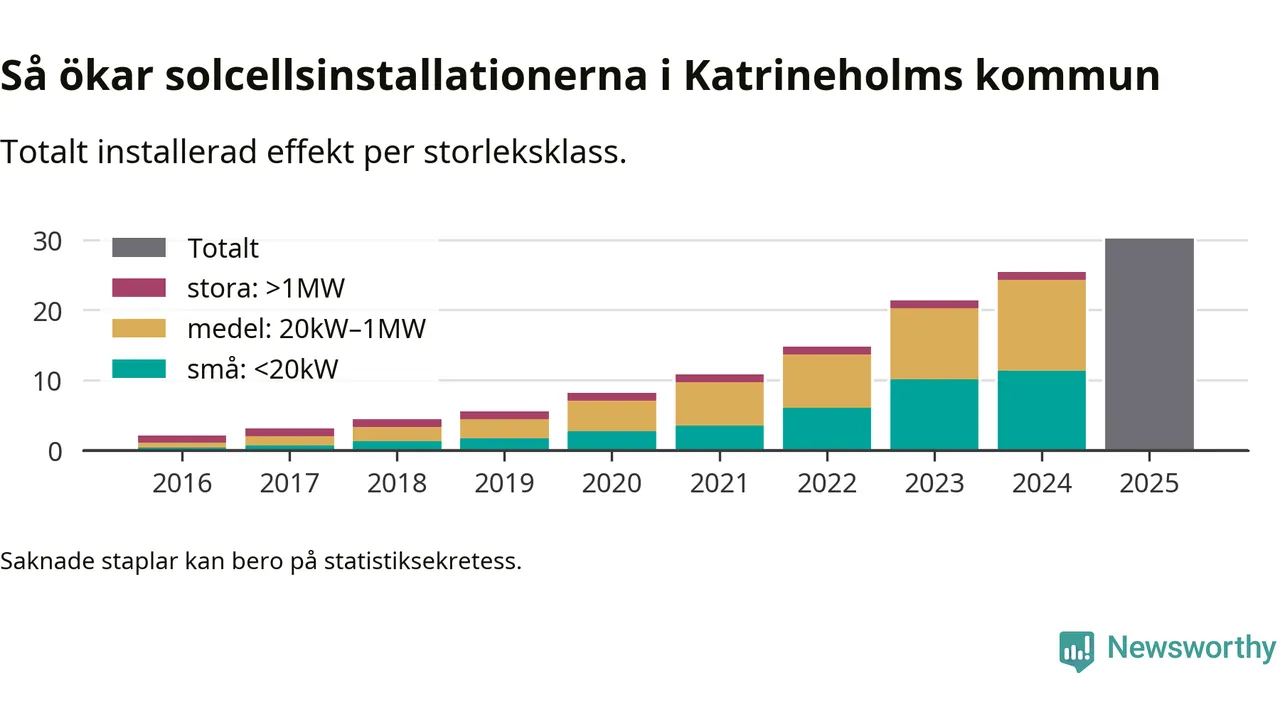 Under 2025 anslöts 4,8 megawatt ny solel till elnätet i Katrineholms kommun, en ökning med 19 procent jämfört med året innan.