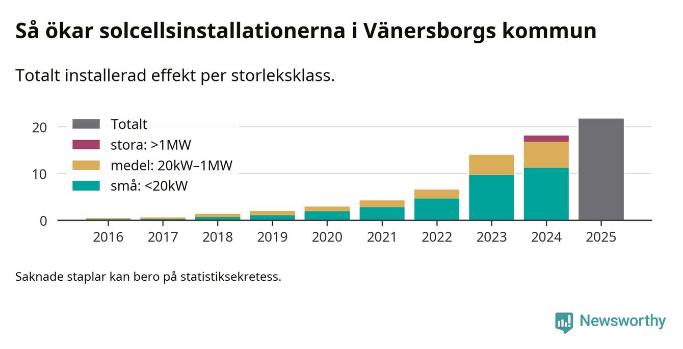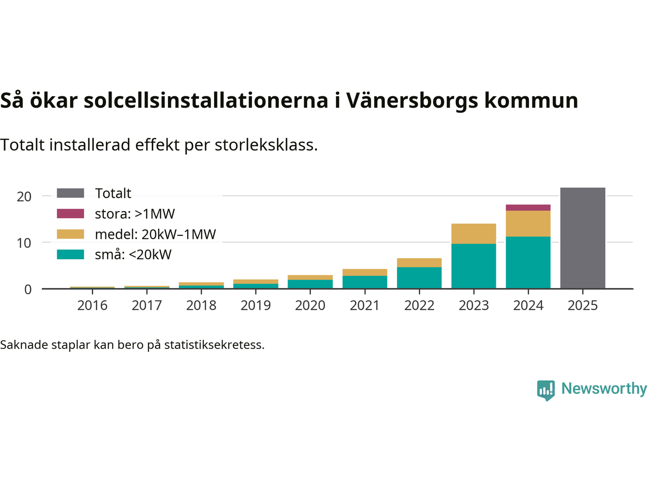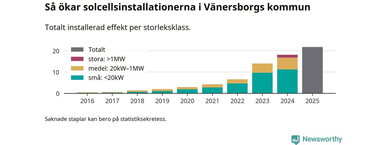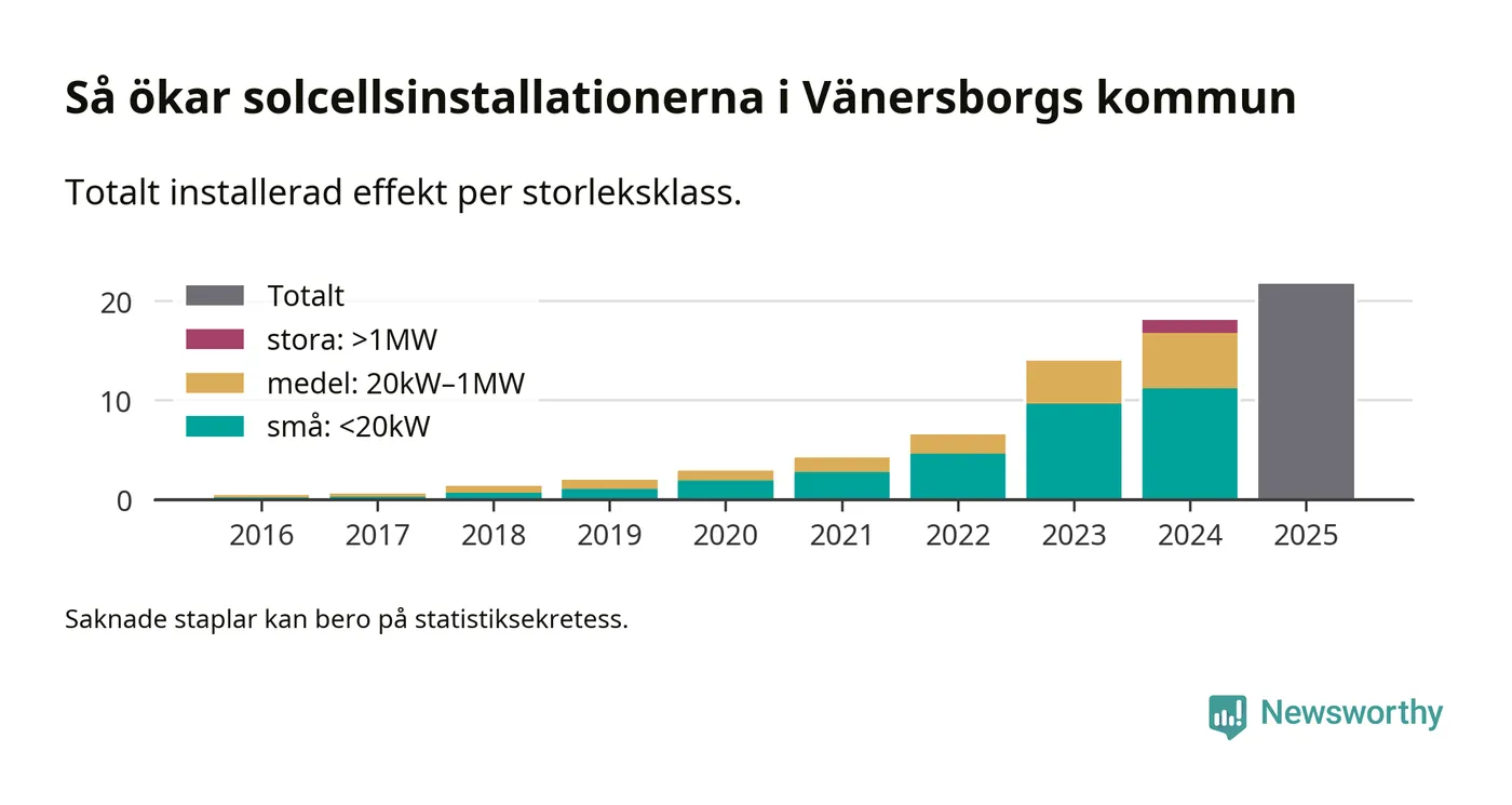 Under 2025 anslöts 3,7 megawatt ny solel till elnätet i Vänersborgs kommun, en ökning med 20 procent jämfört med året innan.