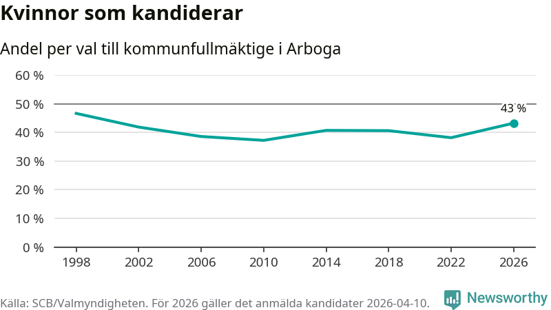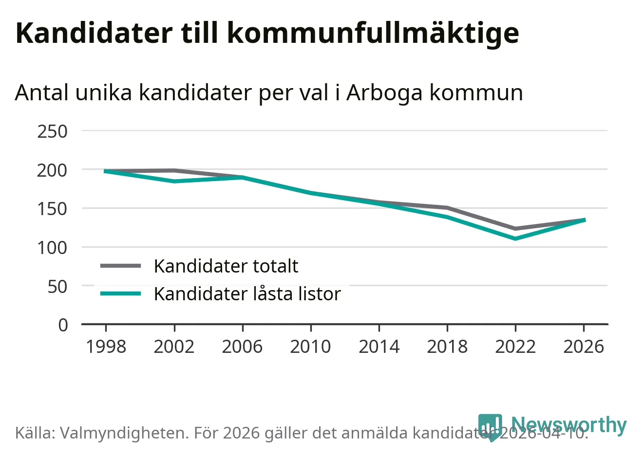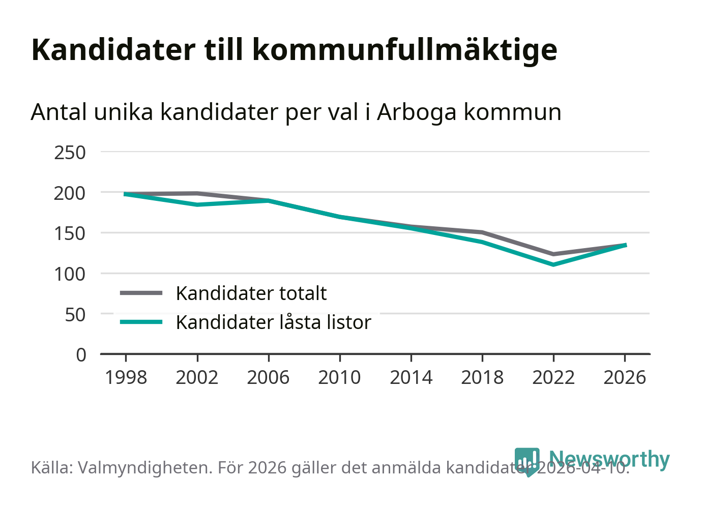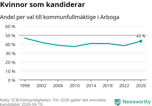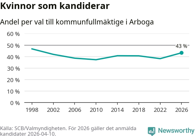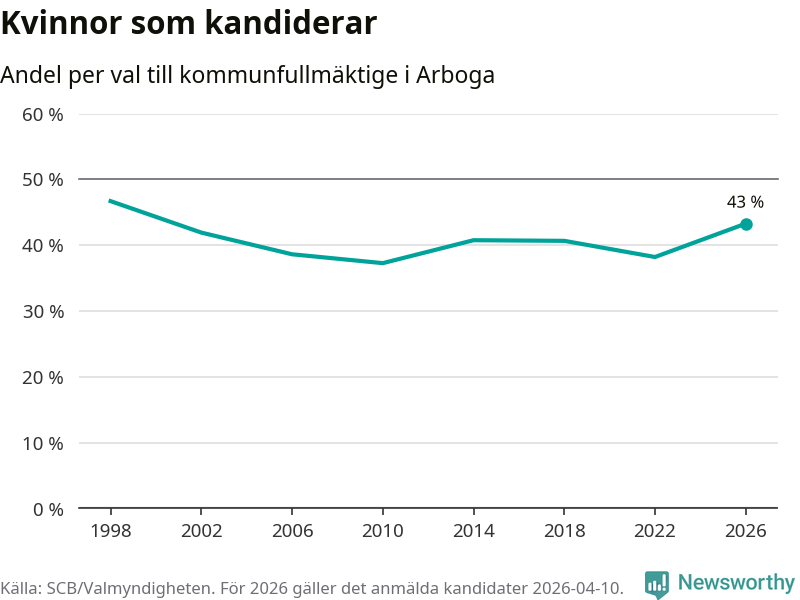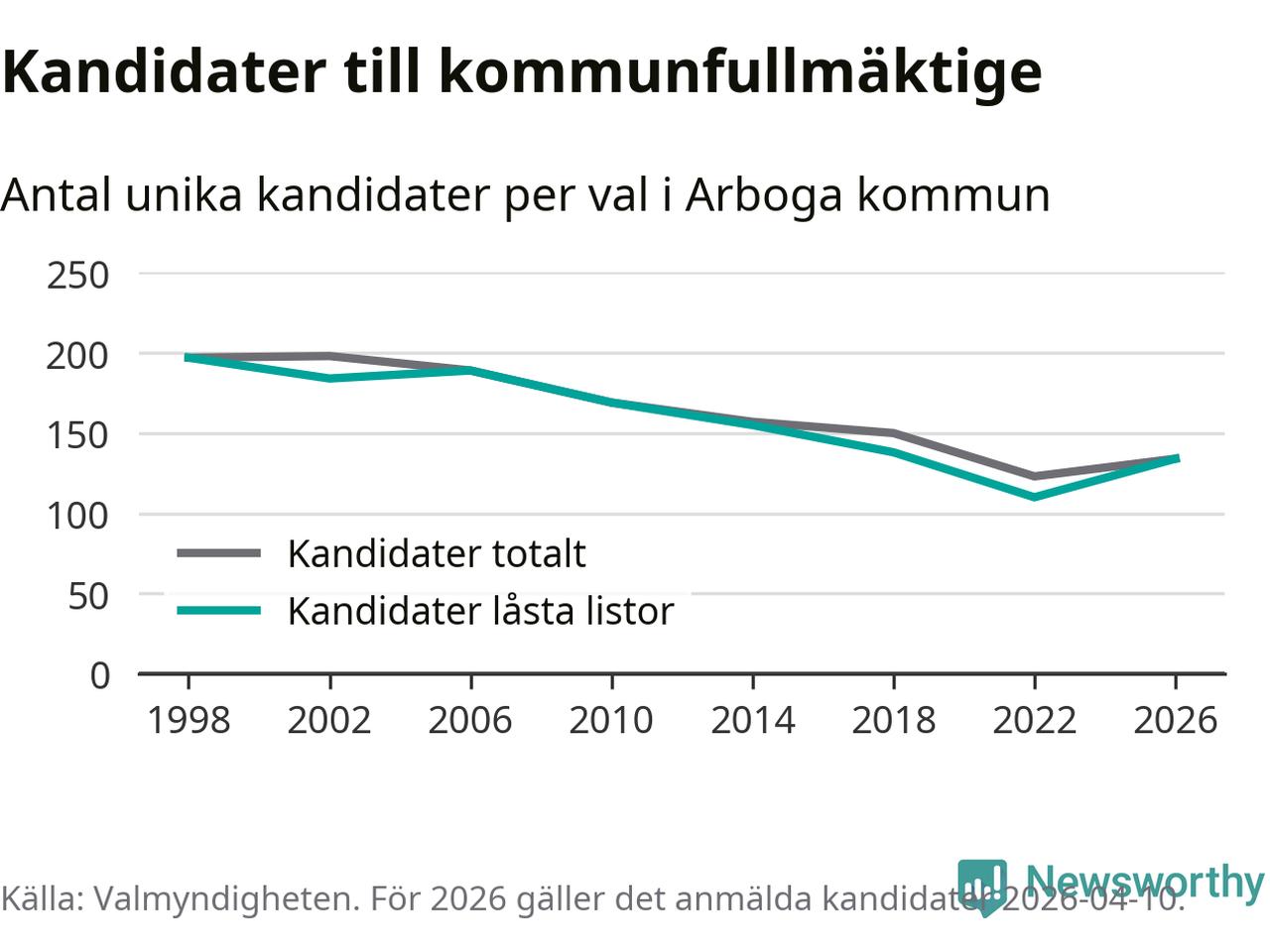 På torsdagen var det deadline för partier med låsta listor att registrera sina kandidater inför höstens val. Till valet till kommunfullmäktige i Arboga är 134 kandidater anmälda på sådana listor, vilket är 24 fler än i valet 2022.