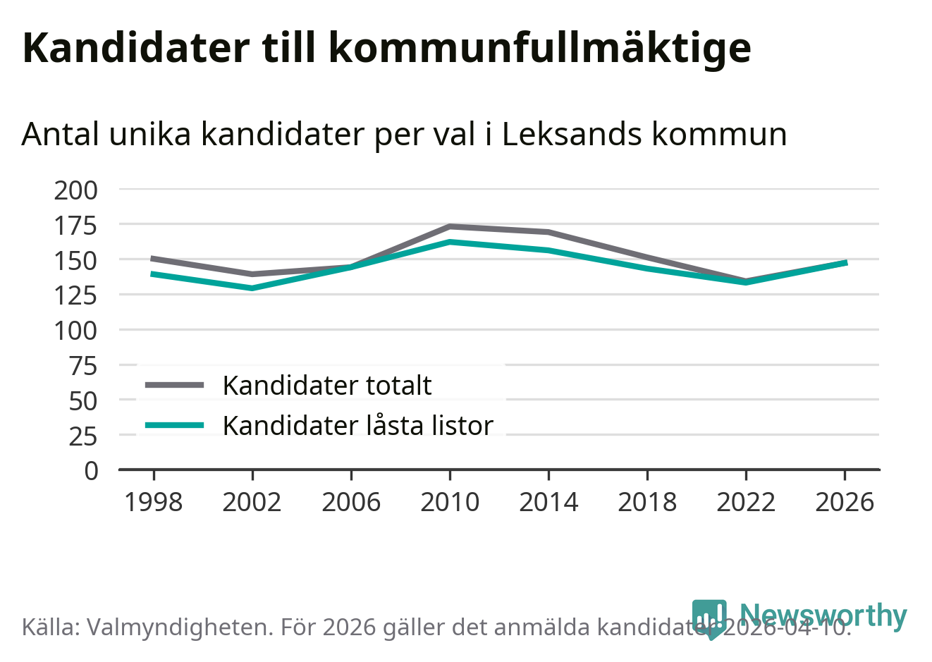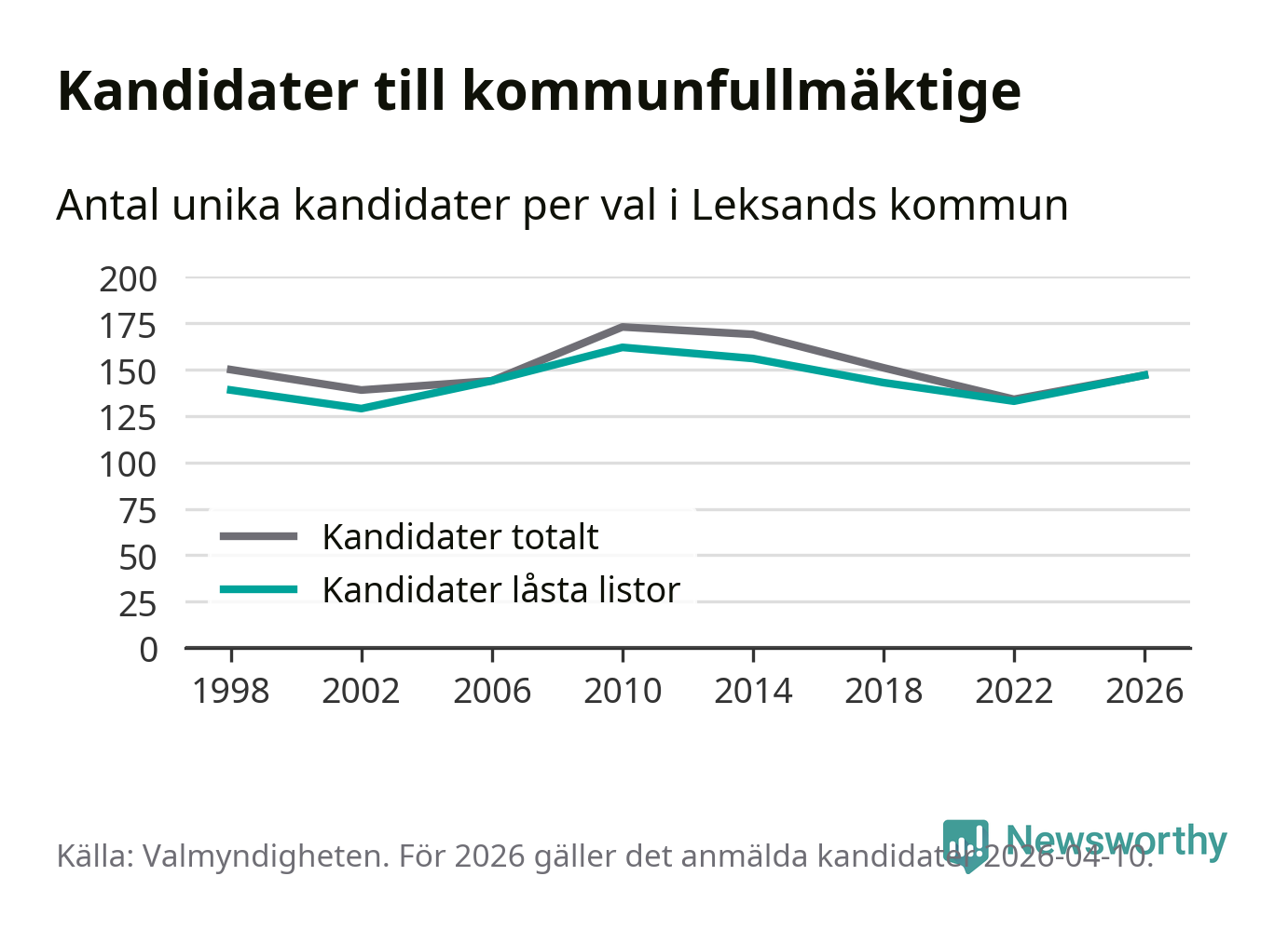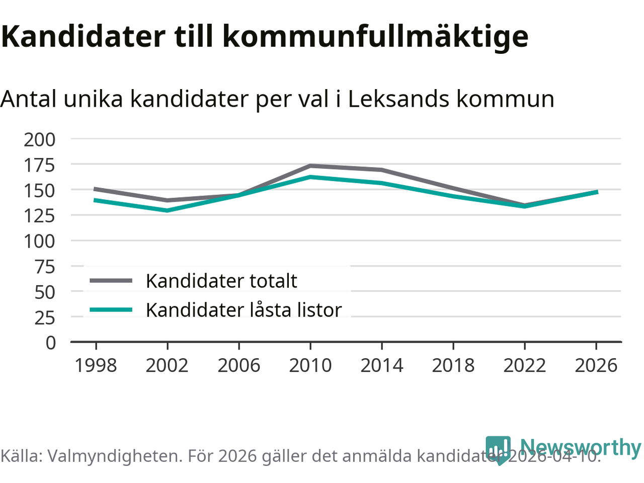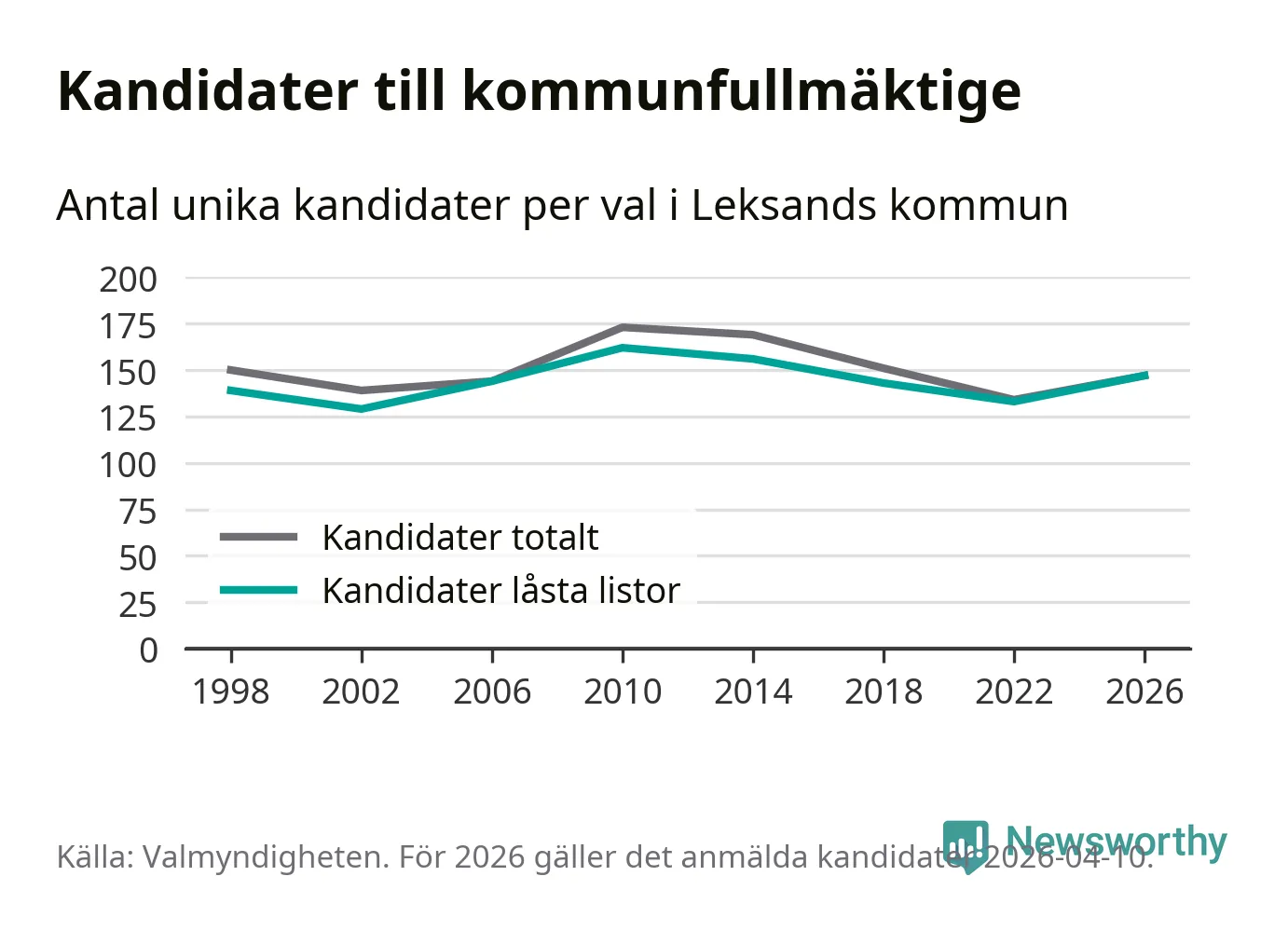 På torsdagen var det deadline för partier med låsta listor att registrera sina kandidater inför höstens val. Till valet till kommunfullmäktige i Leksand är 147 kandidater anmälda på sådana listor, vilket är 14 fler än i valet 2022.
