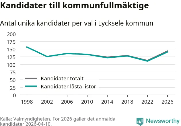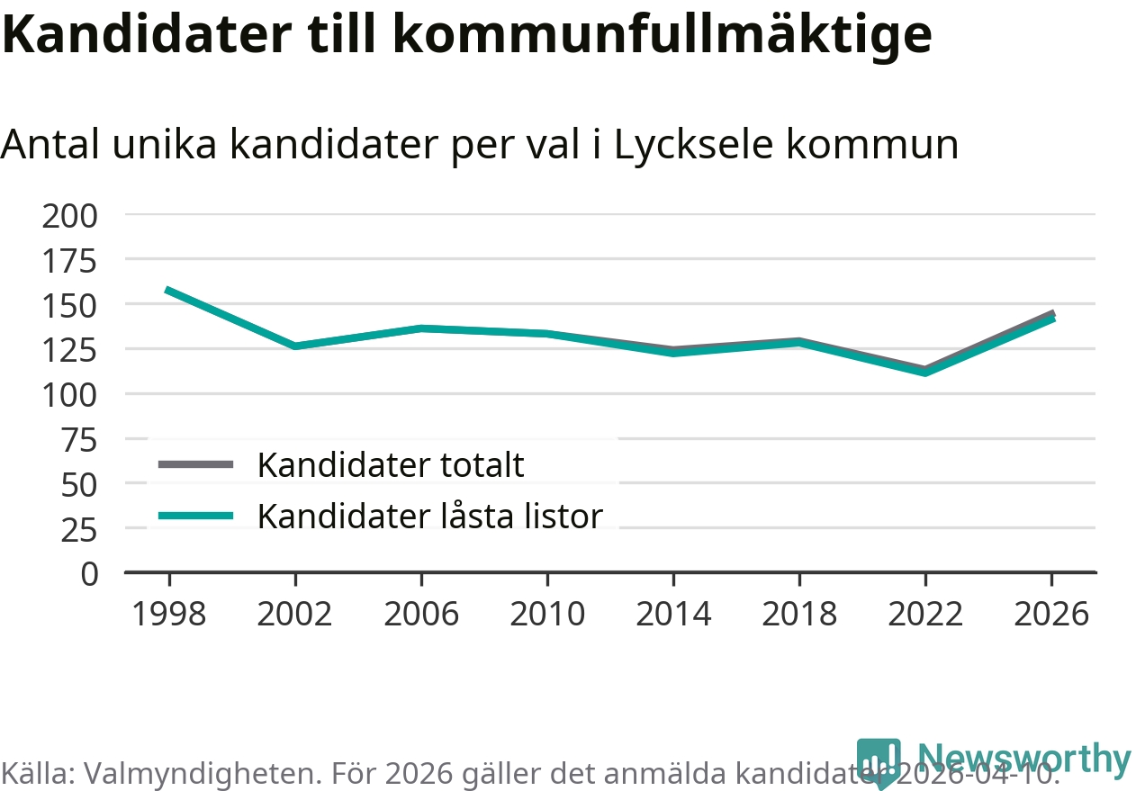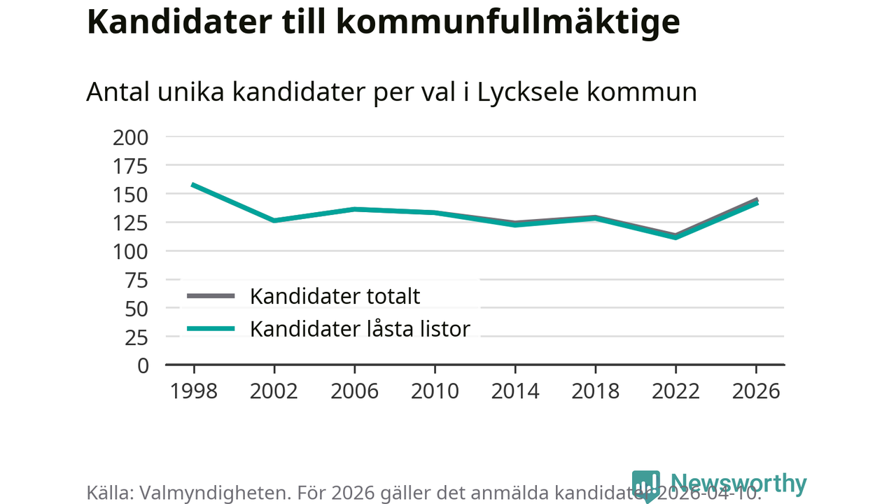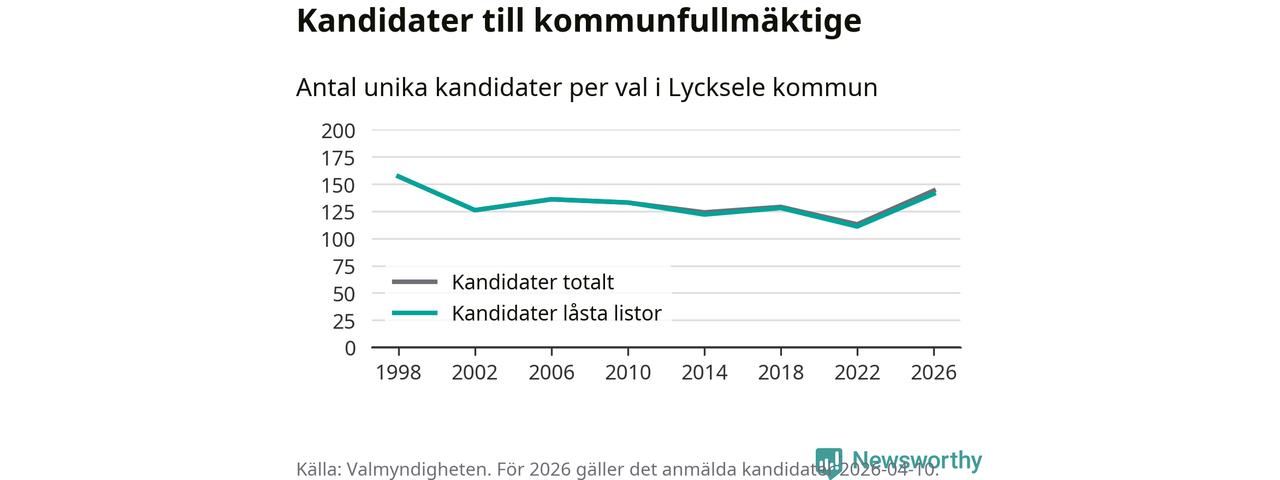 På torsdagen var det deadline för partier med låsta listor att registrera sina kandidater inför höstens val. Till valet till kommunfullmäktige i Lycksele är 141 kandidater anmälda på sådana listor, vilket är 30 fler än i valet 2022.