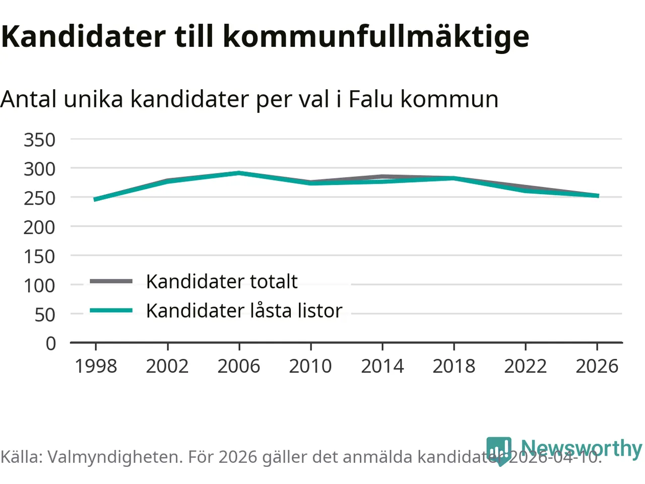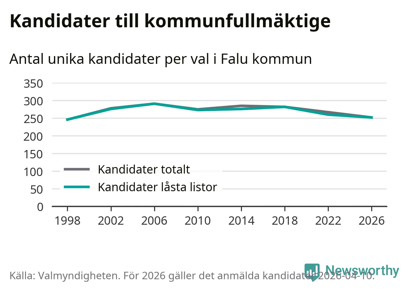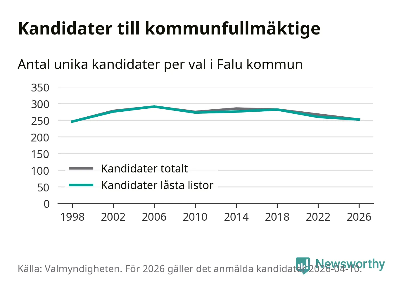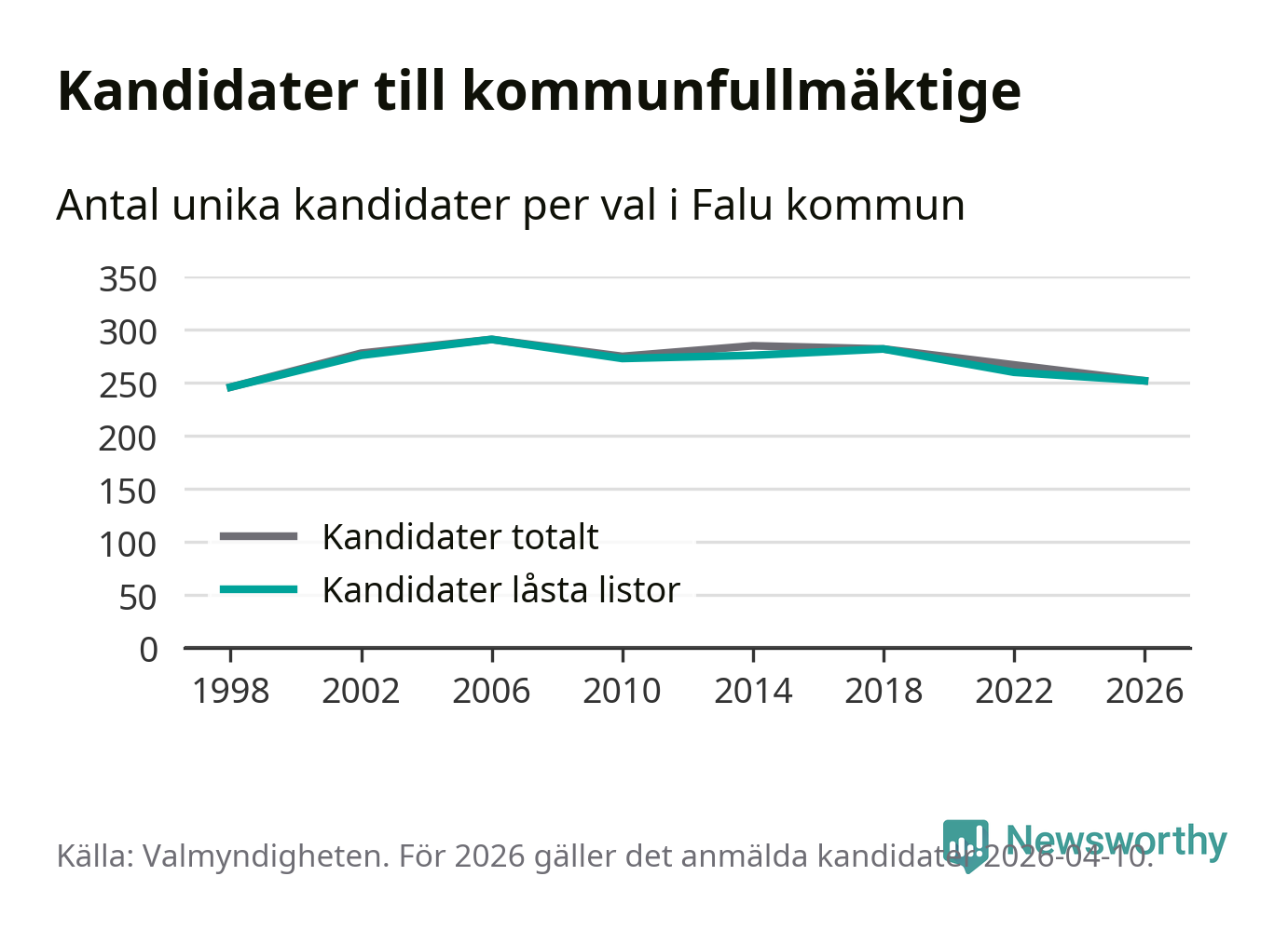 På torsdagen var det deadline för partier med låsta listor att registrera sina kandidater inför höstens val. Till valet till kommunfullmäktige i Falun är 252 kandidater anmälda på sådana listor, vilket är åtta färre än i valet 2022.