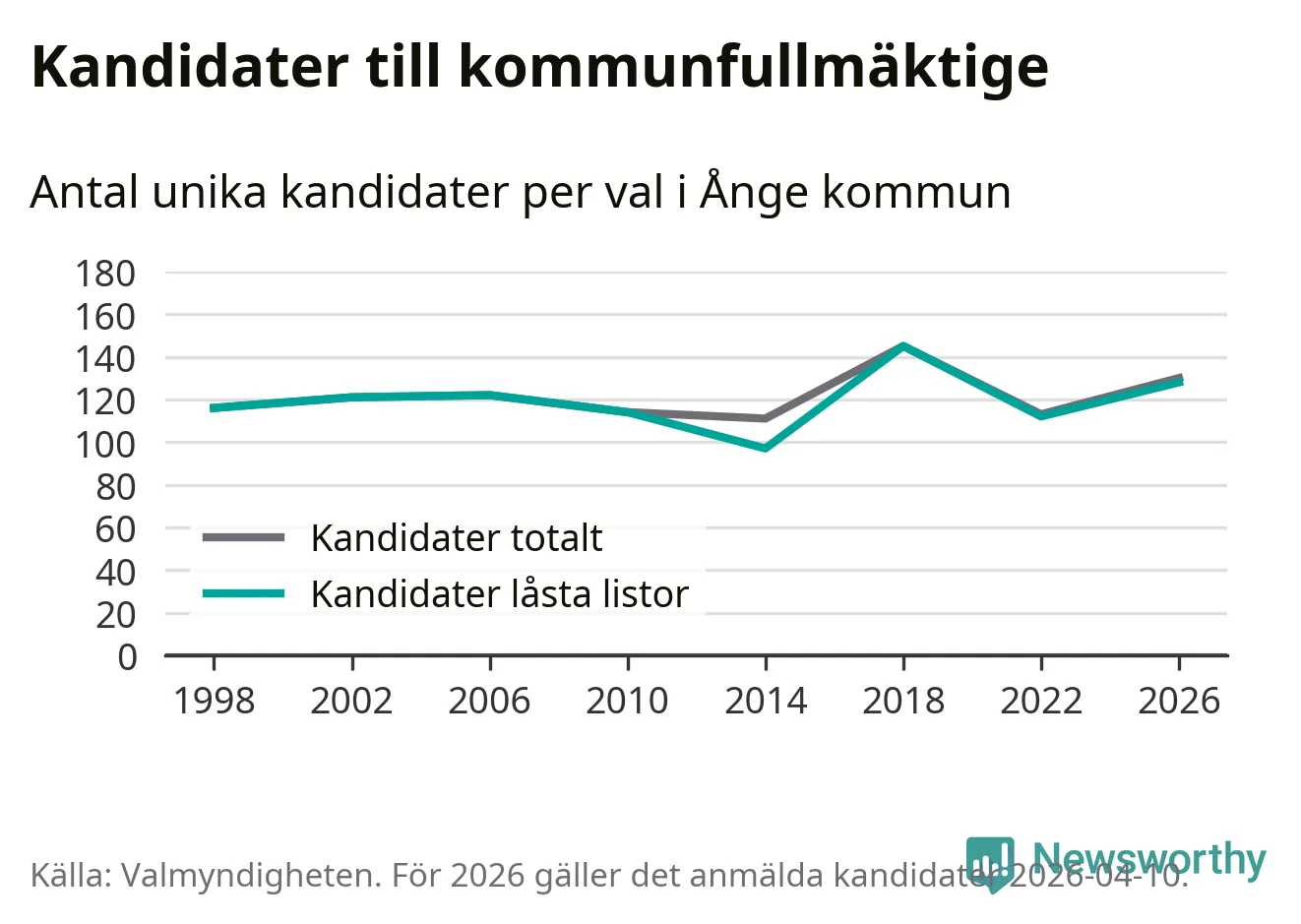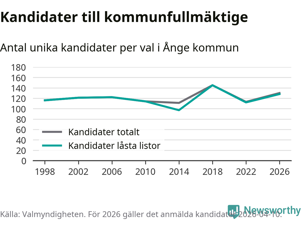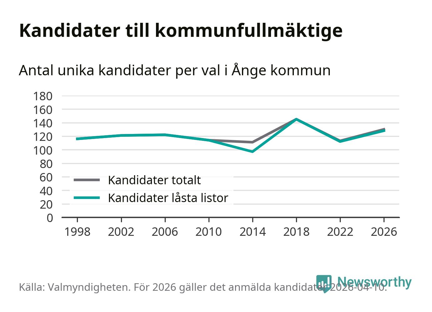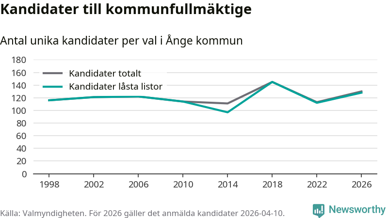 På torsdagen var det deadline för partier med låsta listor att registrera sina kandidater inför höstens val. Till valet till kommunfullmäktige i Ånge är 128 kandidater anmälda på sådana listor, vilket är 16 fler än i valet 2022.