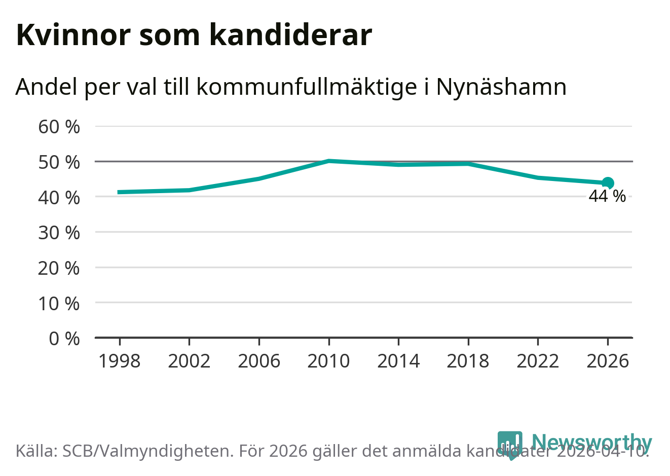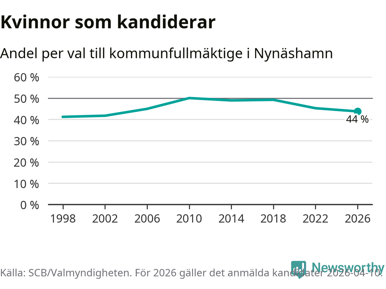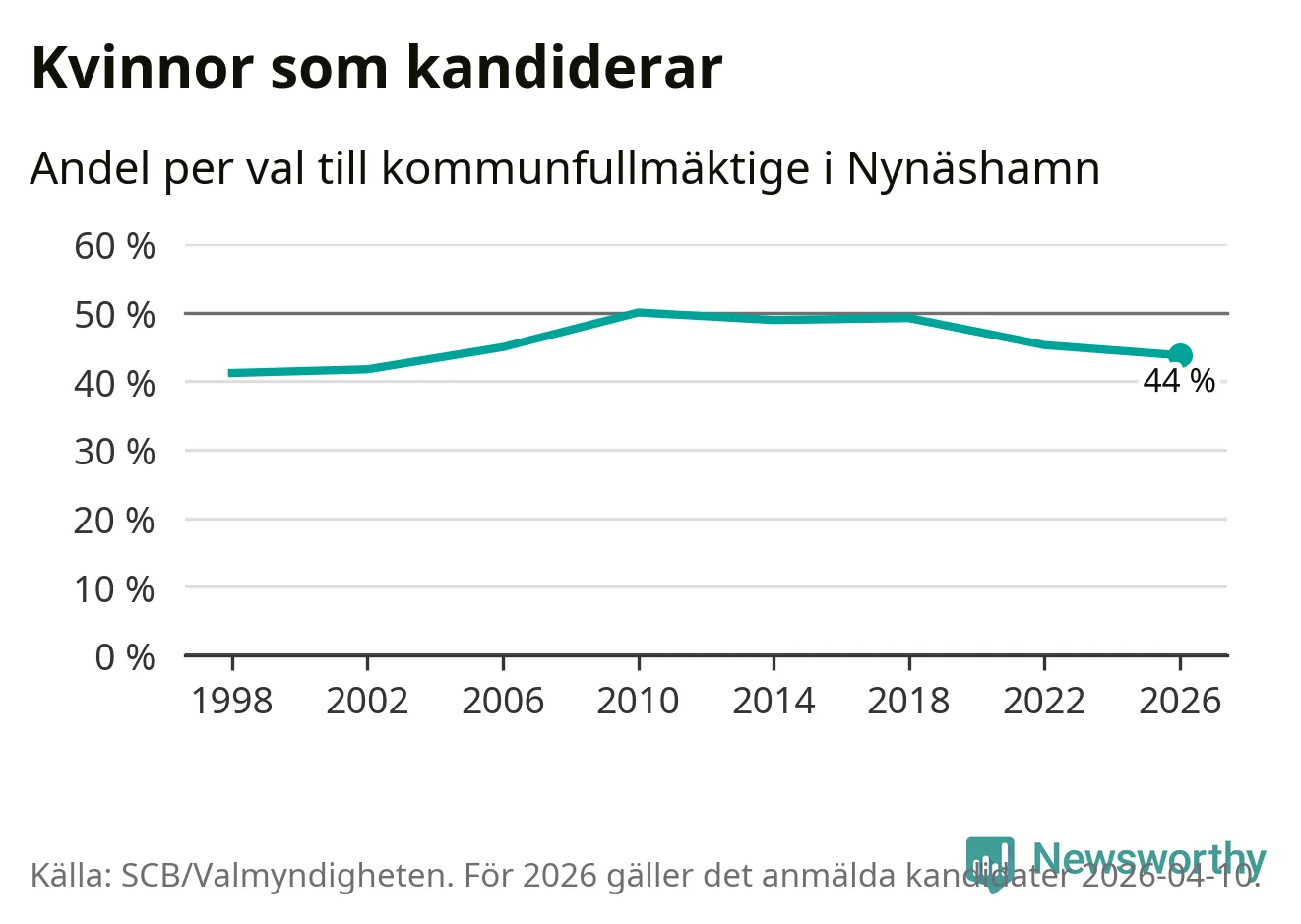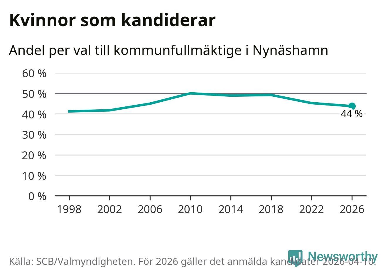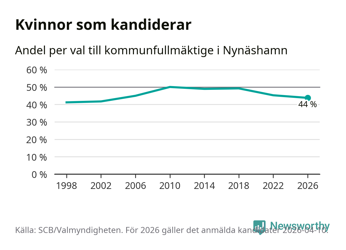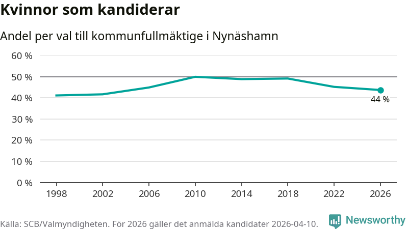 På torsdagen var det deadline för partier med låsta listor att registrera sina kandidater inför höstens val. Till valet till kommunfullmäktige i Nynäshamn är 208 kandidater anmälda på sådana listor, vilket är 30 fler än i valet 2022. Det är den högsta siffran sedan åtminstone valet 1998, vilket är så långt tillbaka som vi har statistik för.