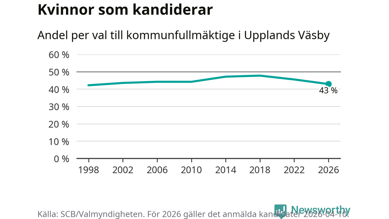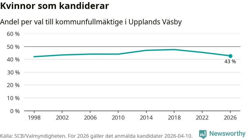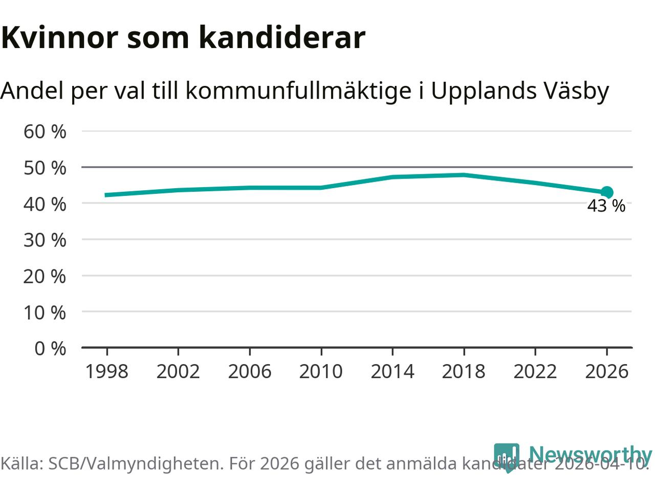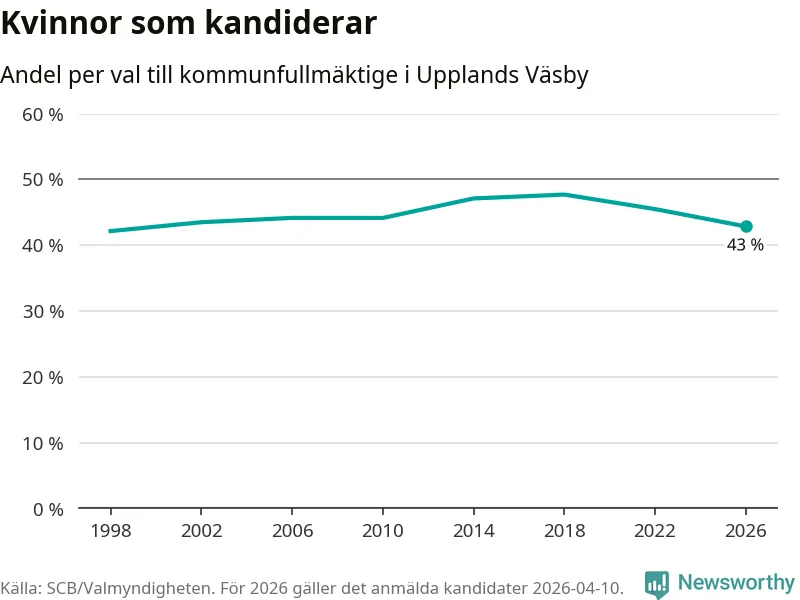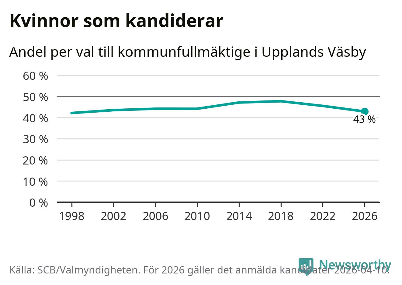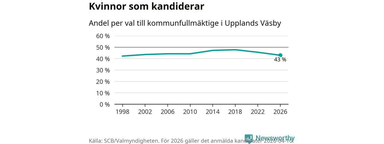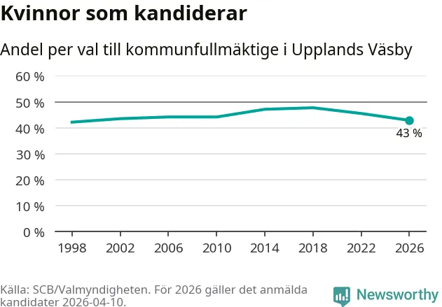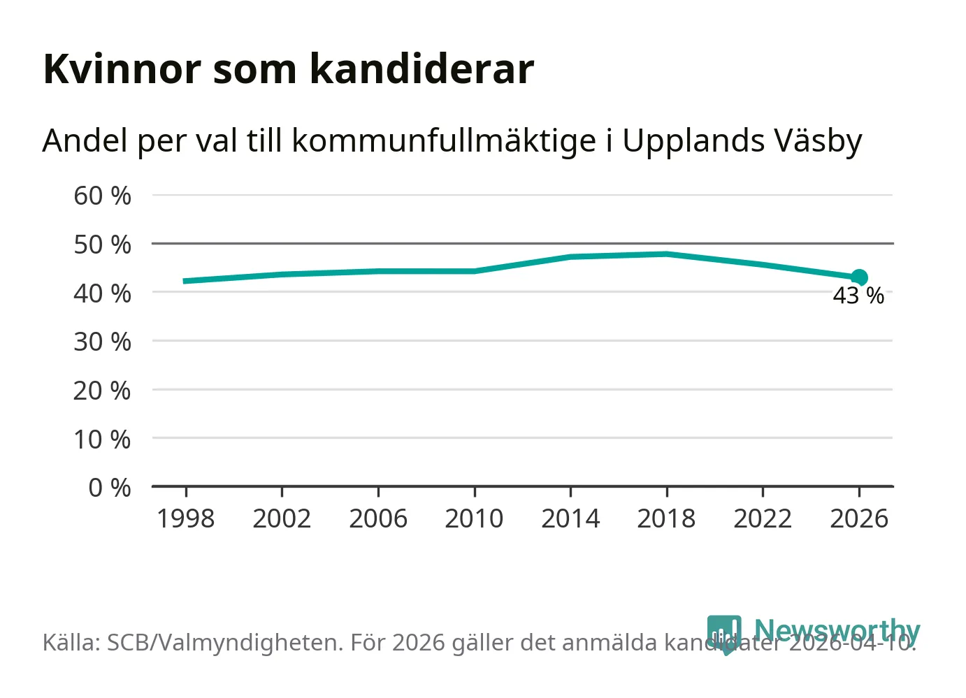 På torsdagen var det deadline för partier med låsta listor att registrera sina kandidater inför höstens val. Till valet till kommunfullmäktige i Upplands Väsby är 268 kandidater anmälda på sådana listor, vilket är 27 fler än i valet 2022. Det är den högsta siffran sedan åtminstone valet 1998, vilket är så långt tillbaka som vi har statistik för.