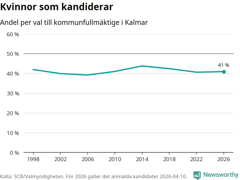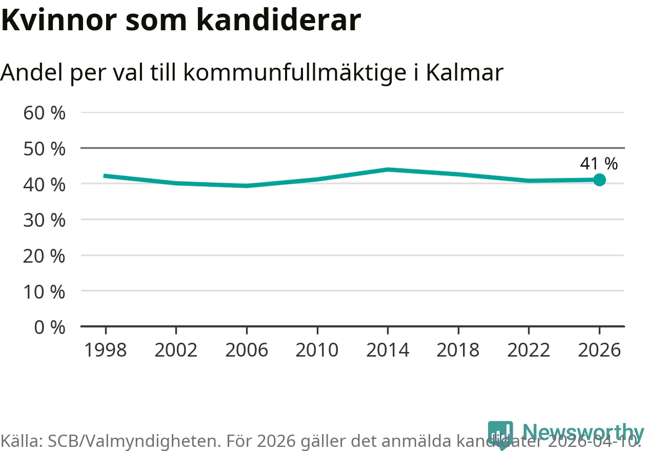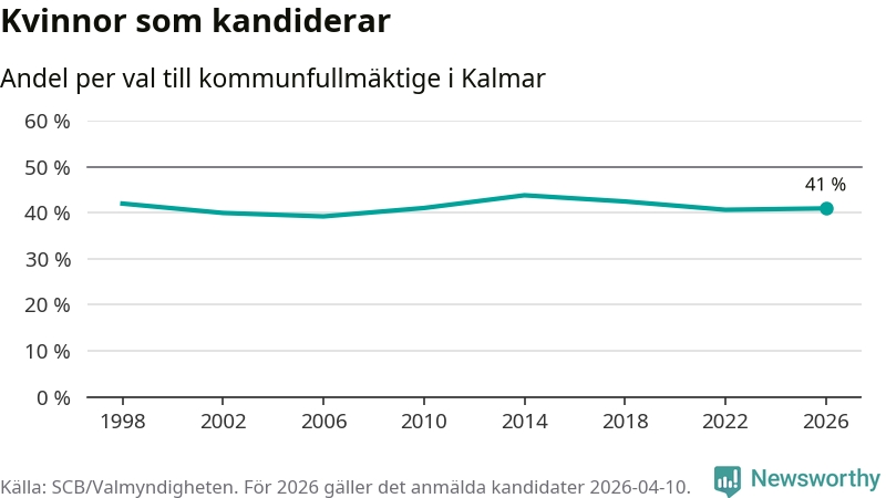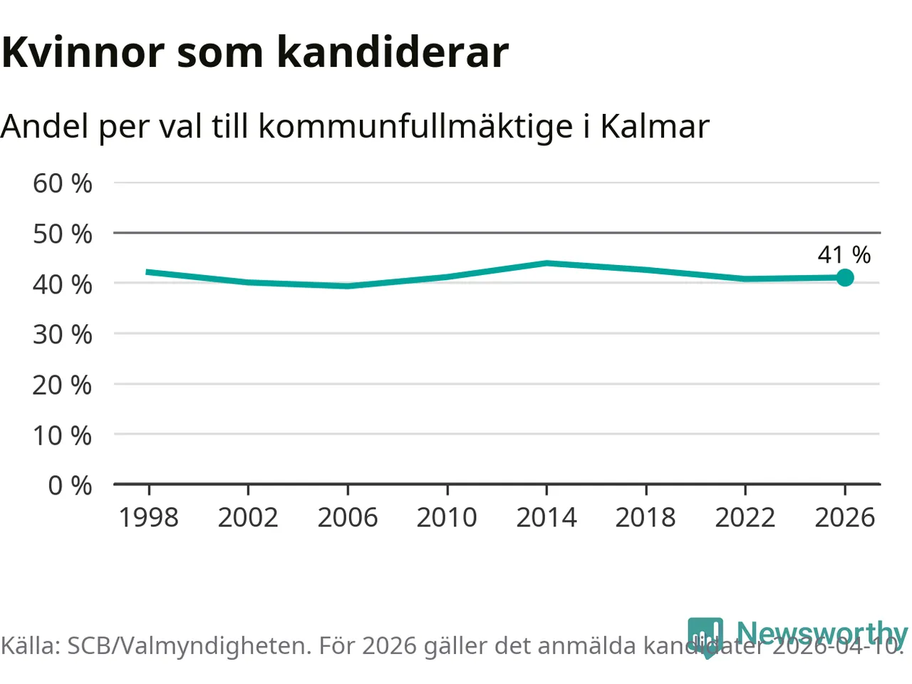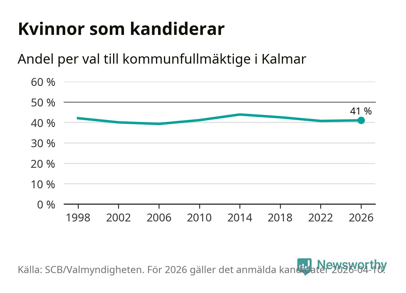 På torsdagen var det deadline för partier med låsta listor att registrera sina kandidater inför höstens val. Till valet till kommunfullmäktige i Kalmar kommun är 320 kandidater anmälda på sådana listor, vilket är elva fler än i valet 2022. Det är den högsta siffran sedan åtminstone valet 1998, vilket är så långt tillbaka som vi har statistik för.