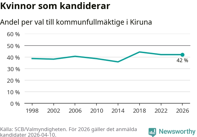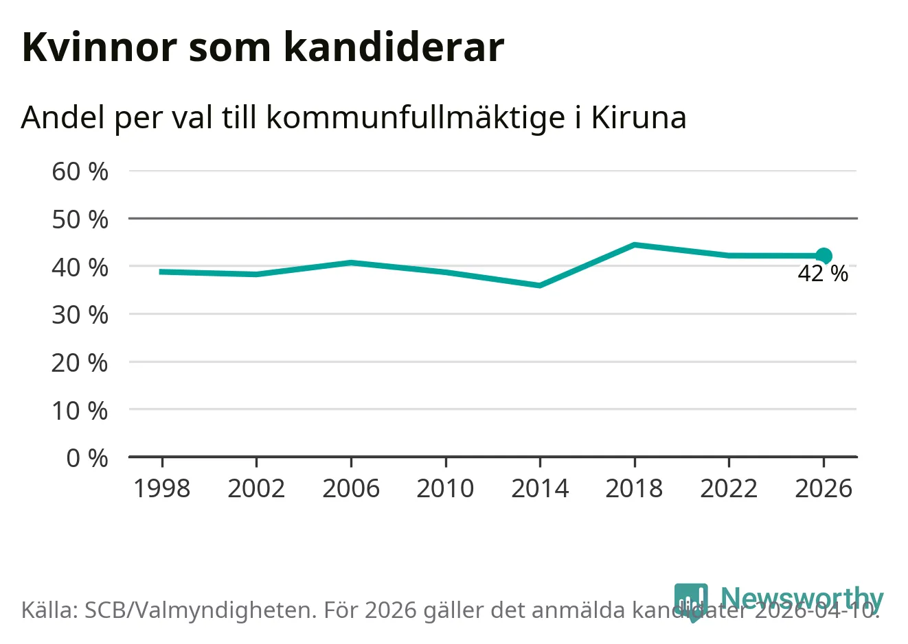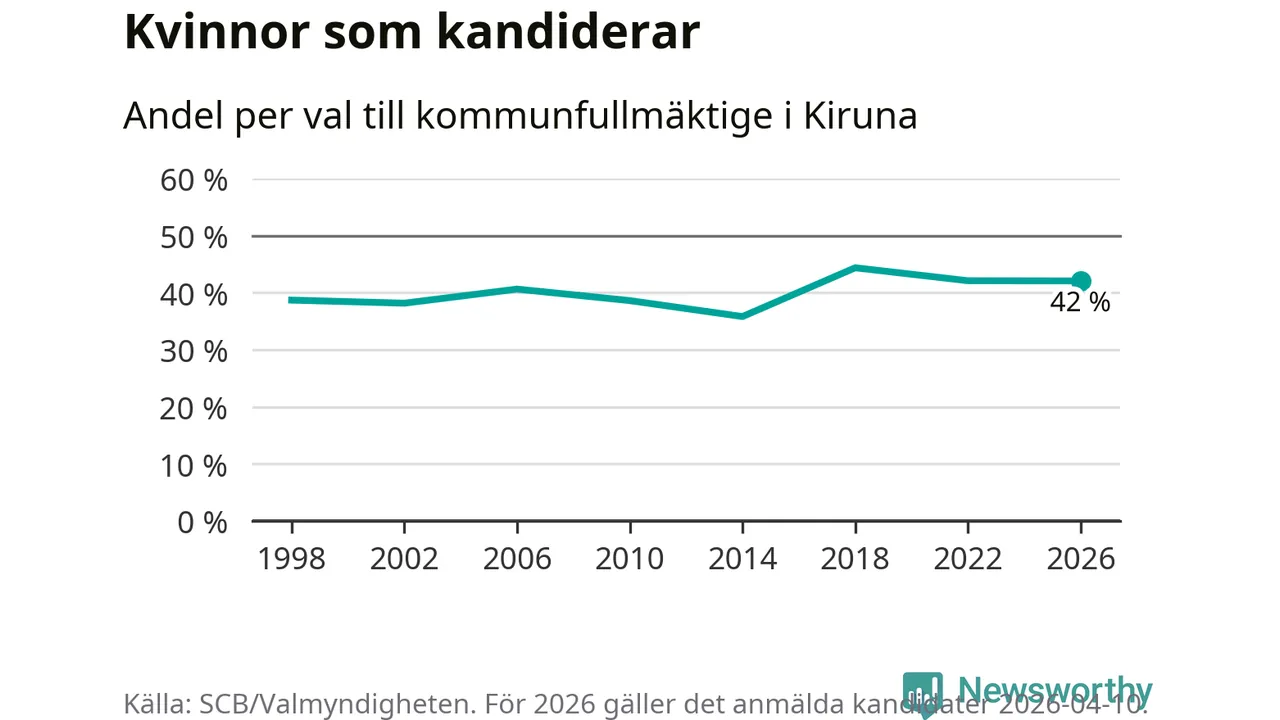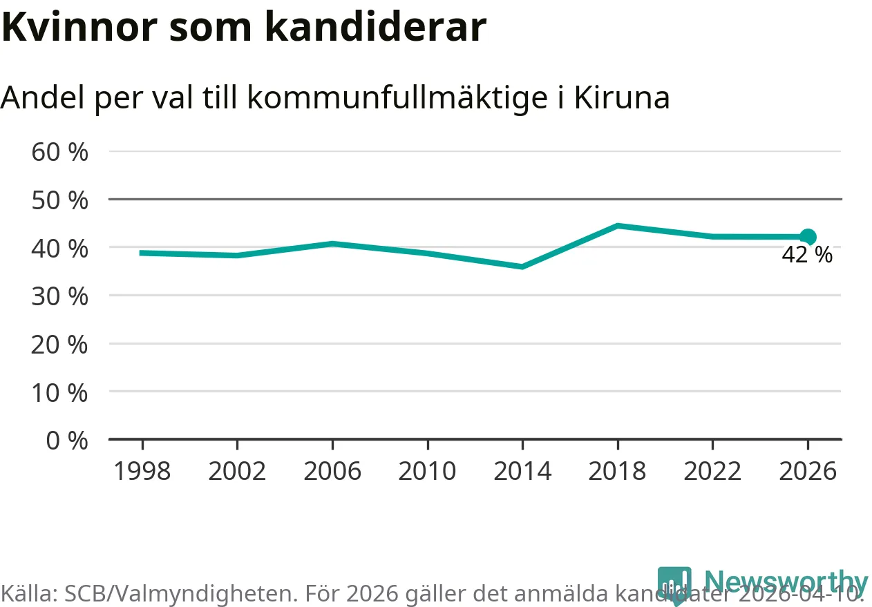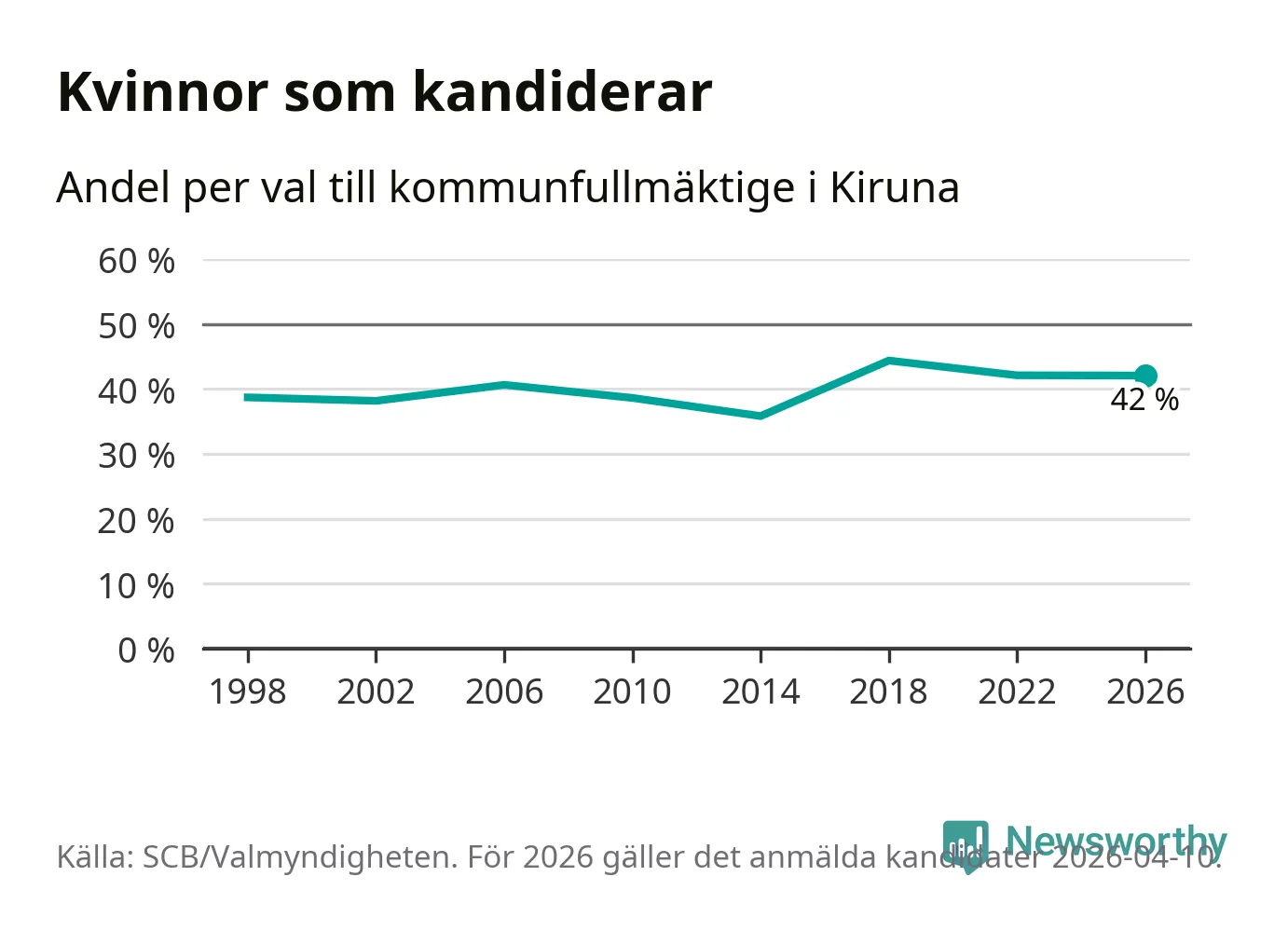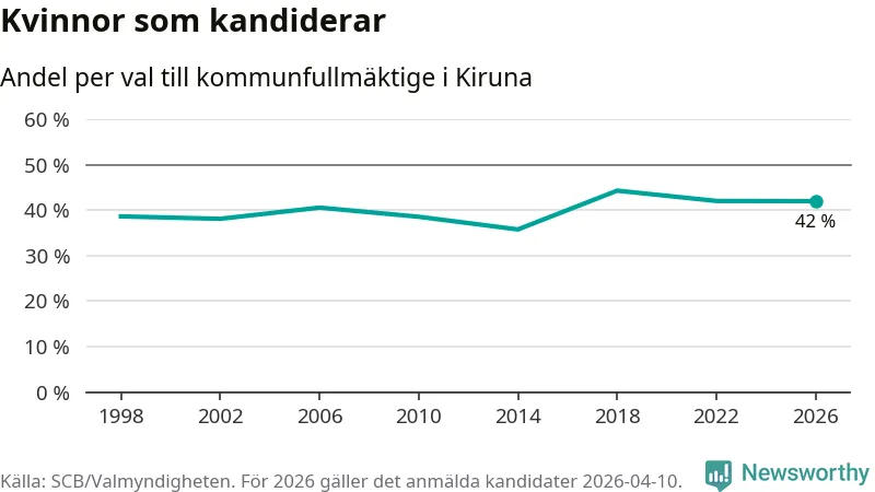 På torsdagen var det deadline för partier med låsta listor att registrera sina kandidater inför höstens val. Till valet till kommunfullmäktige i Kiruna är 139 kandidater anmälda på sådana listor, vilket är två färre än i valet 2022. Det är den lägsta siffran sedan åtminstone valet 1998, vilket är så långt tillbaka som vi har statistik för.