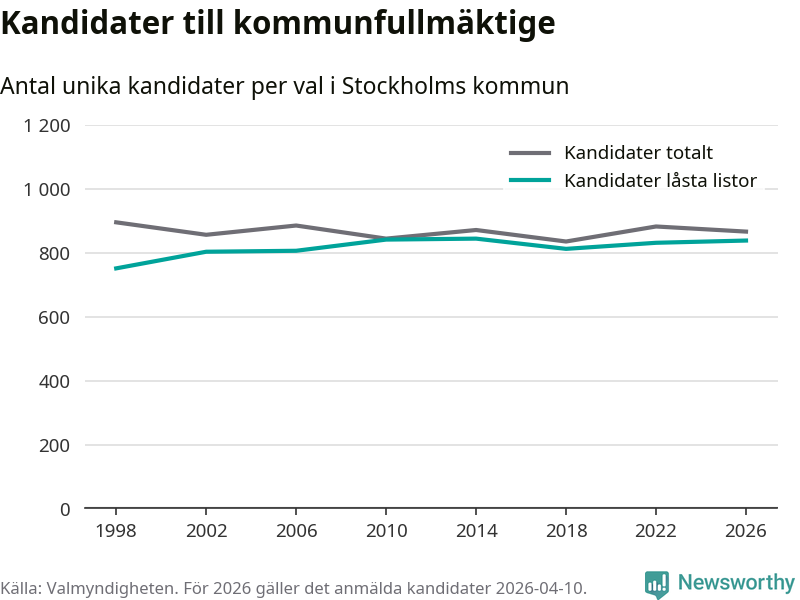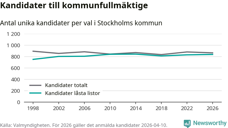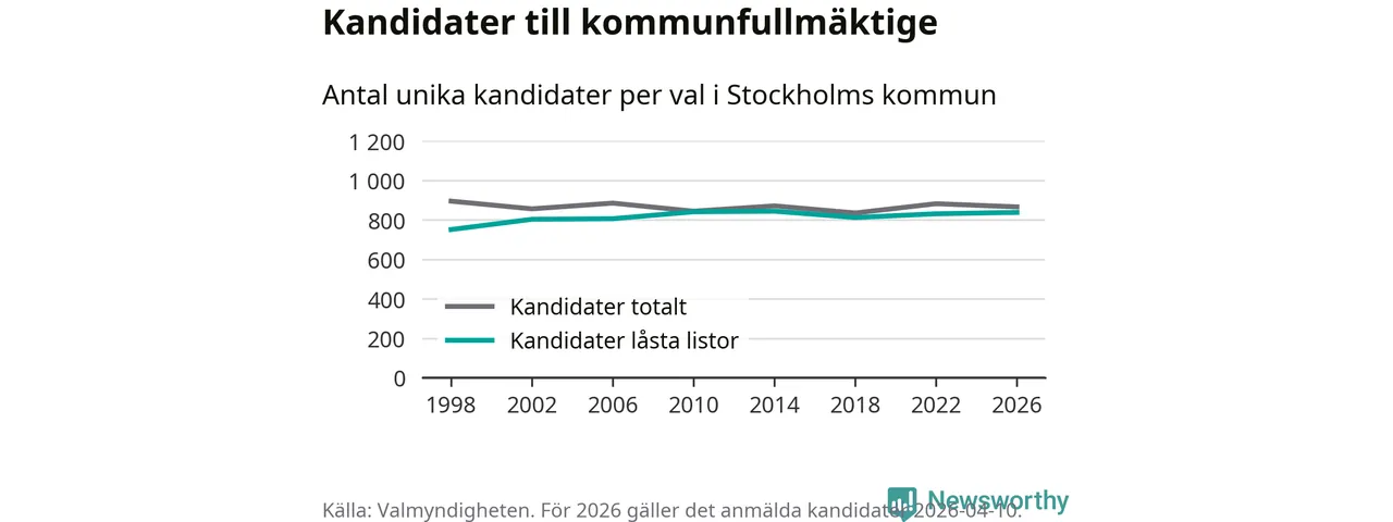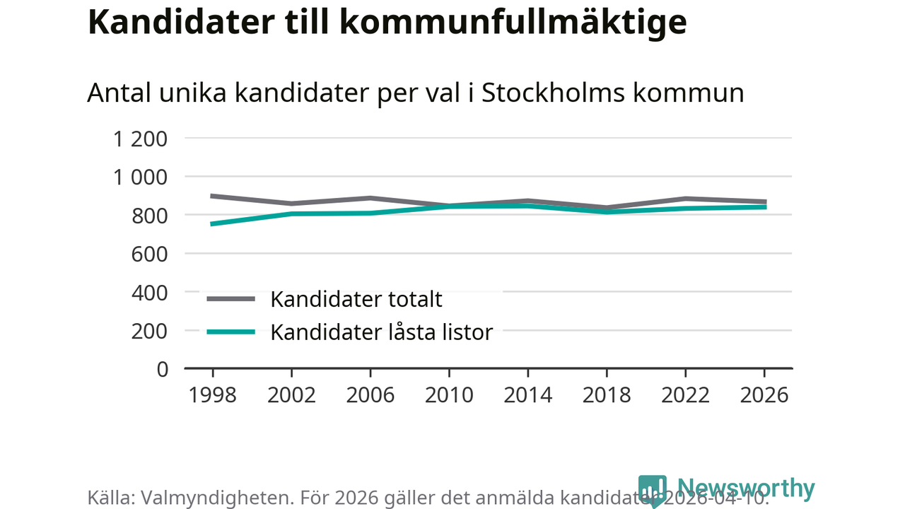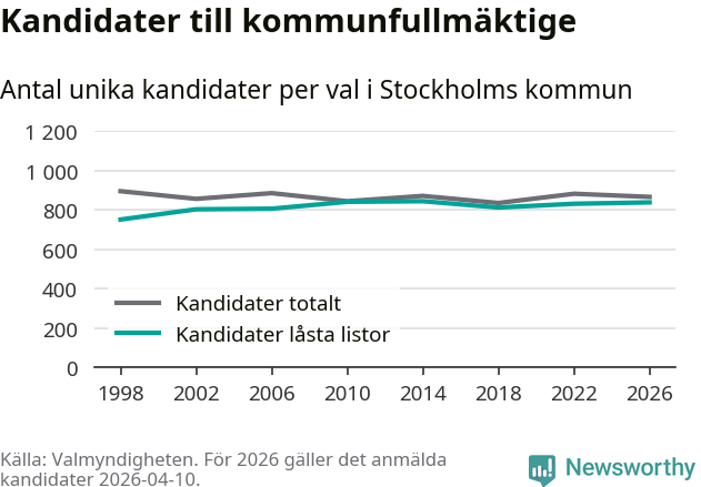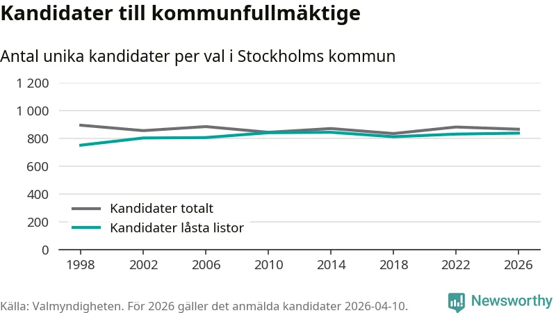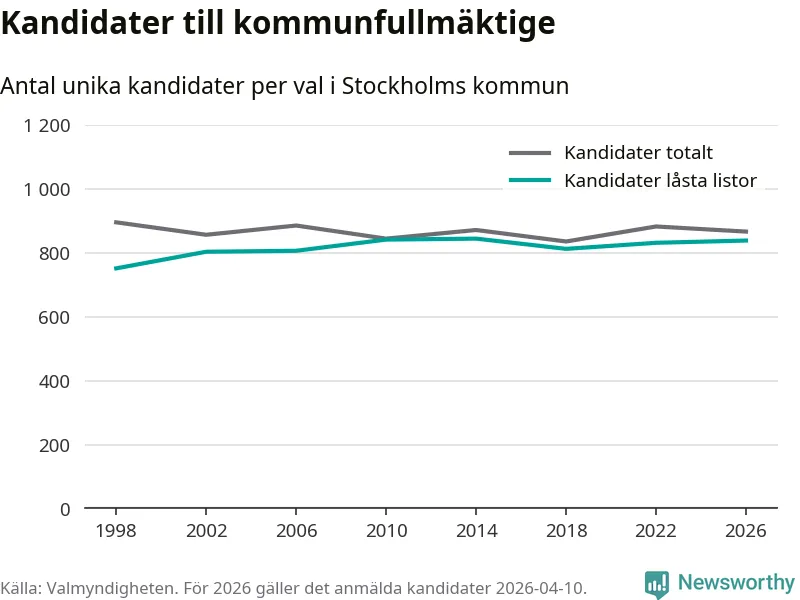 På torsdagen var det deadline för partier med låsta listor att registrera sina kandidater inför höstens val. Till valet till kommunfullmäktige i Stockholms kommun är 838 kandidater anmälda på sådana listor, vilket är sju fler än i valet 2022.