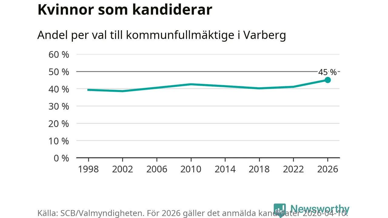 Nu börjar kandidatlistorna till höstens kommunfullmäktigeval i Varberg falla på plats. 139 kvinnor och 170 män från 13 partier är anmälda hittills. Det är den högsta andelen kvinnor under det här århundradet.
