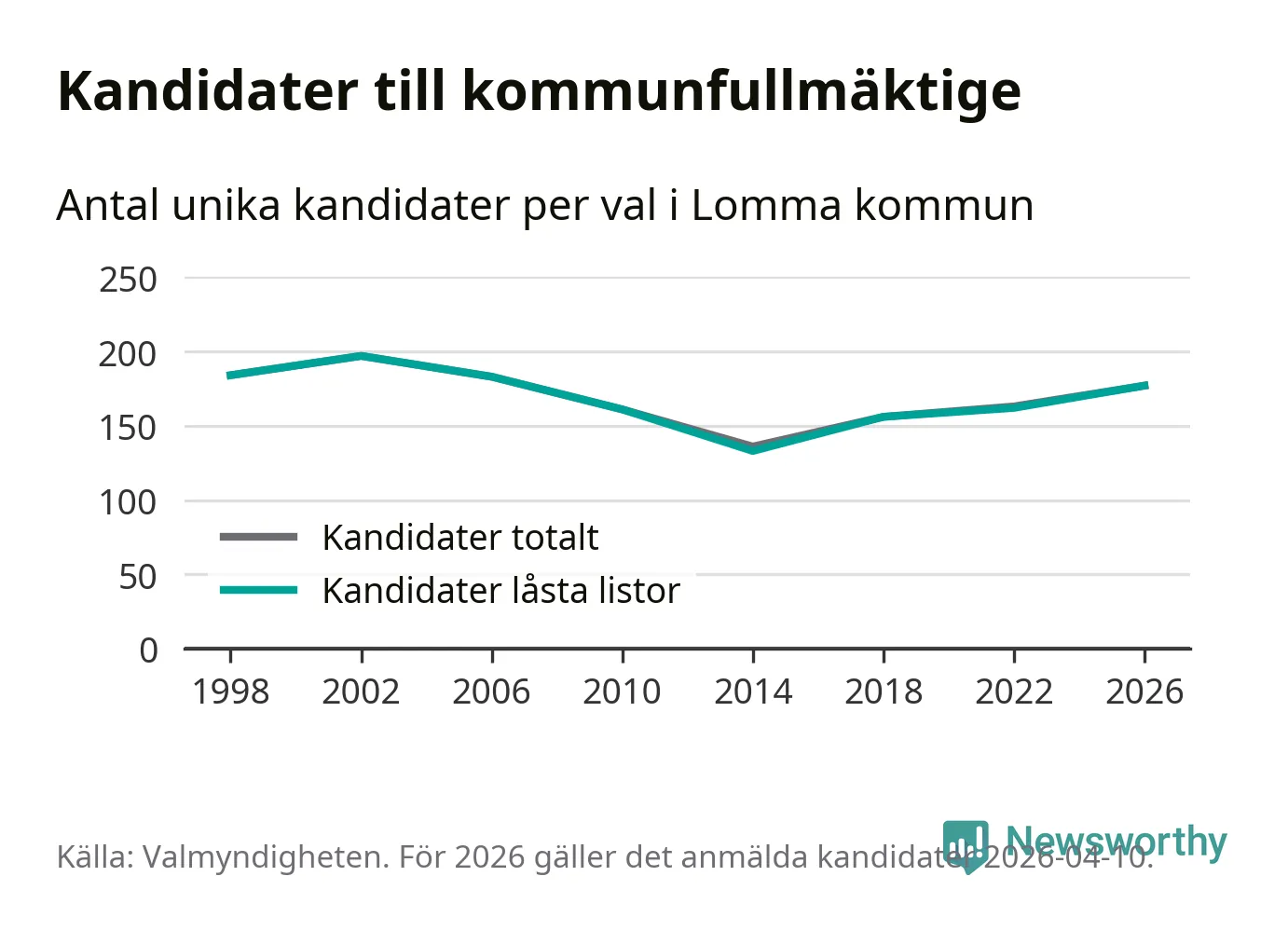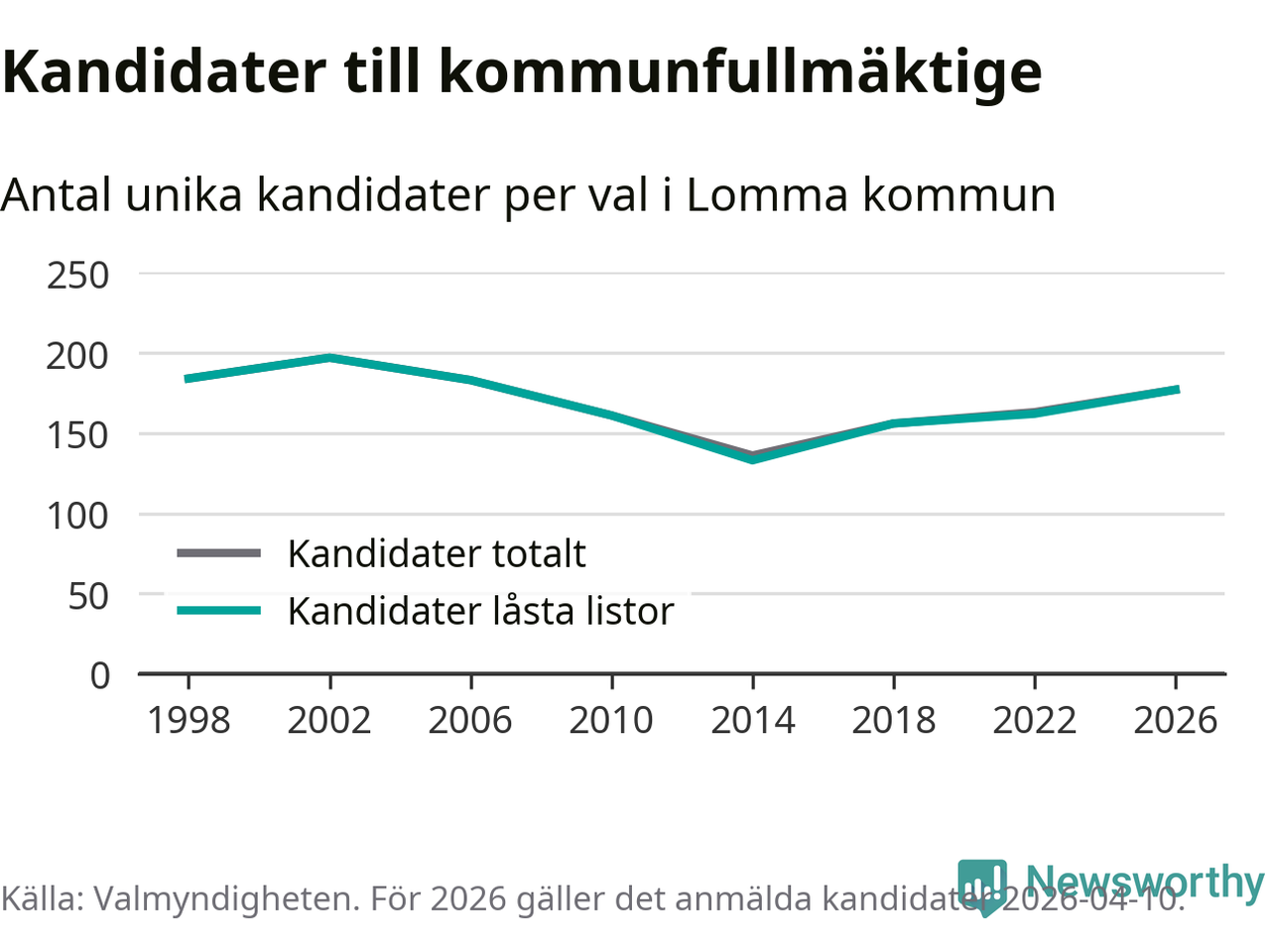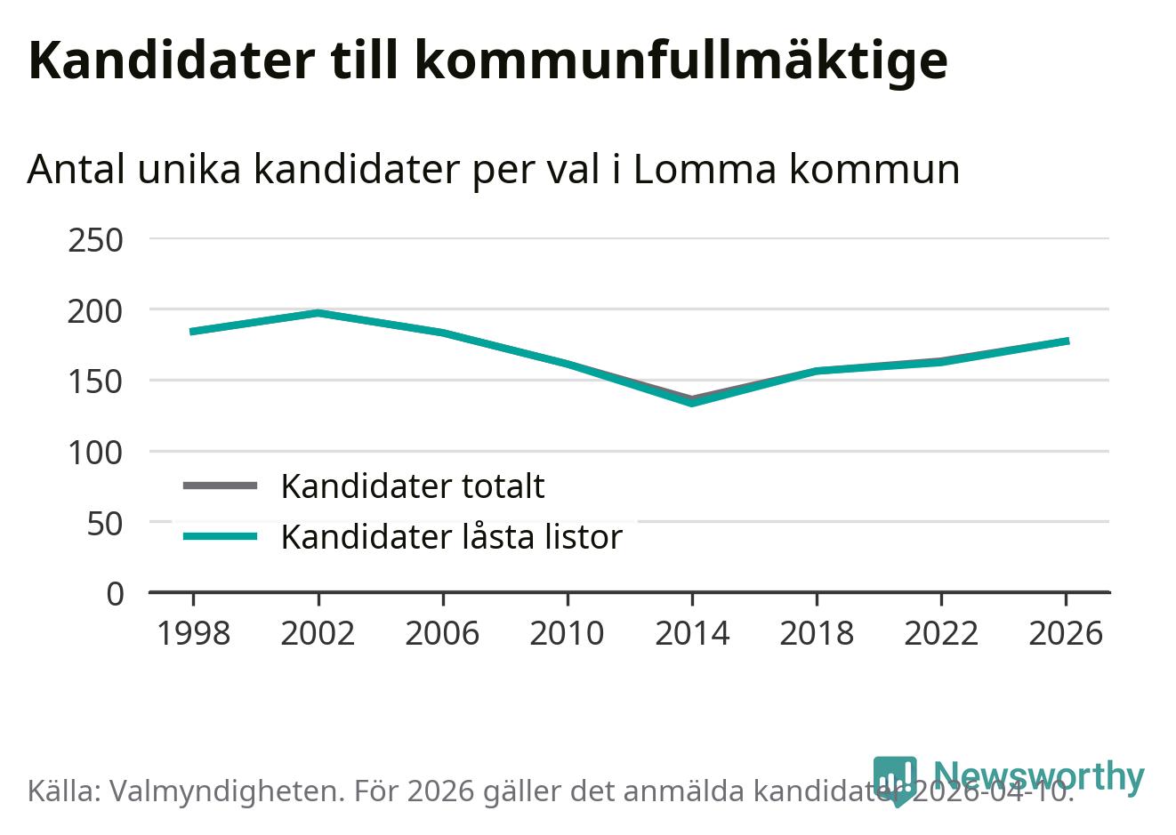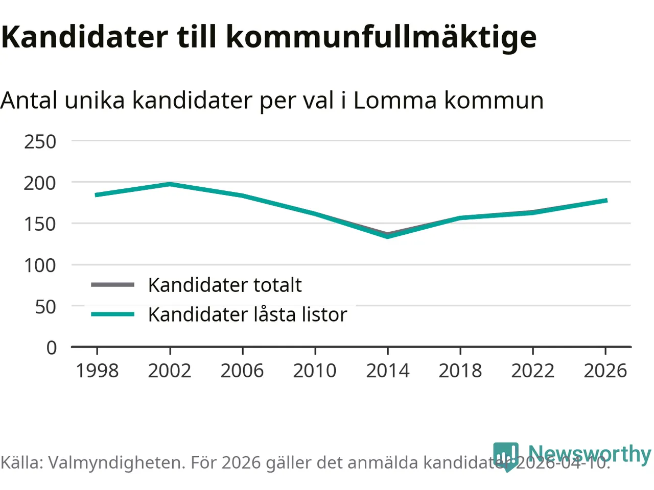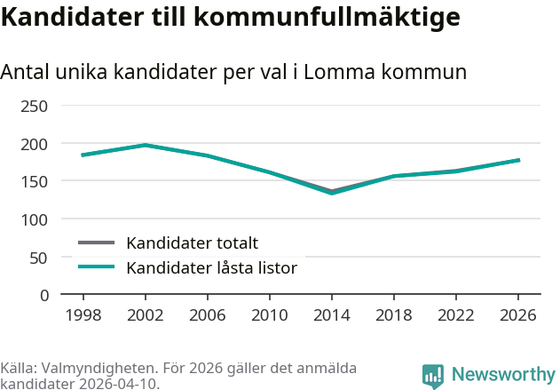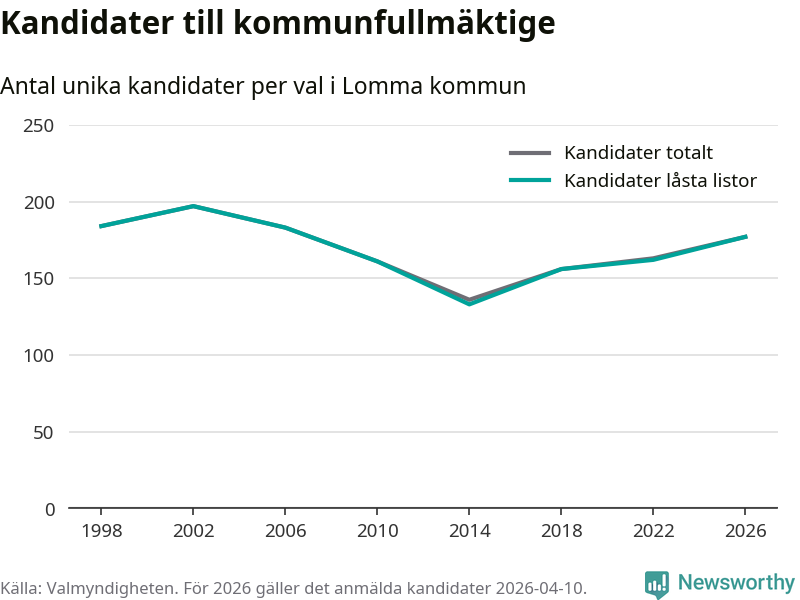 På torsdagen var det deadline för partier med låsta listor att registrera sina kandidater inför höstens val. Till valet till kommunfullmäktige i Lomma är 177 kandidater anmälda på sådana listor, vilket är 15 fler än i valet 2022.