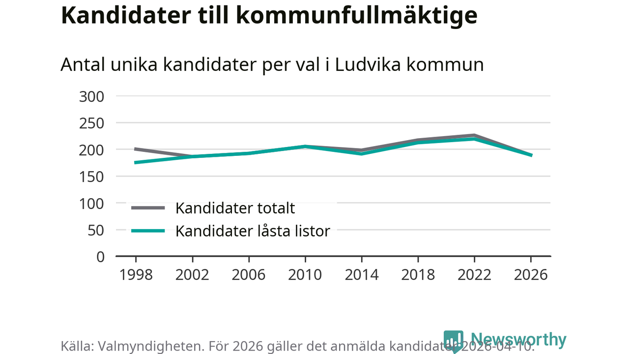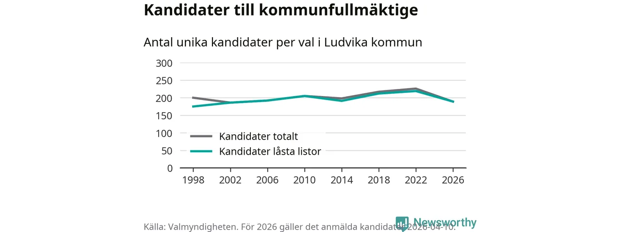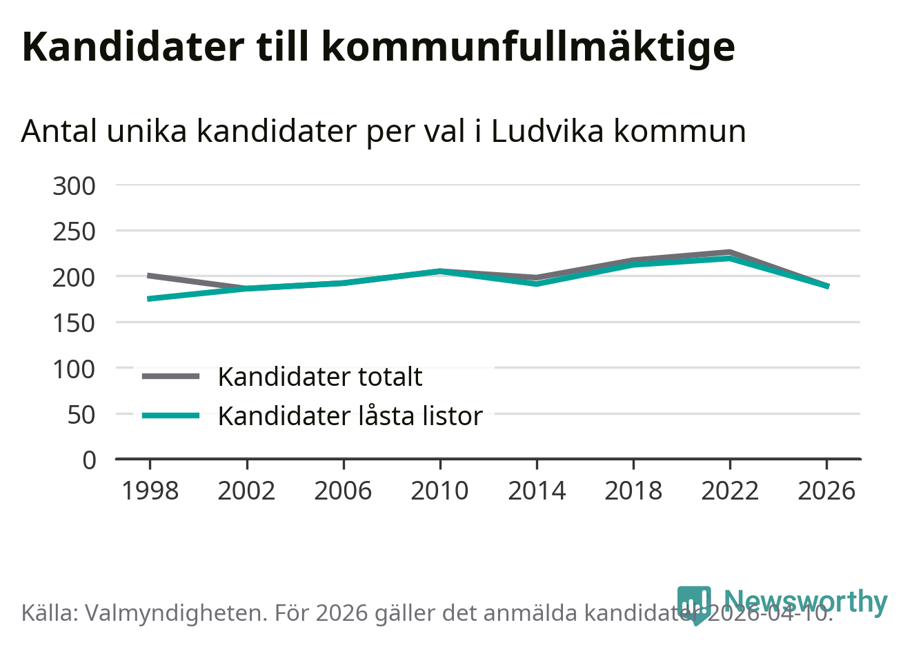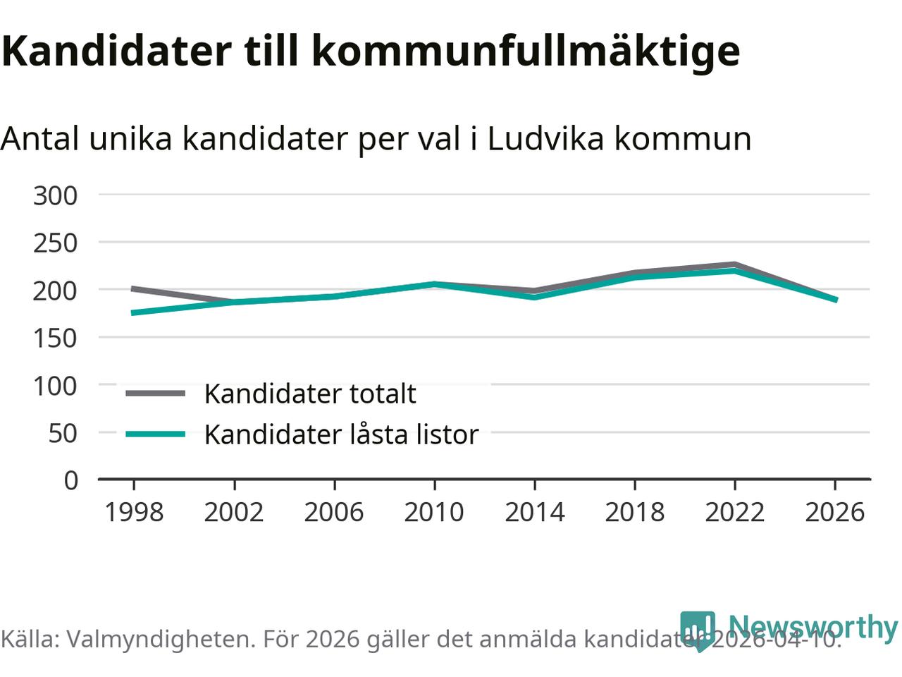 På torsdagen var det deadline för partier med låsta listor att registrera sina kandidater inför höstens val. Till valet till kommunfullmäktige i Ludvika är 189 kandidater anmälda på sådana listor, vilket är 30 färre än i valet 2022.